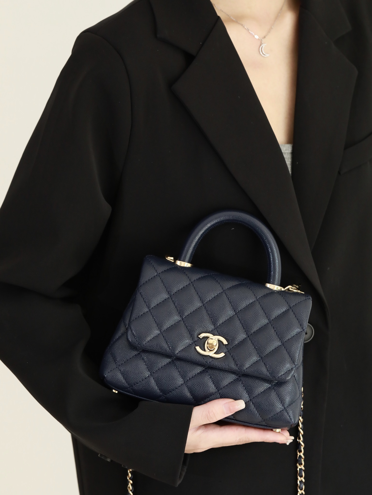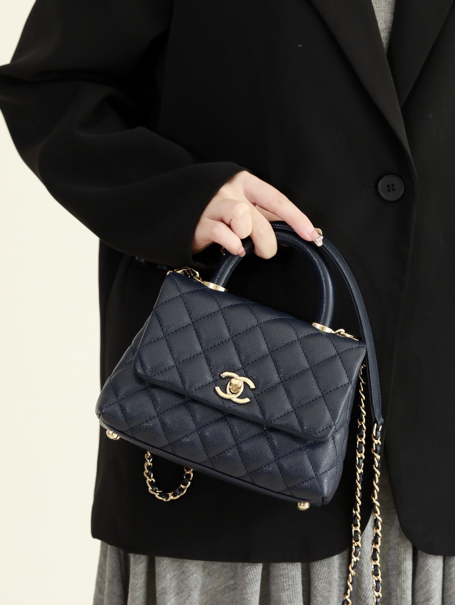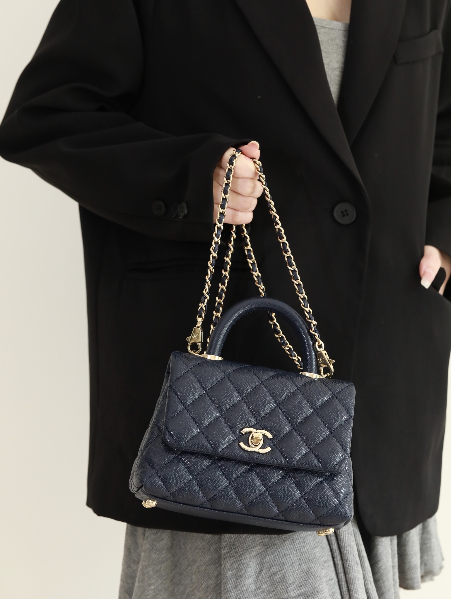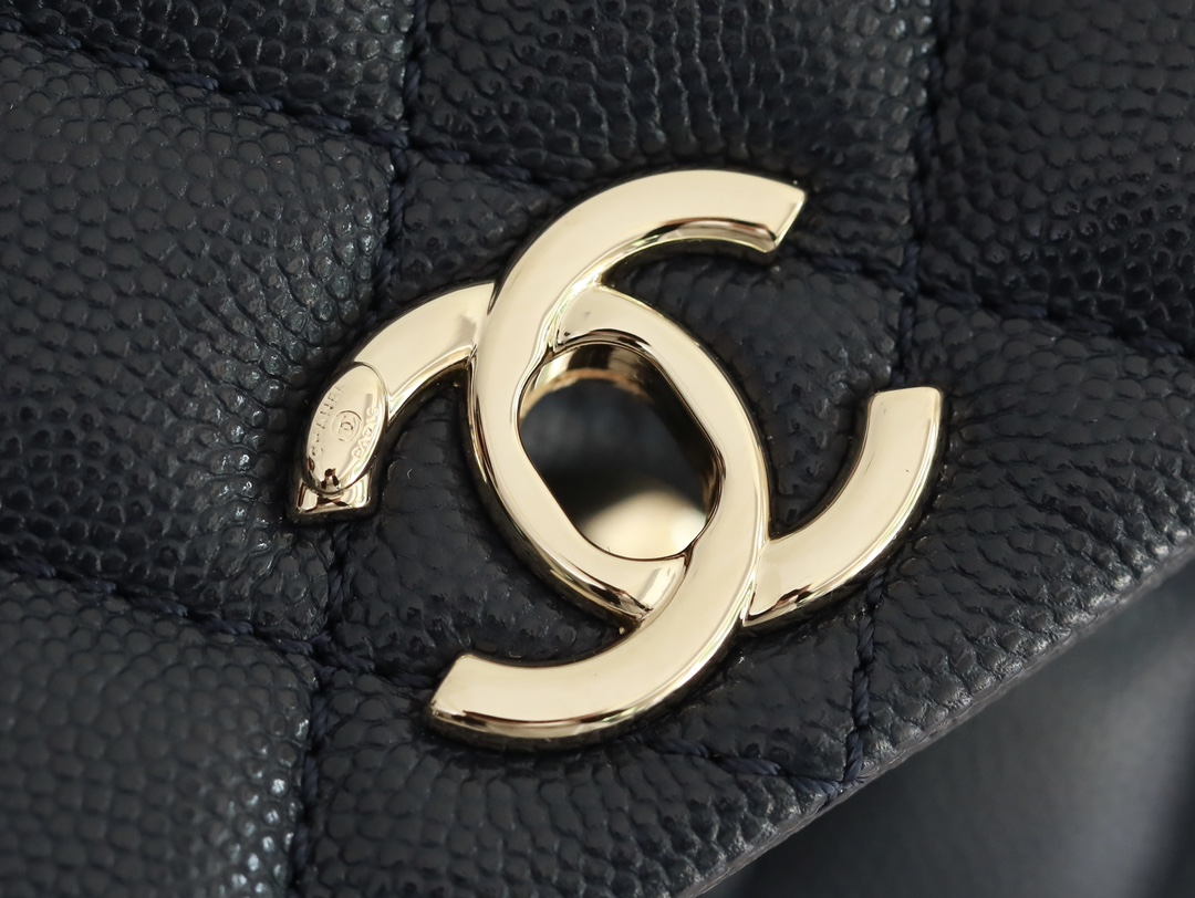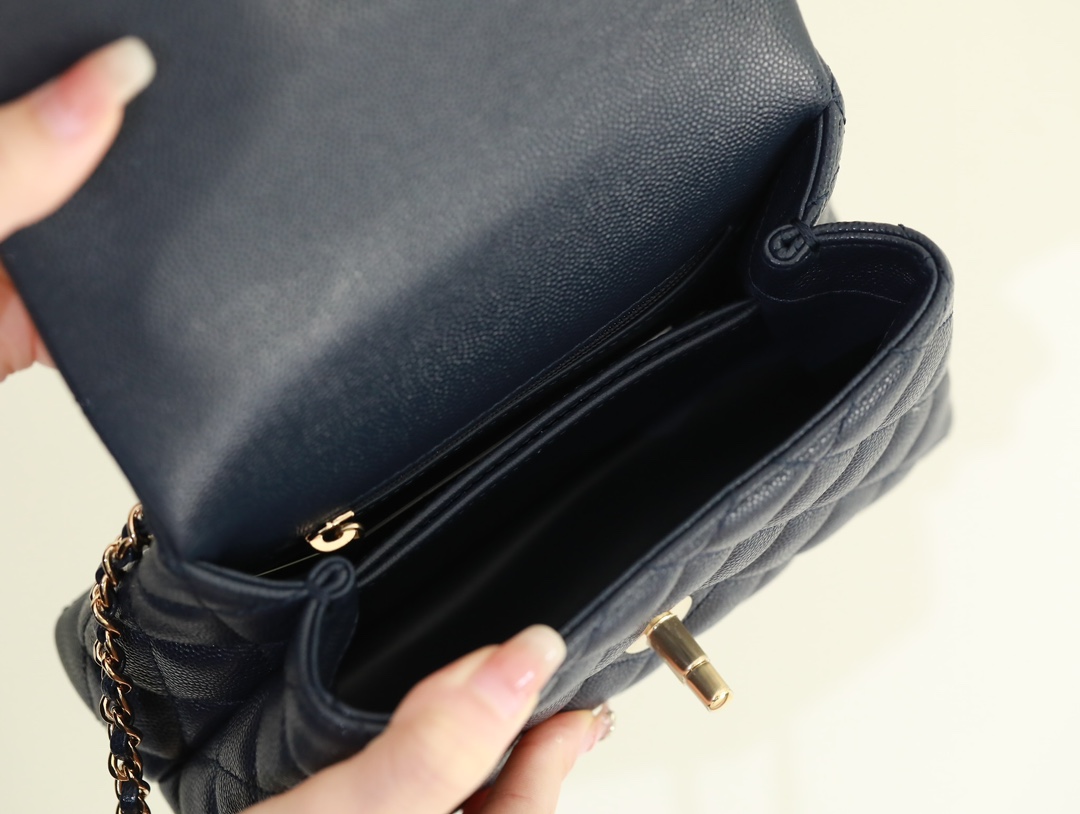 • CHANEL Coco Handle Flap Quilted Caviar Gold-tone Mini blue