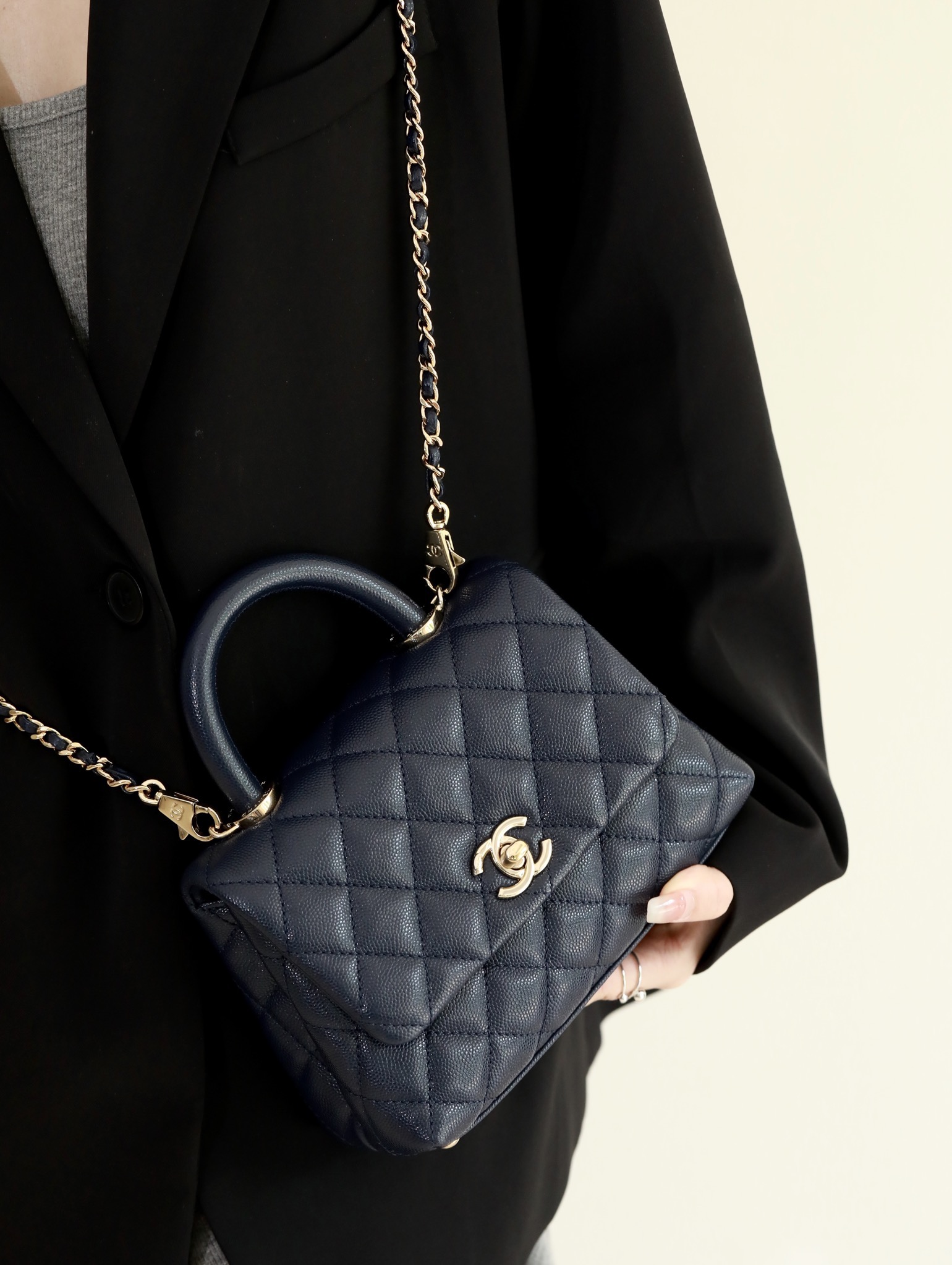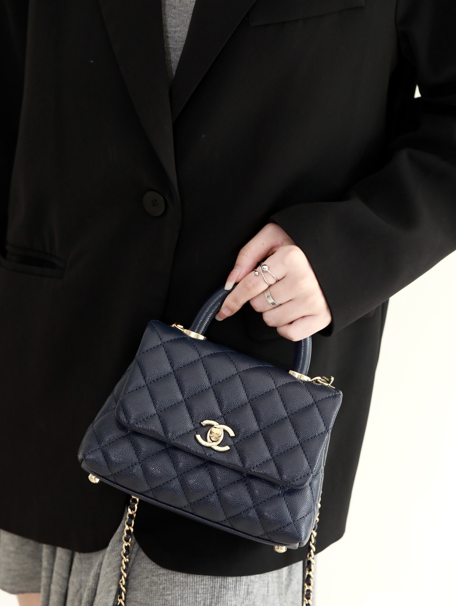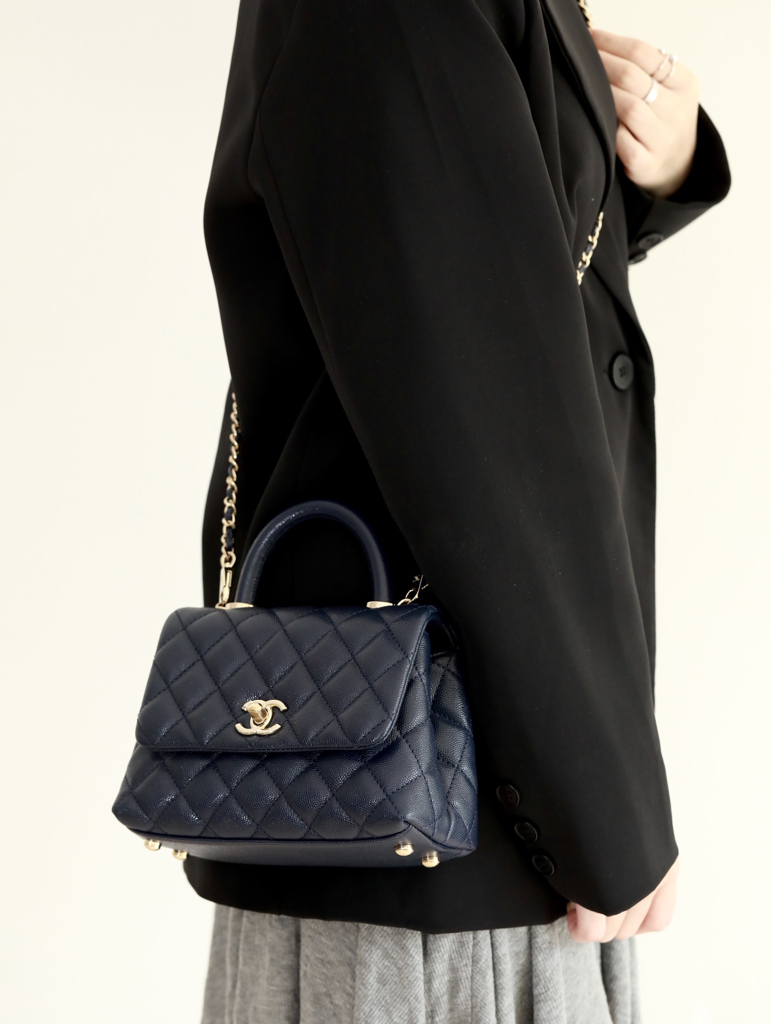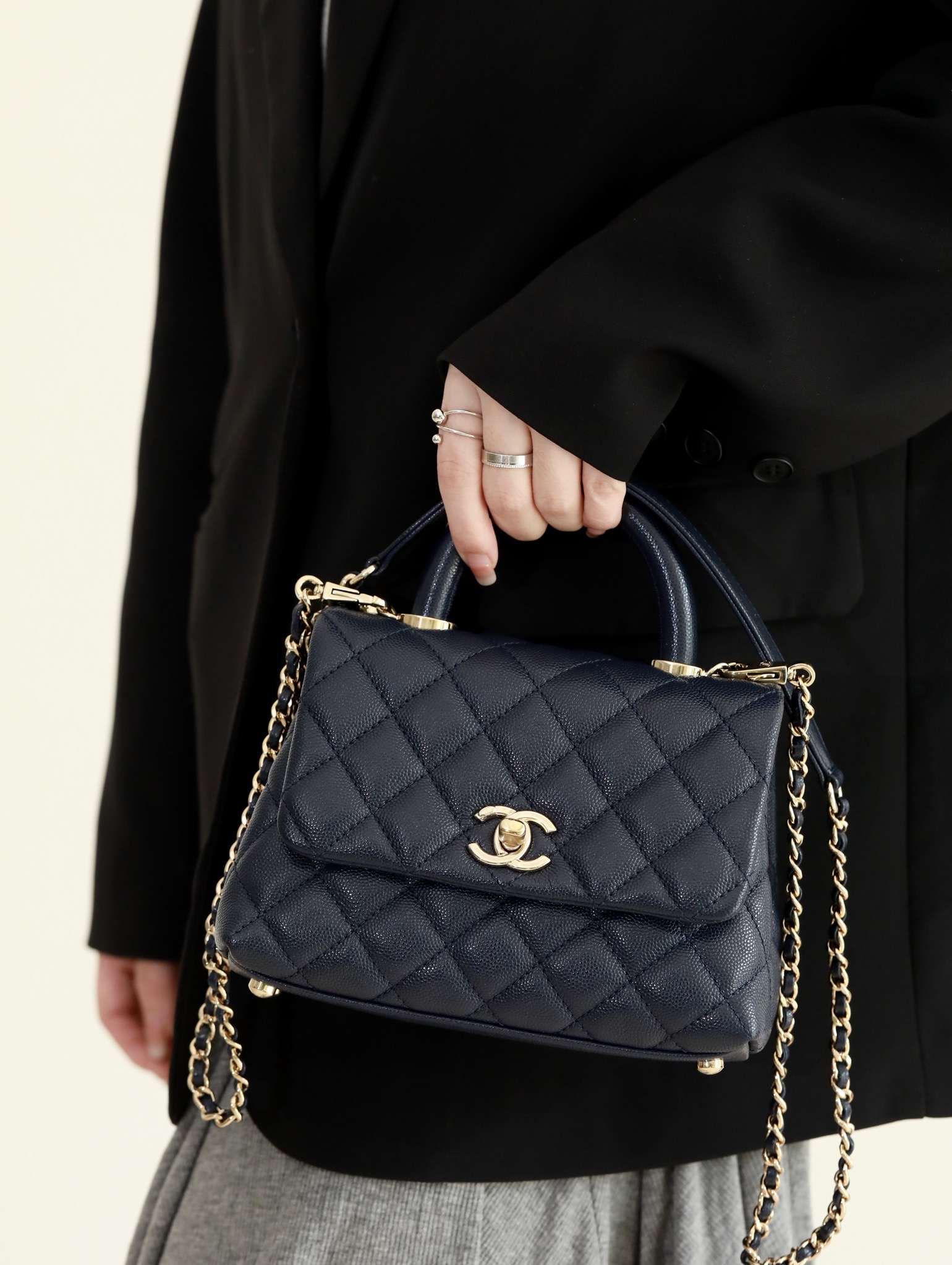 • CHANEL Coco Handle Flap Quilted Caviar Gold-tone Mini blue