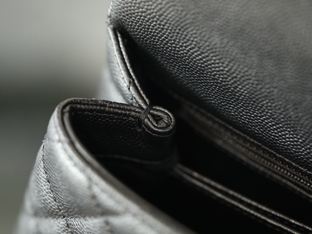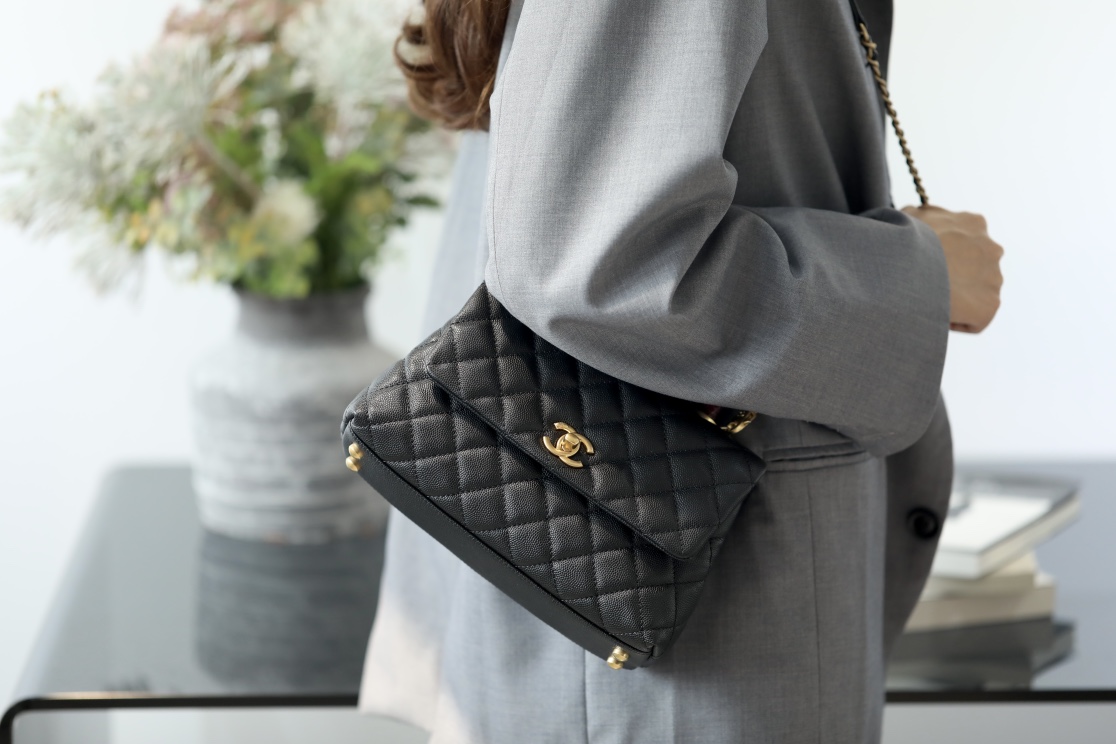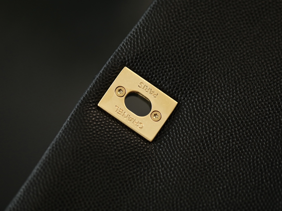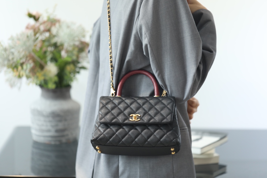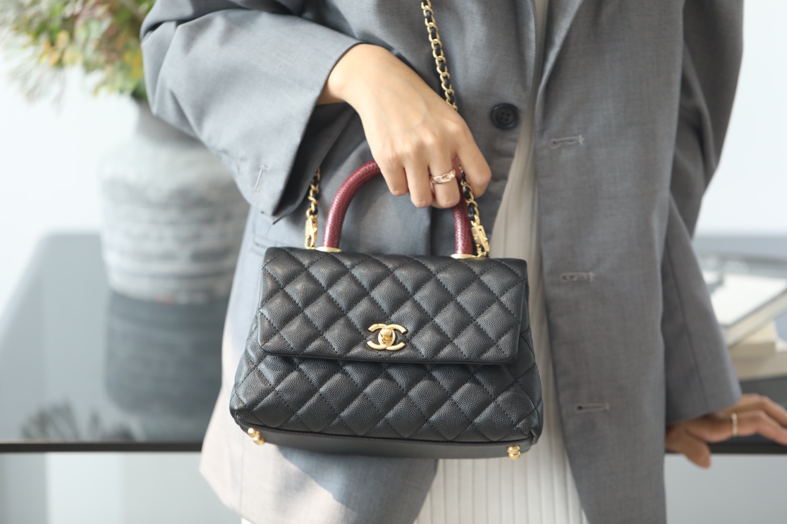 • CHANEL Coco lizard Handle Flap Quilted Caviar Gold-tone small Black