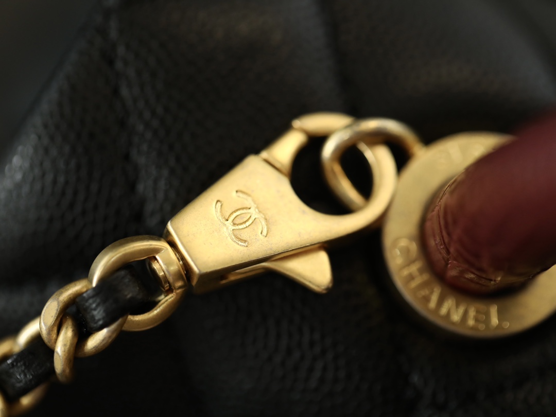 CHANEL Coco lizard Handle Flap Quilted Caviar Gold-tone small Black