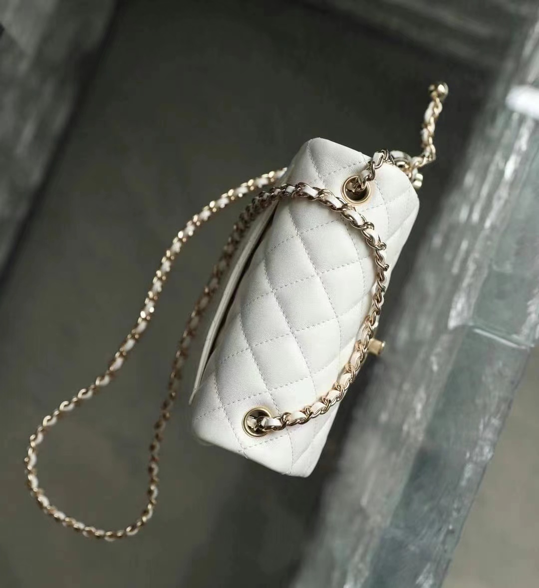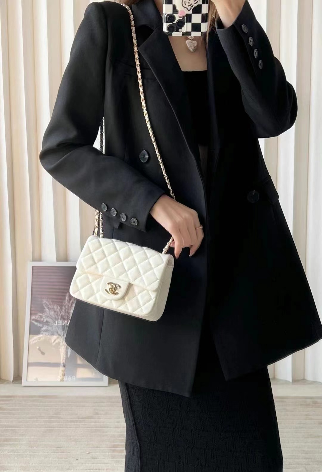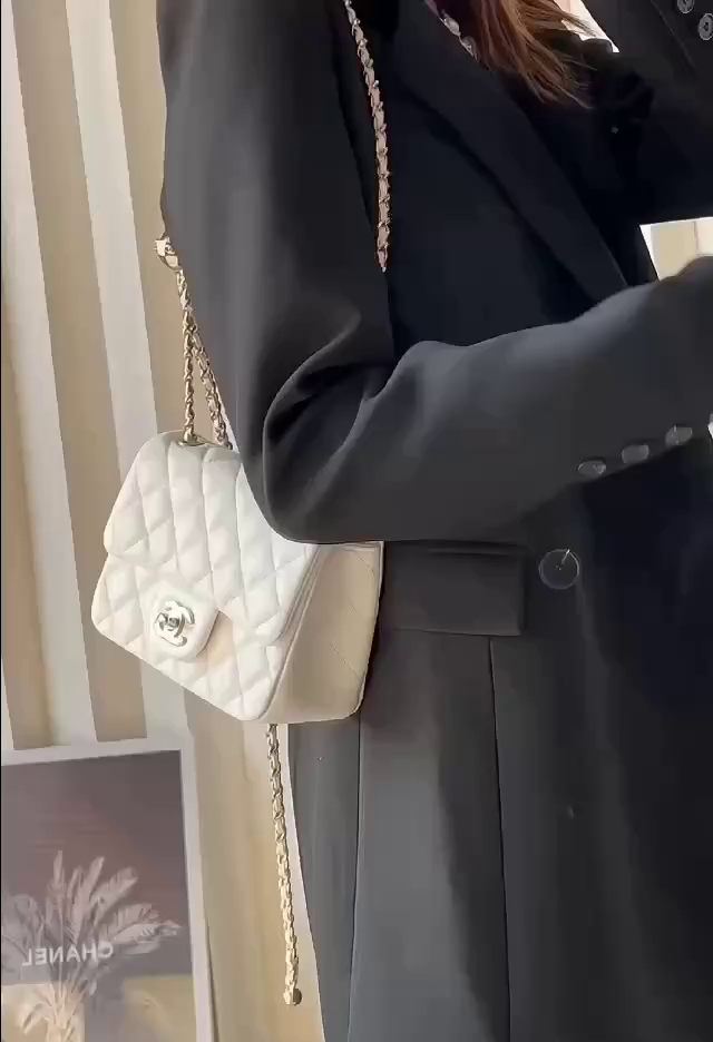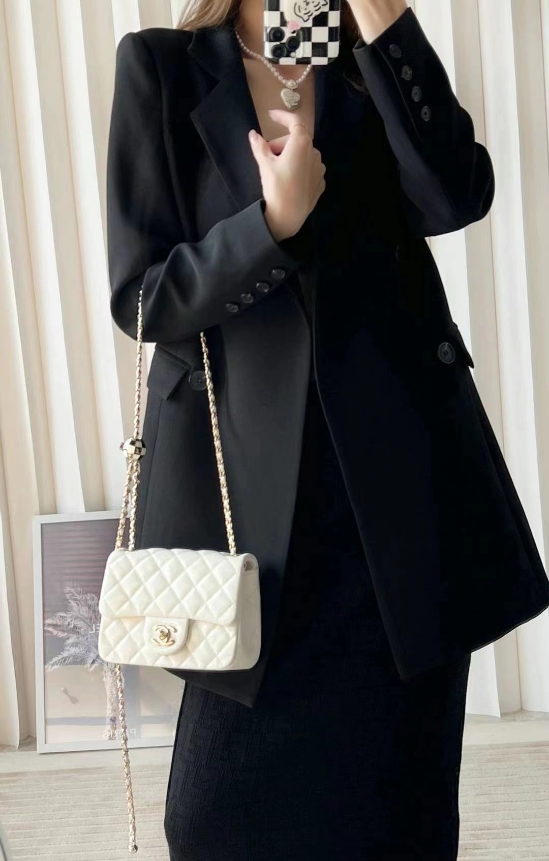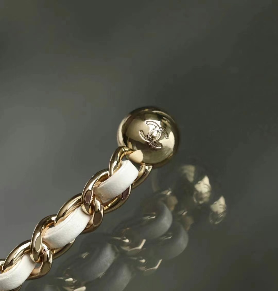 Chanel Fatty Fang Enamel black grid ball Shoulder Bags White gold buckle