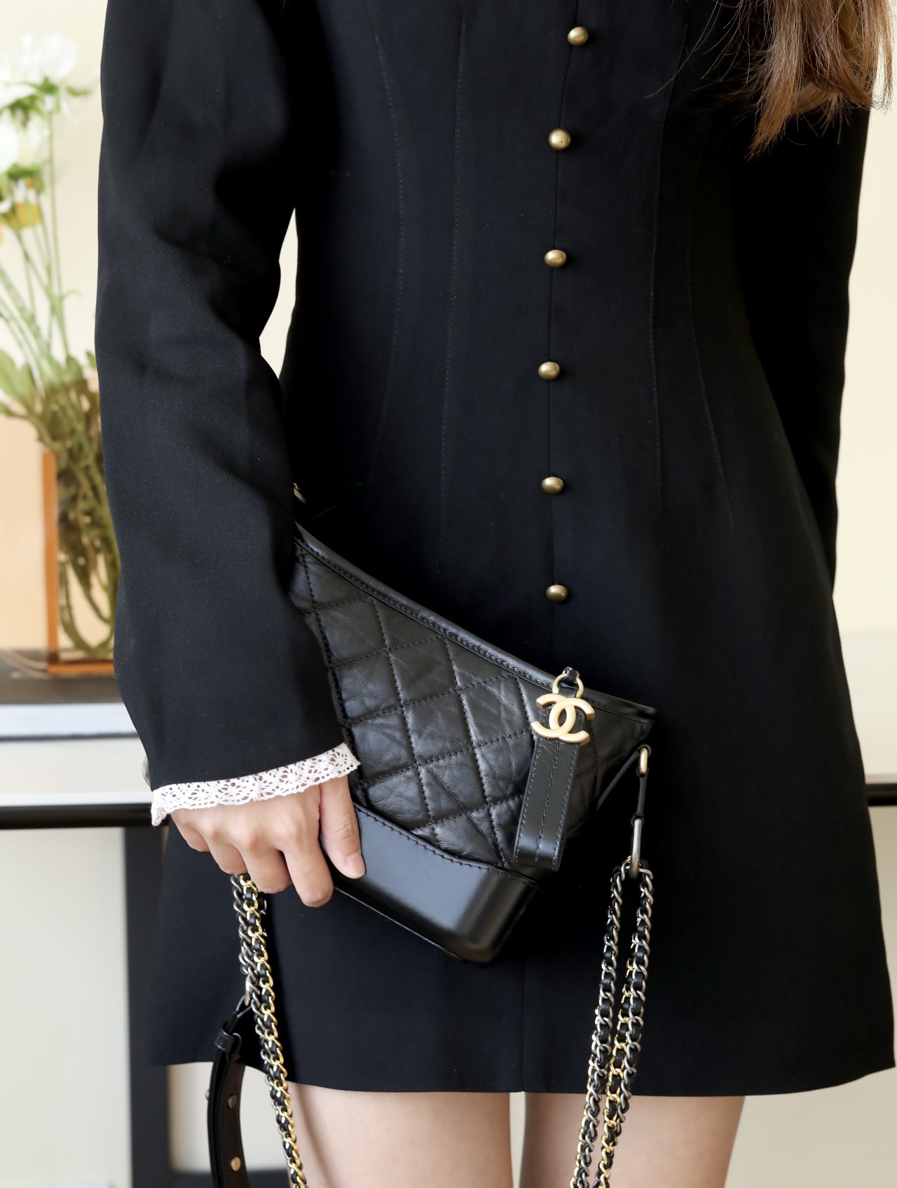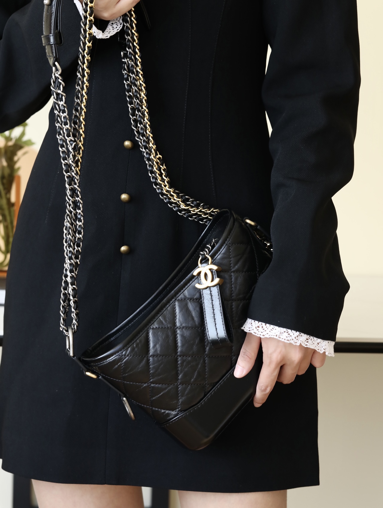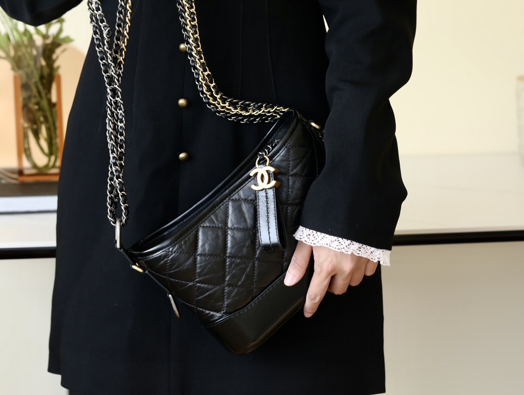 CHANEL Gabrielle Hobo Quilted Aged Calfskin Small black