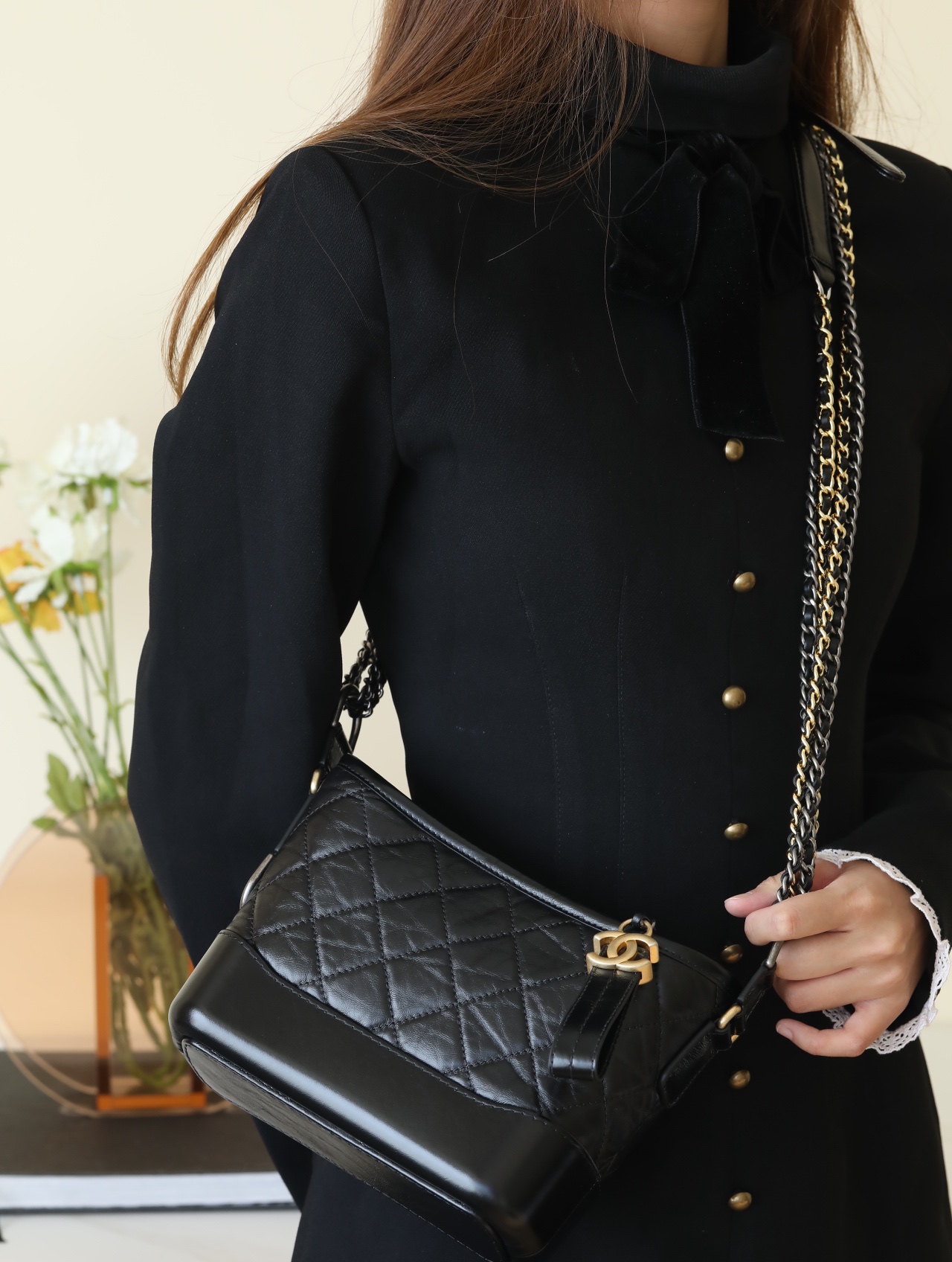 • CHANEL Gabrielle Hobo Quilted Aged Calfskin Small black