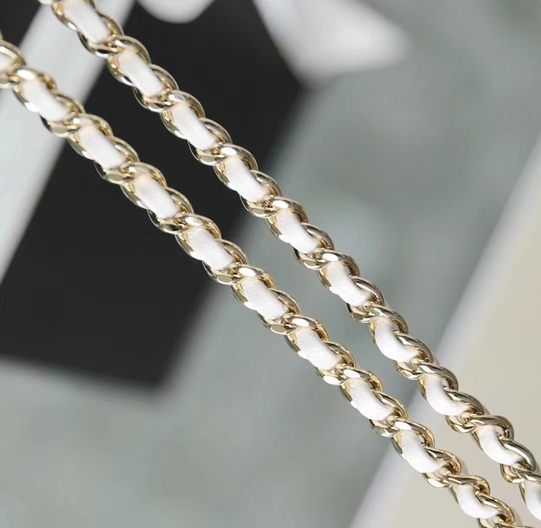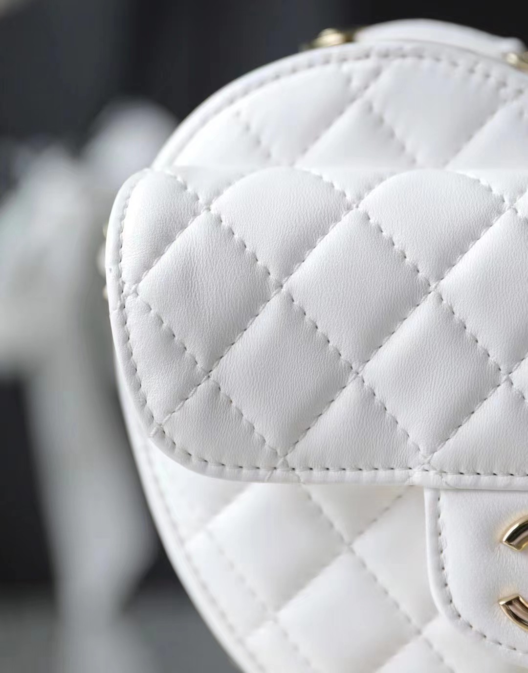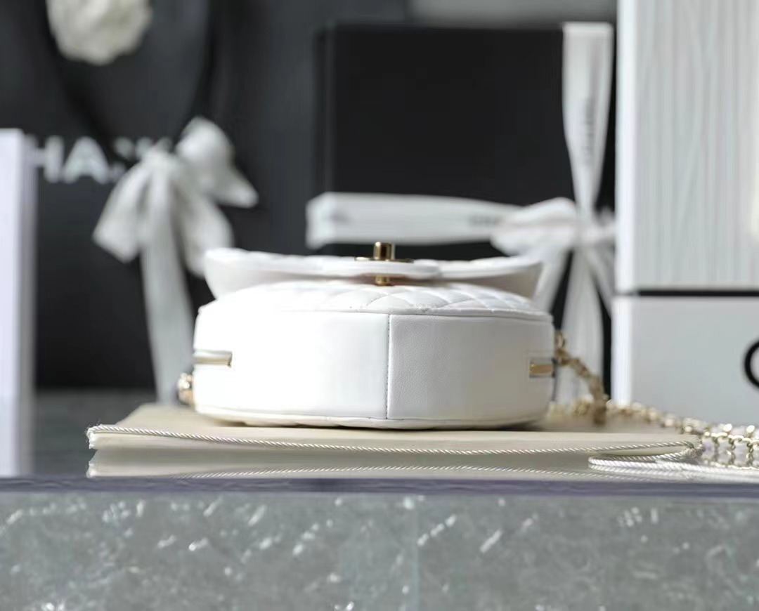 CHANEL Heart Minaudiere/love bag Gold-Tone Metal & Metallic Lambskin White large