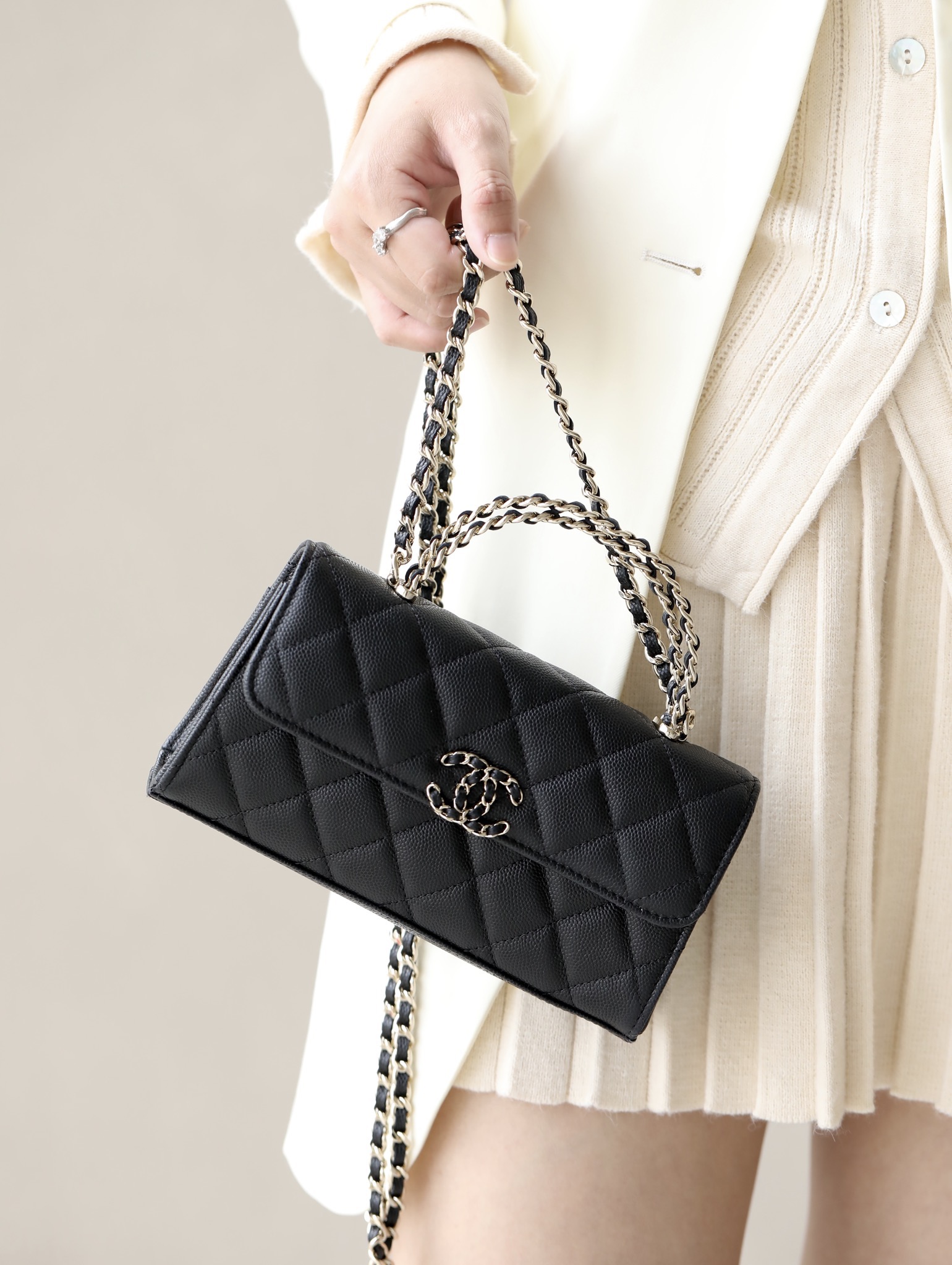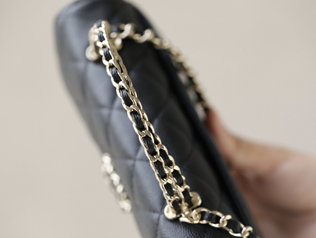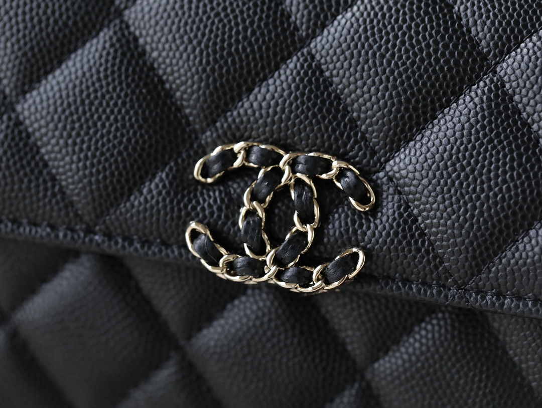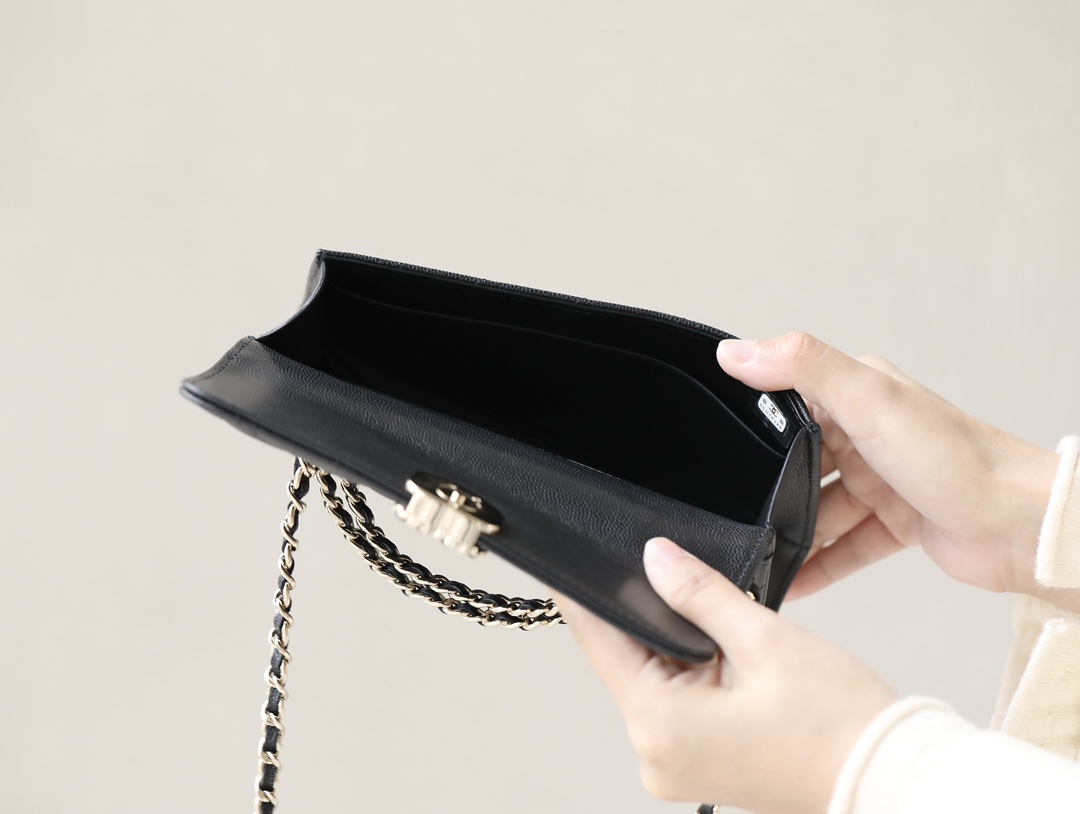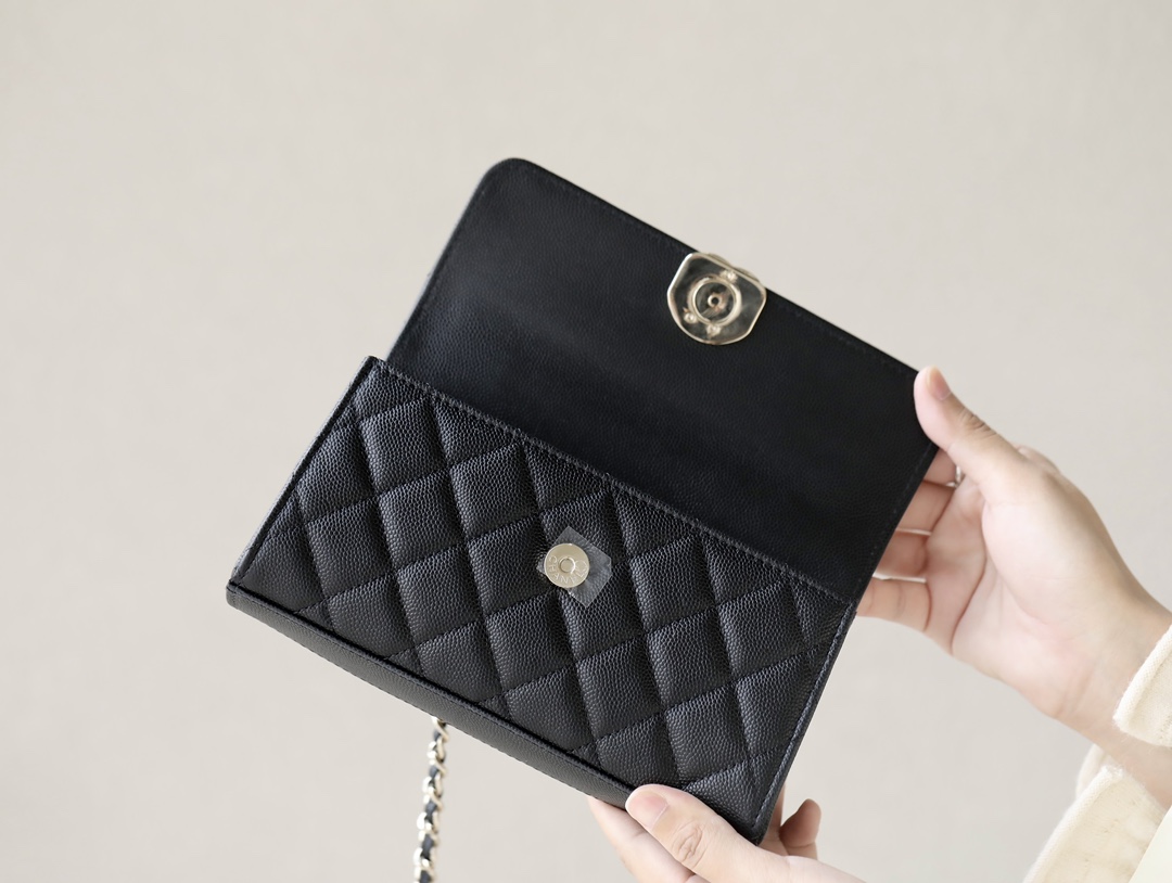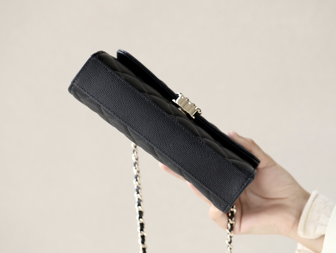 CHANEL kelly Clutch with Chain Grained Shiny Calfskin & Gold-Tone Metal black
