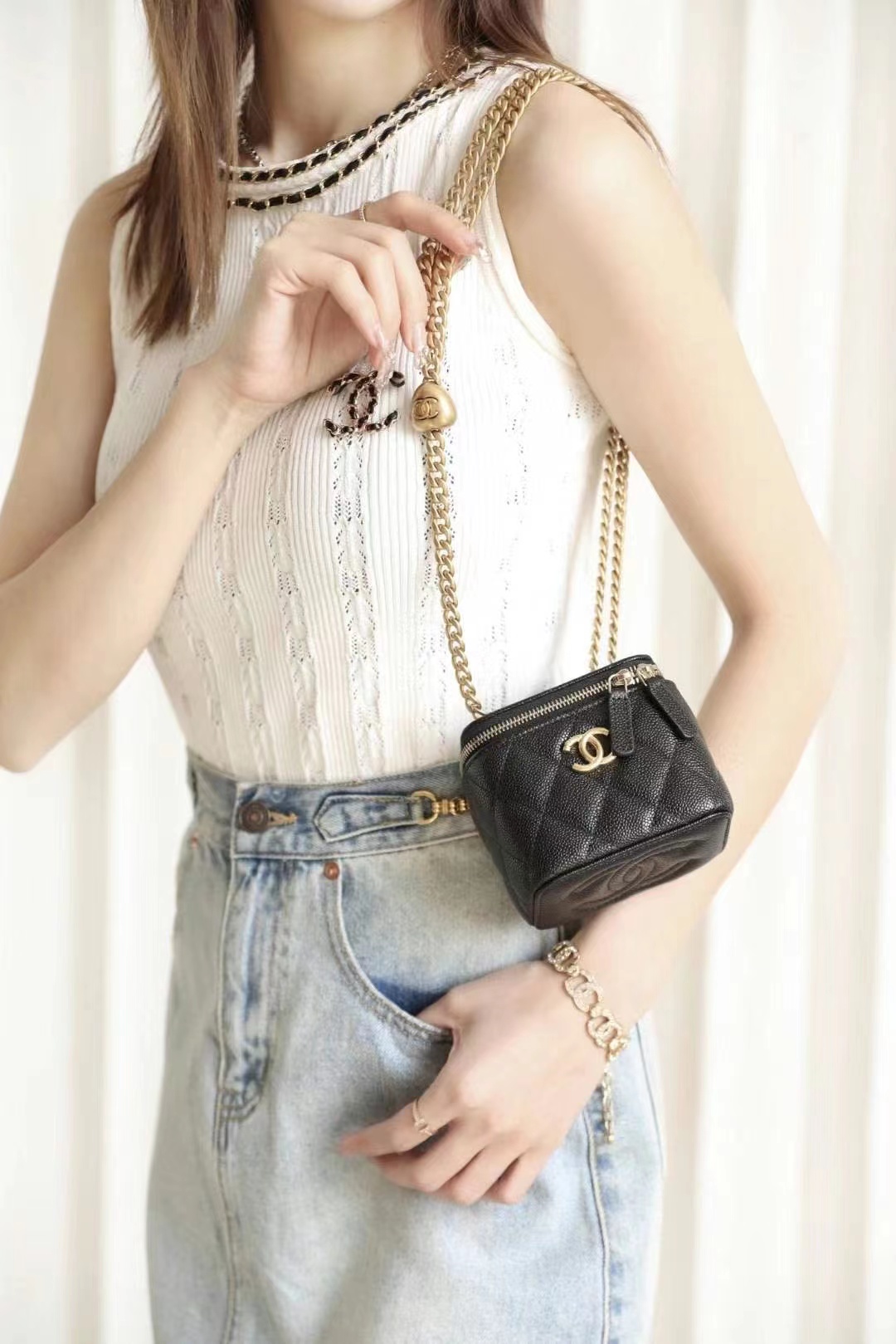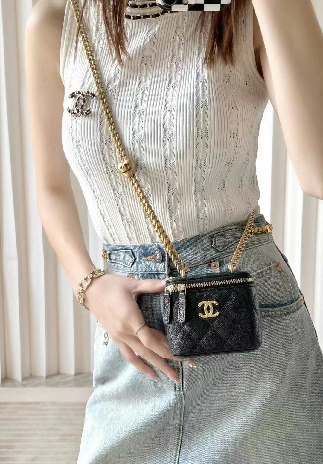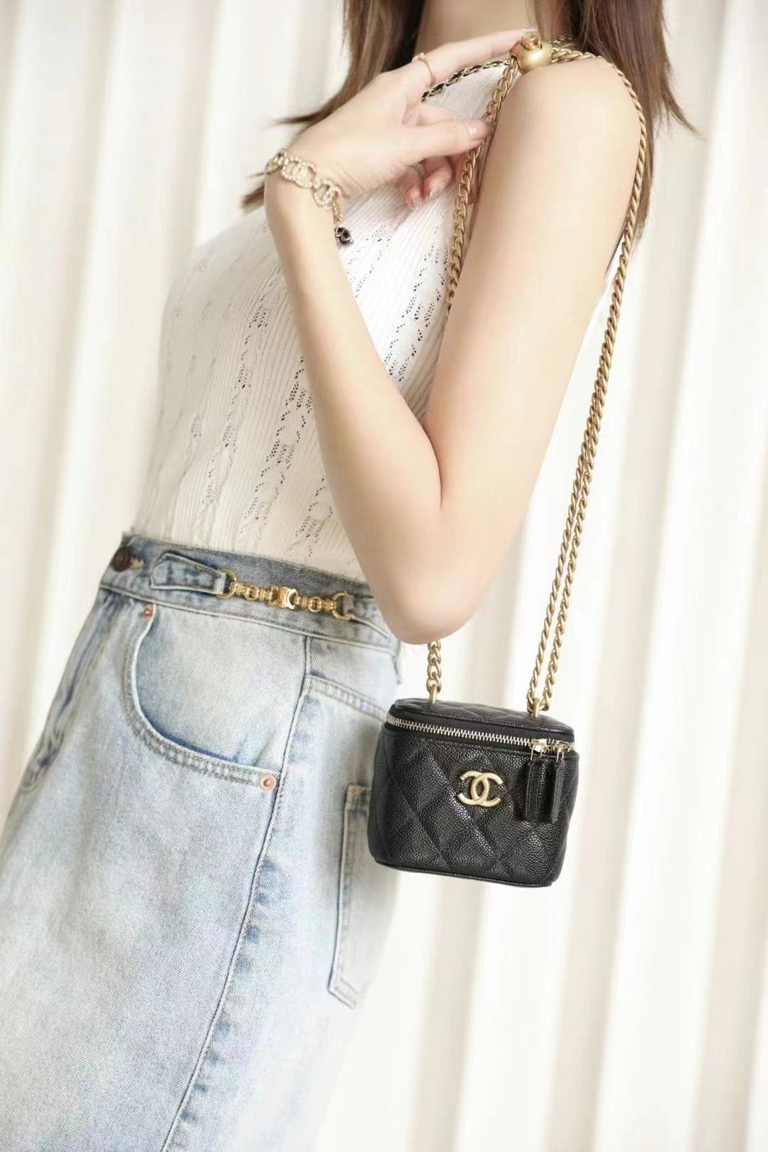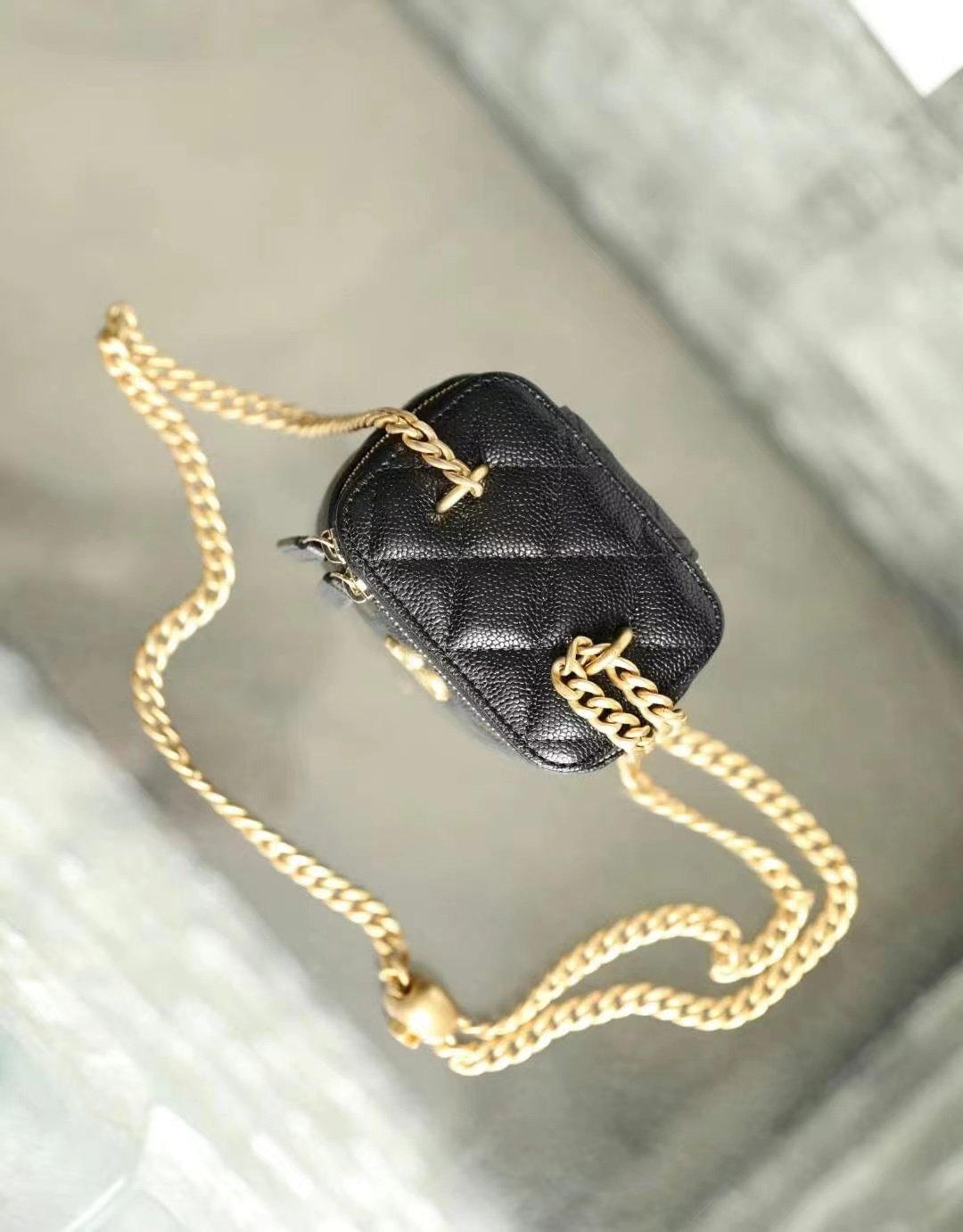 • Chanel Love adjustment buckle lipstick box bag black