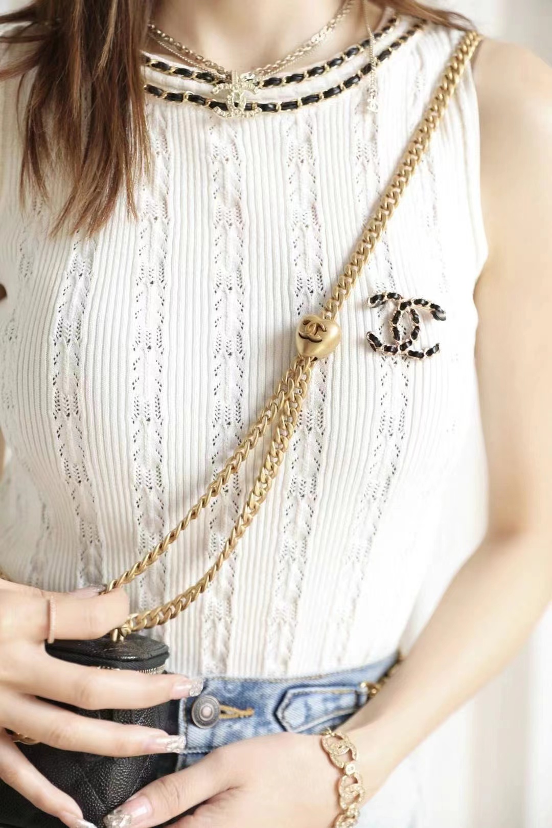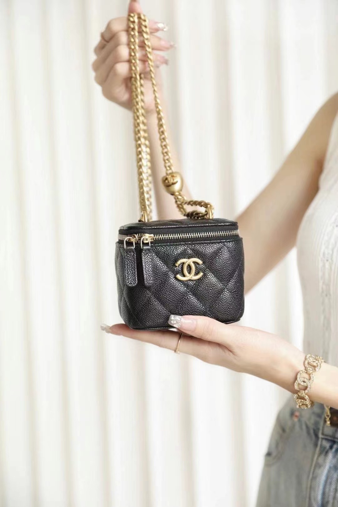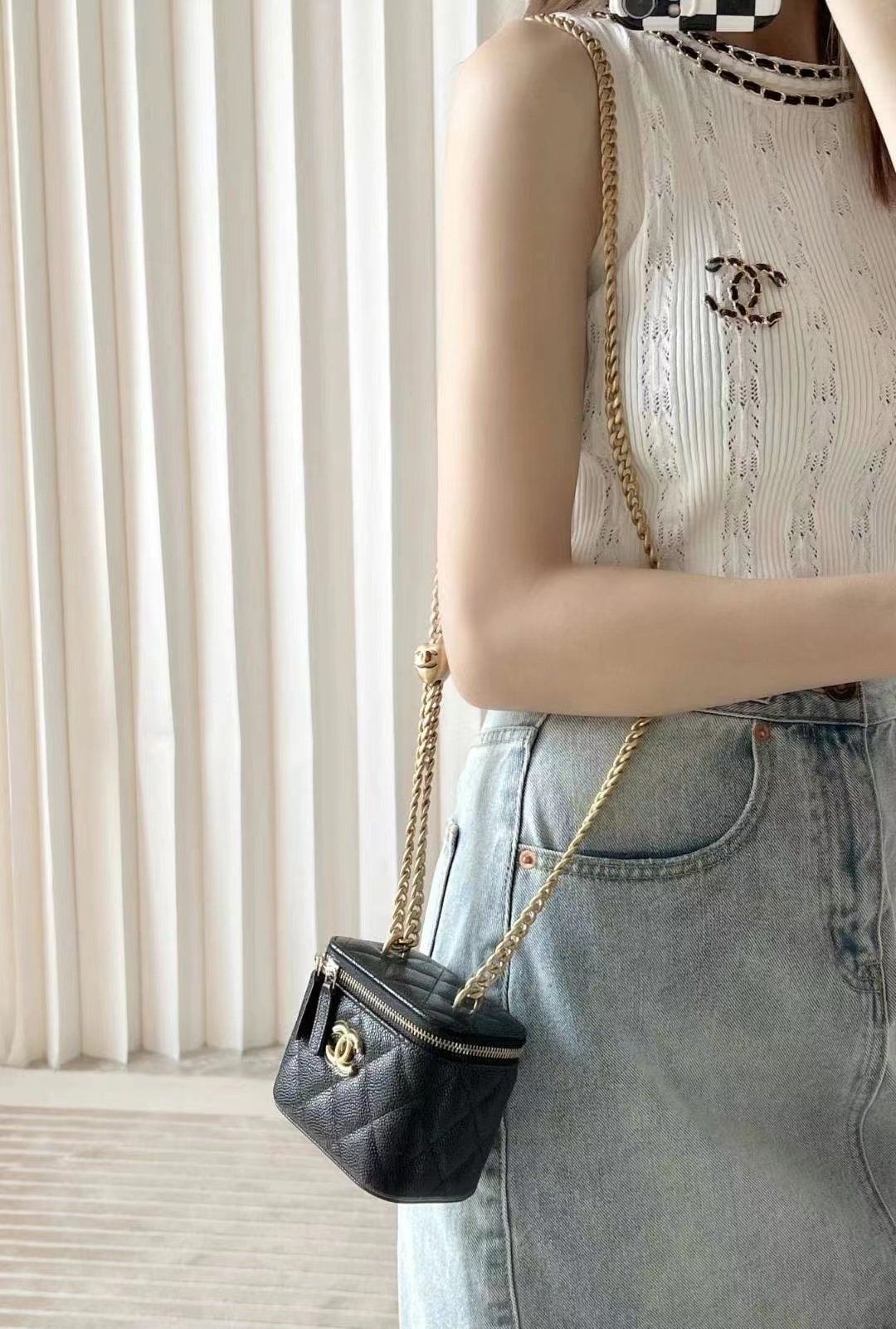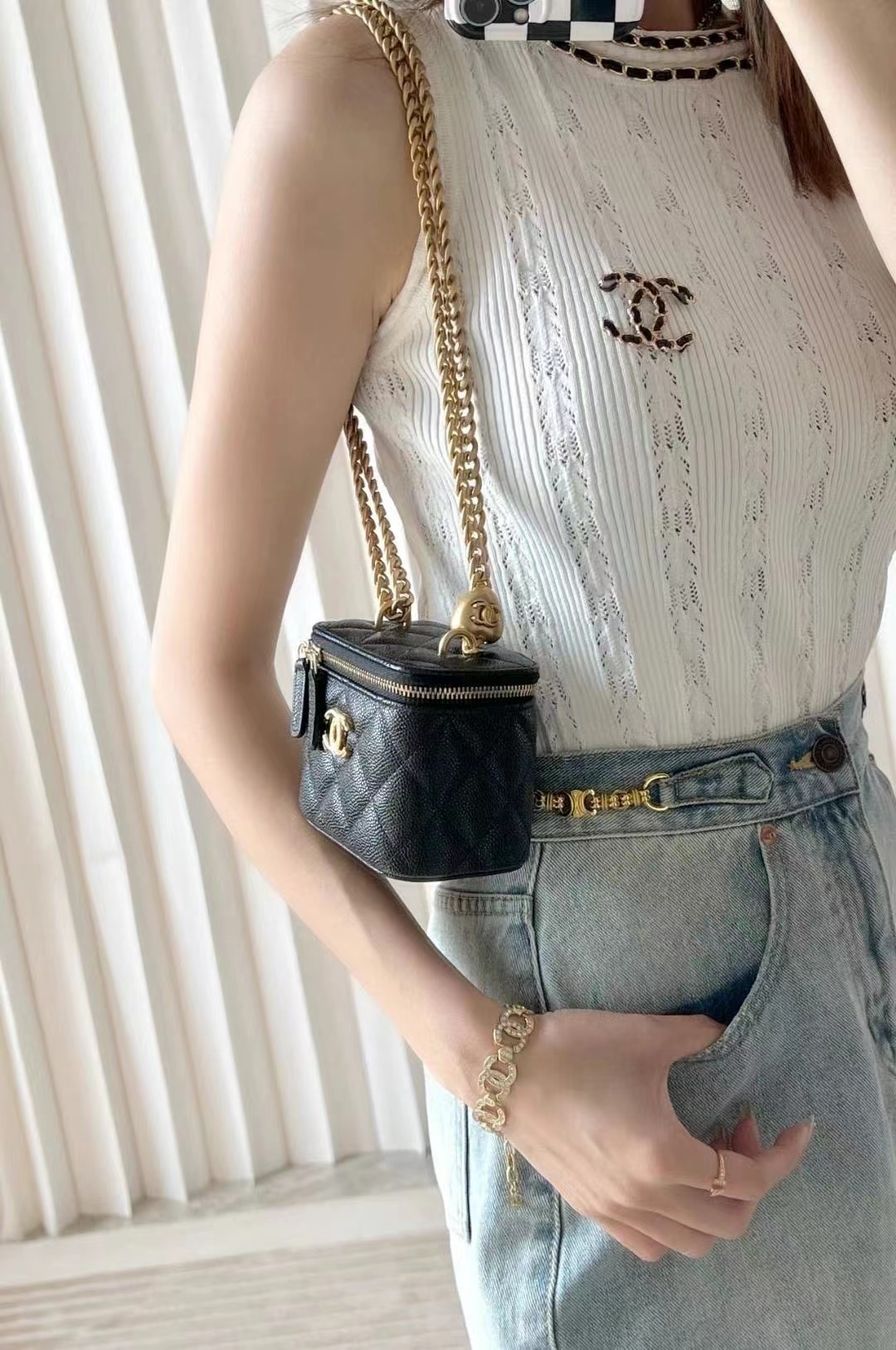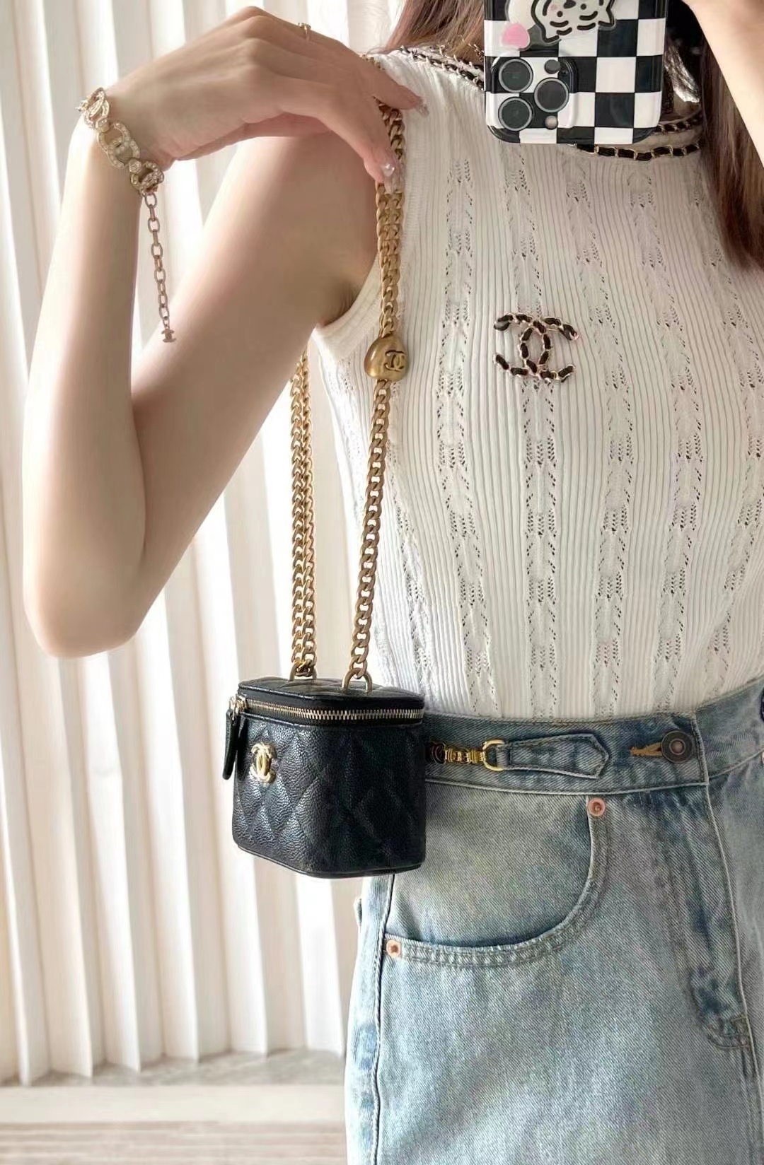 • Chanel Love adjustment buckle lipstick box bag black