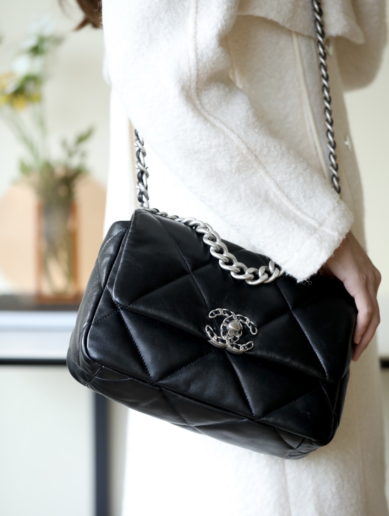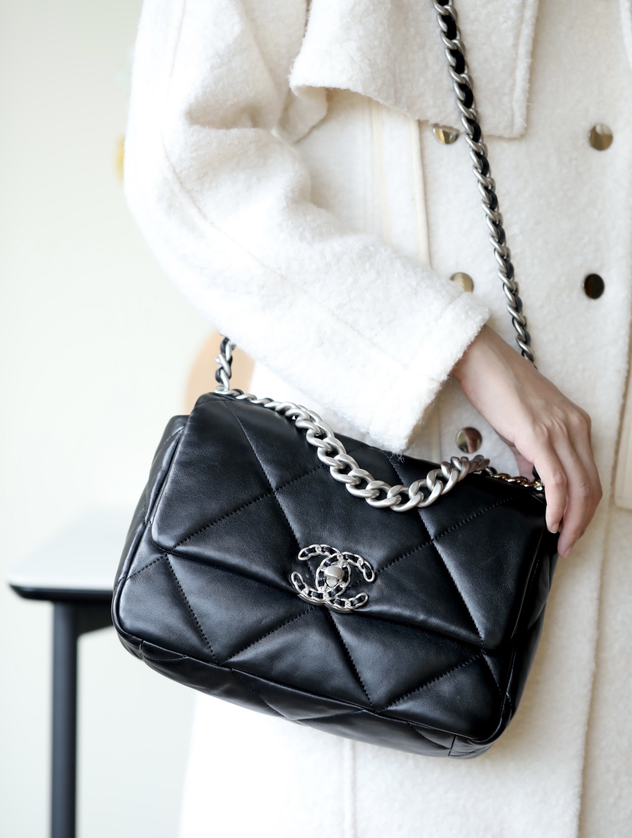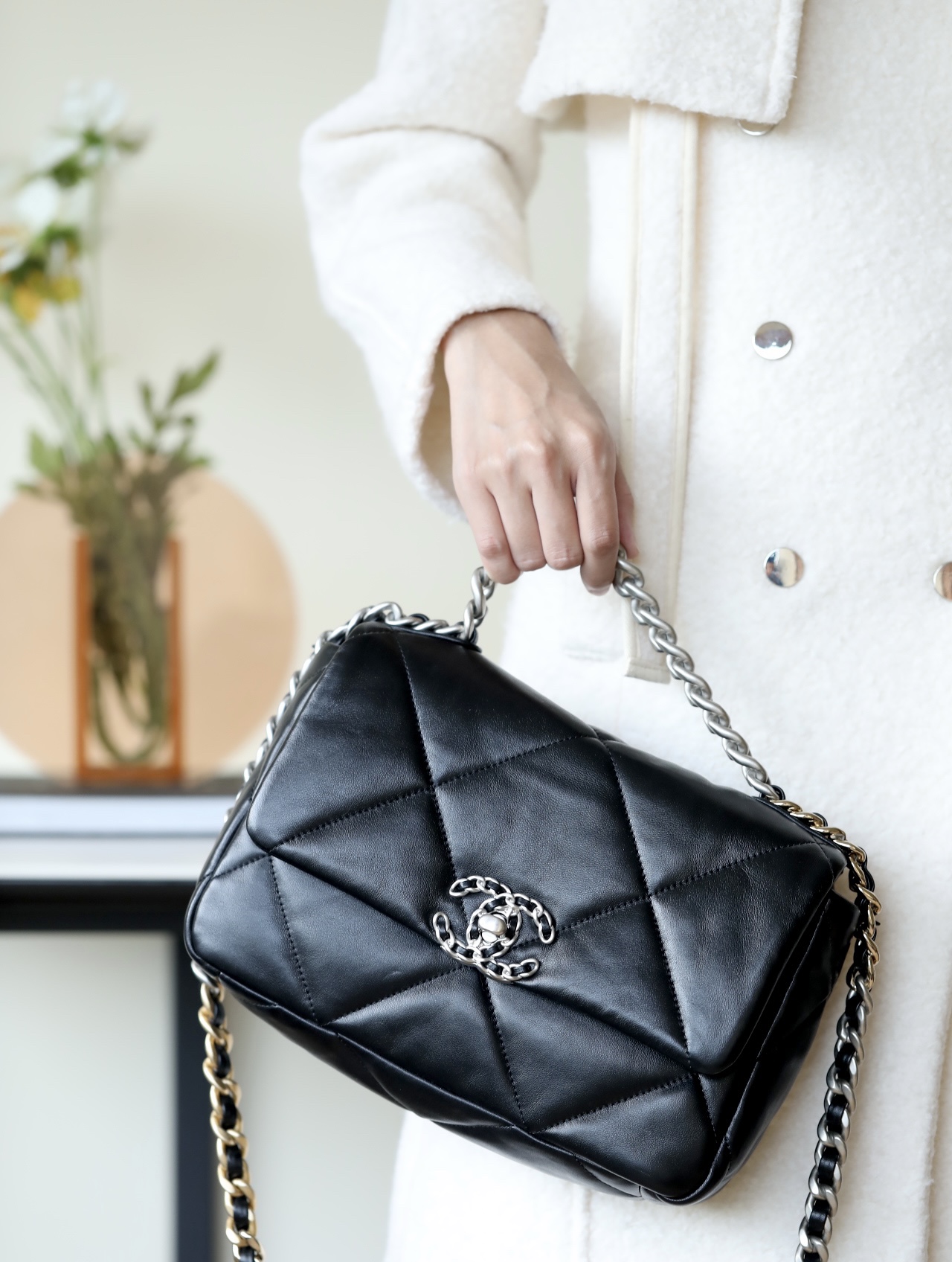 • Chanel Medium 19 Flap Bag Black Lambskin Mixed Hardware