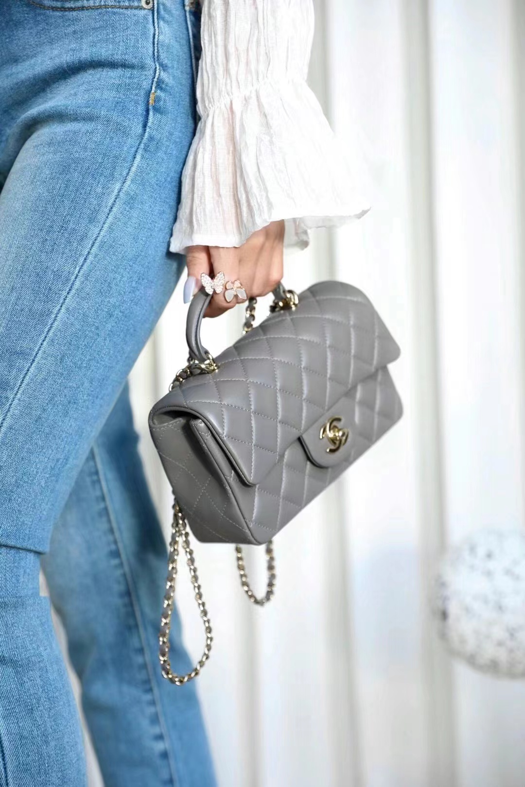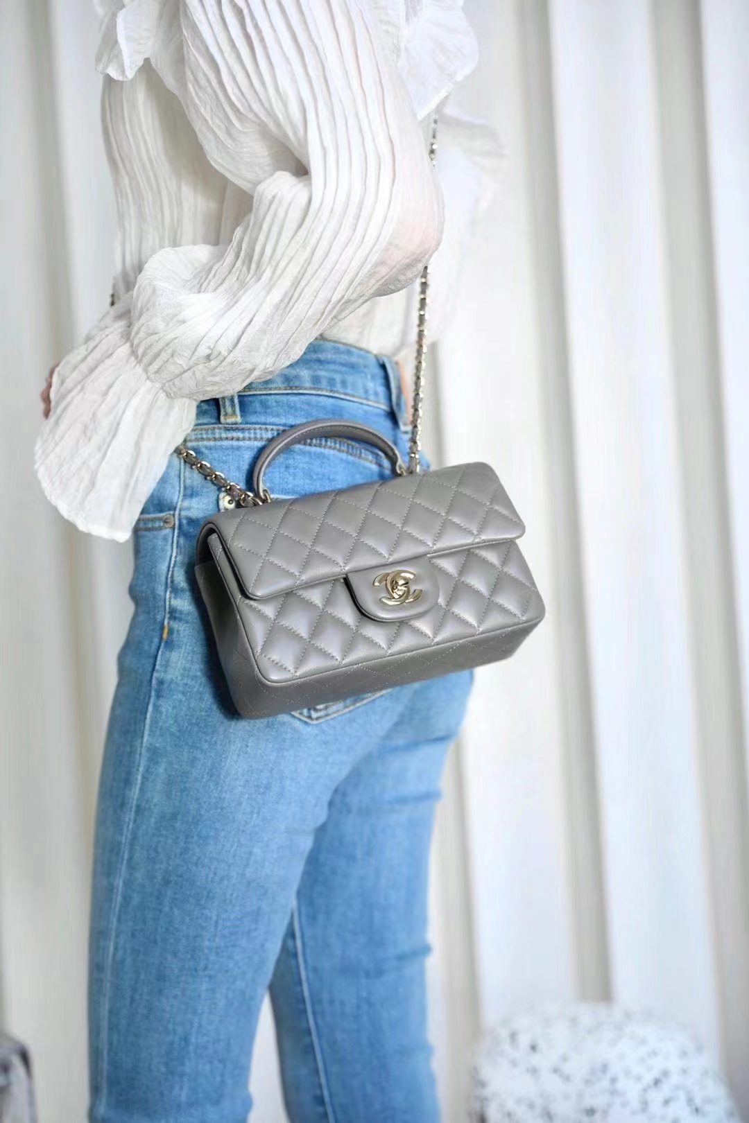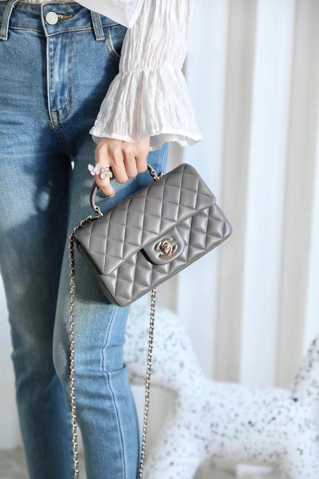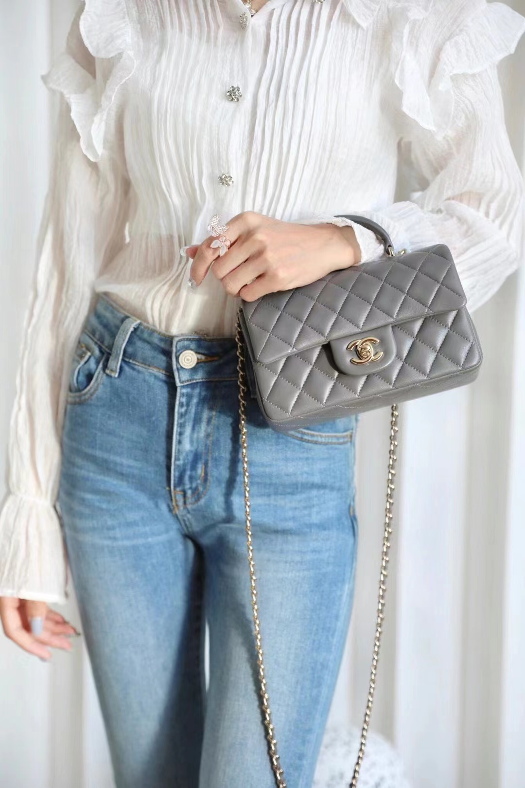 Chanel mini classic flap handbag Advanced gray gold buckle