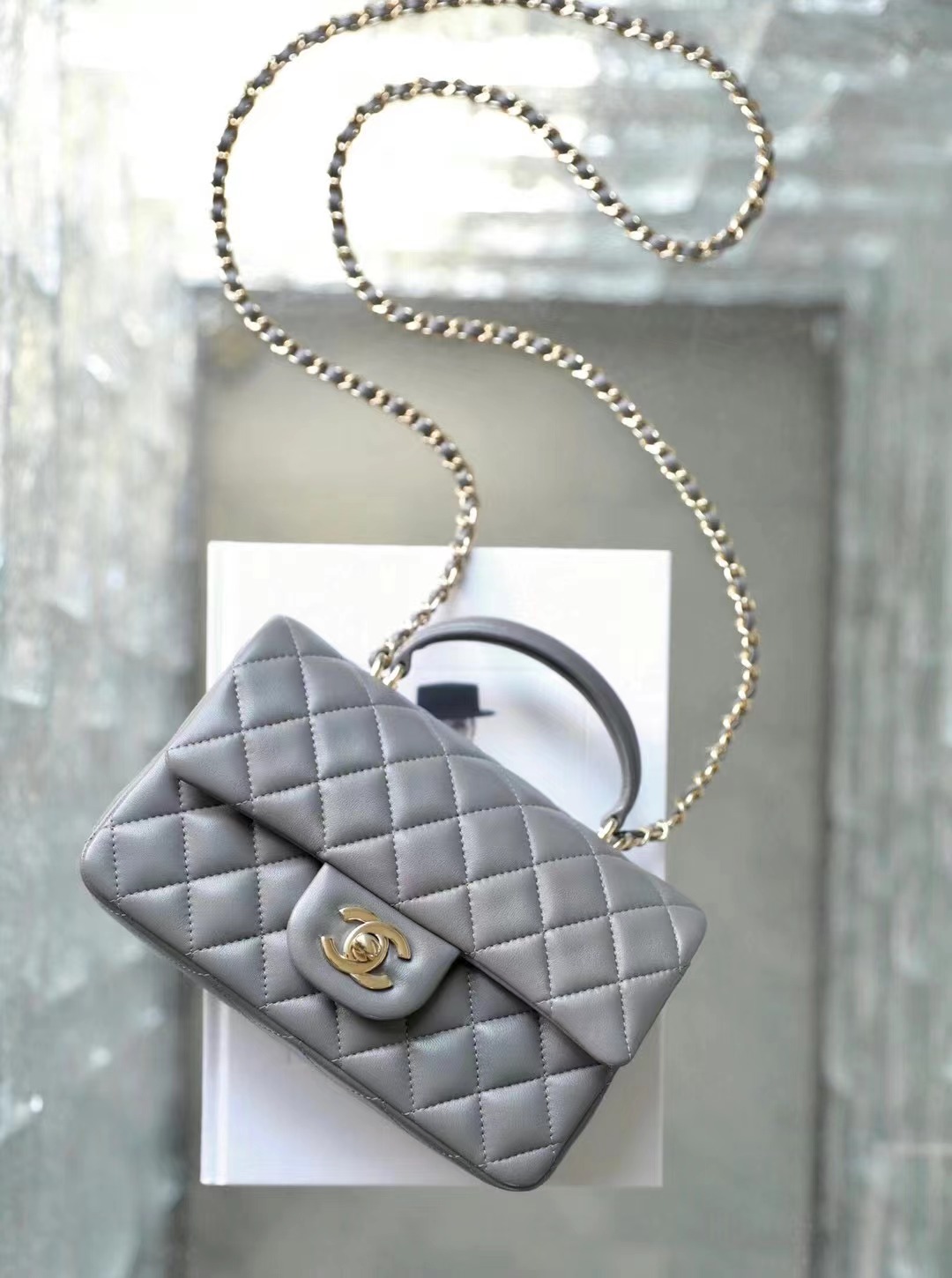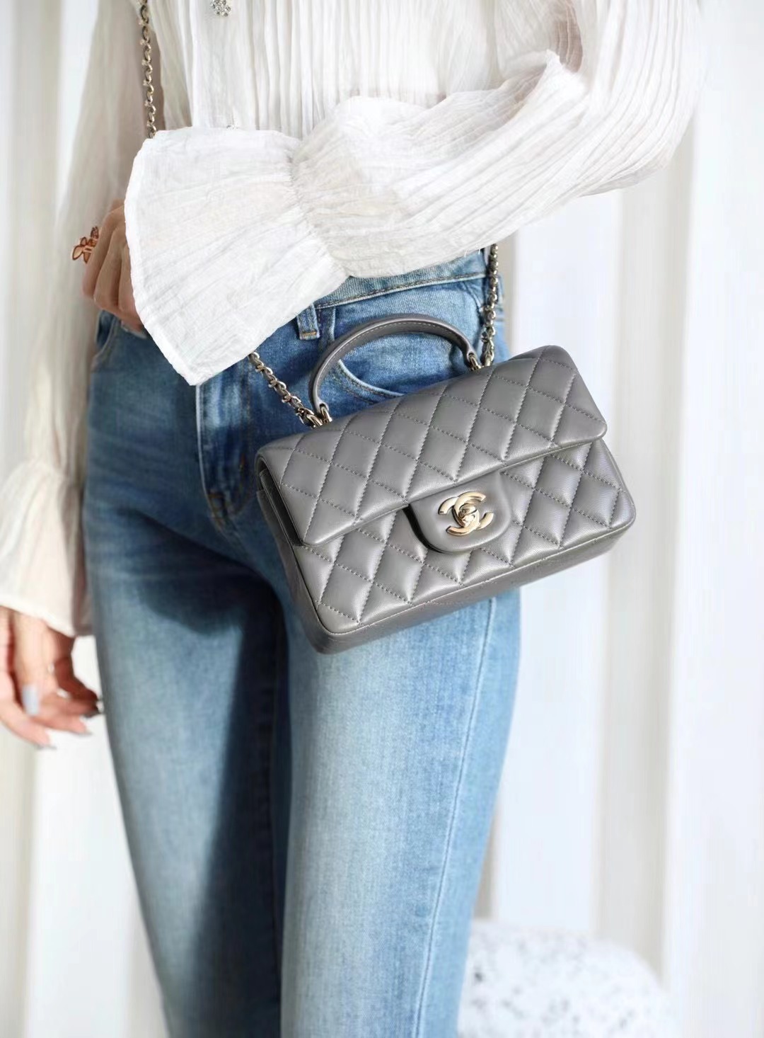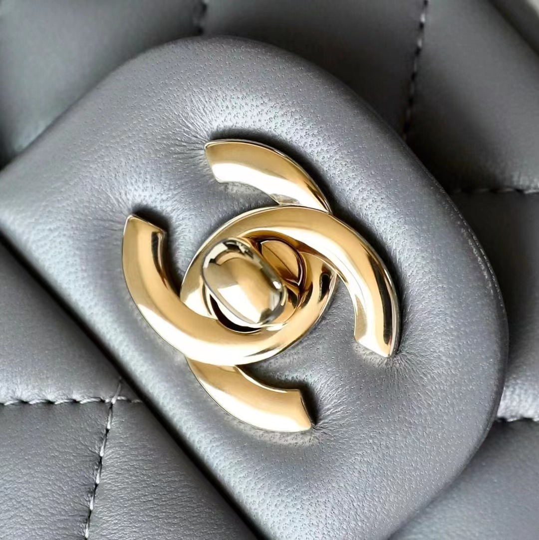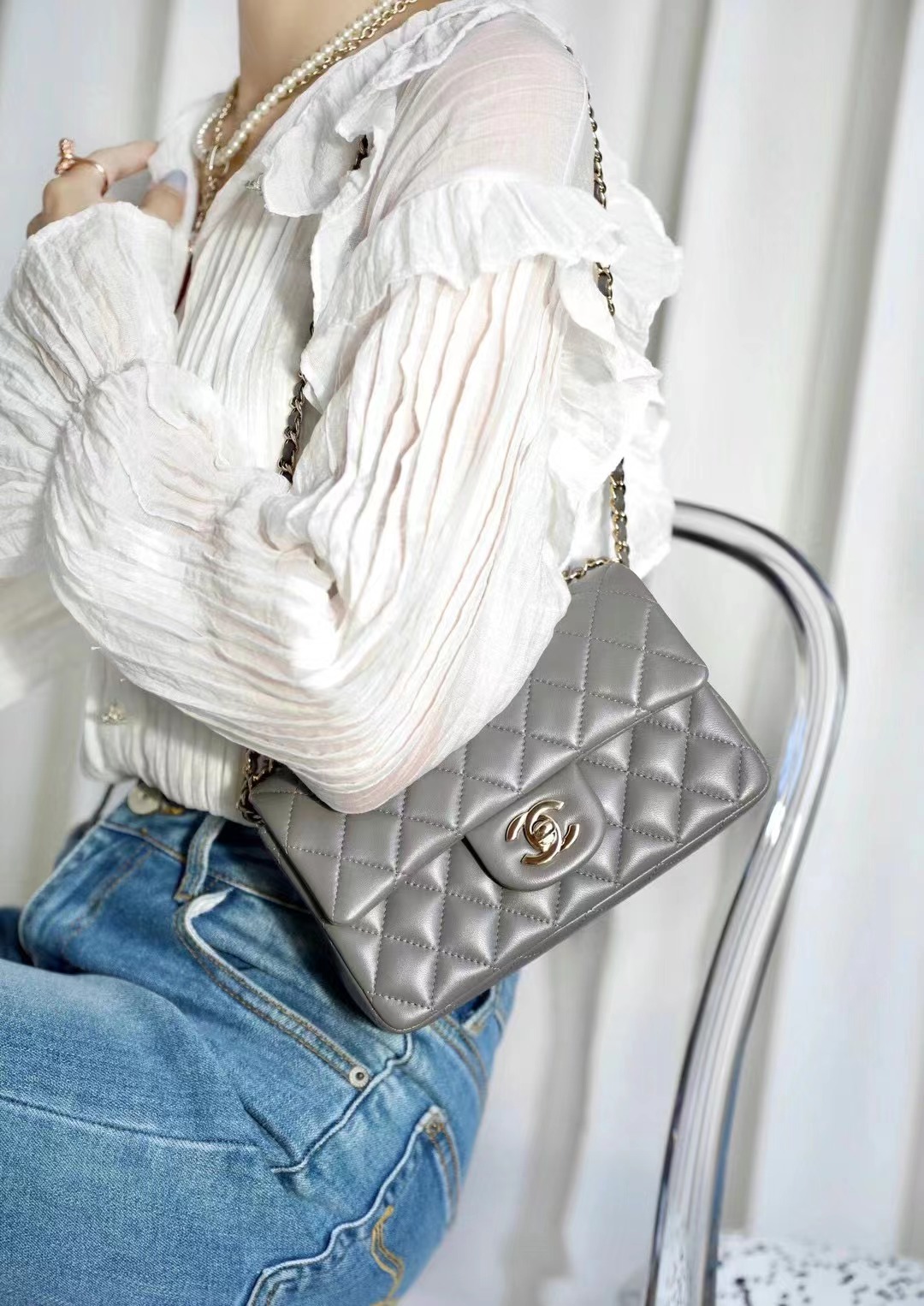 Chanel mini Classic Handbag Grained Calfskin & Gold-Tone Metal Black grey