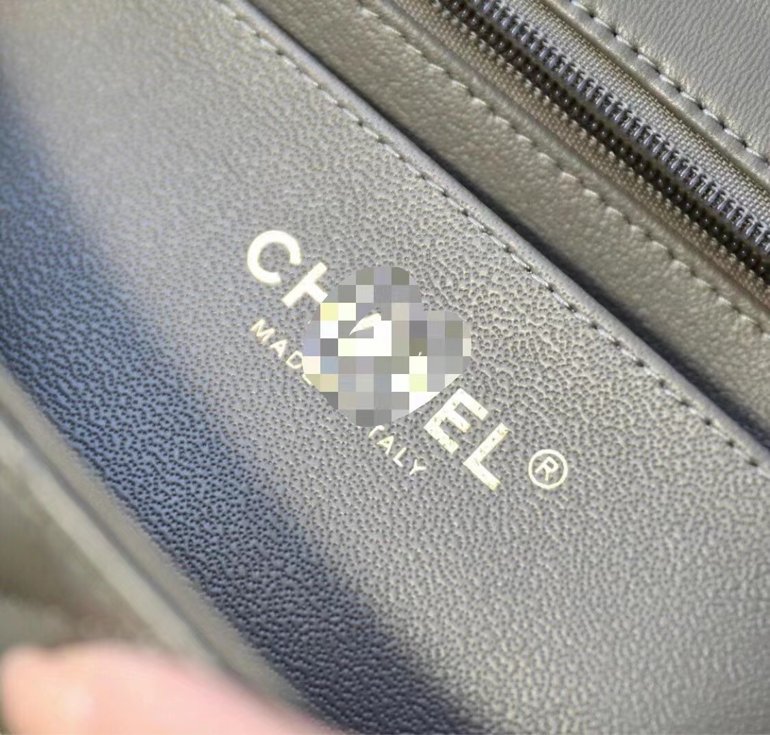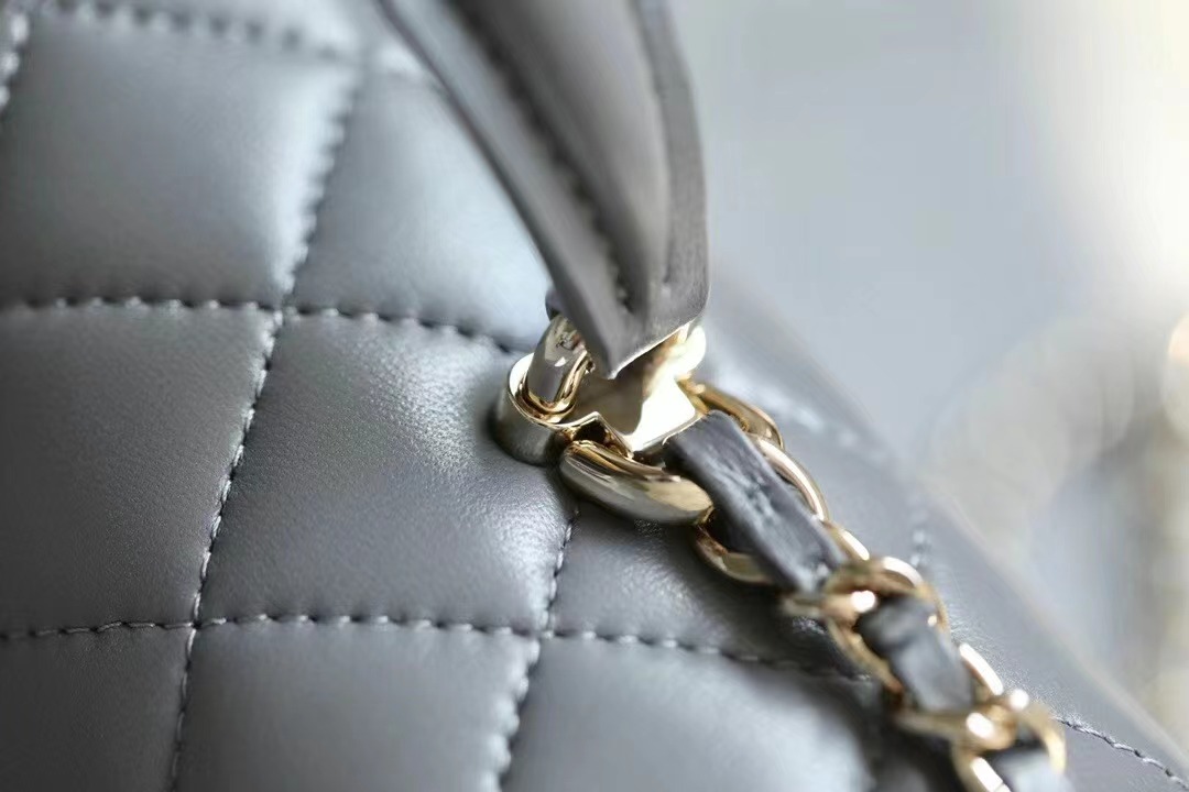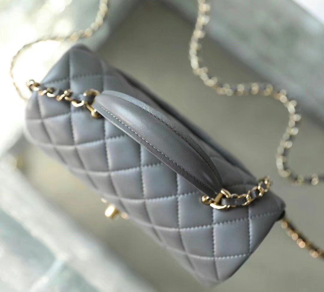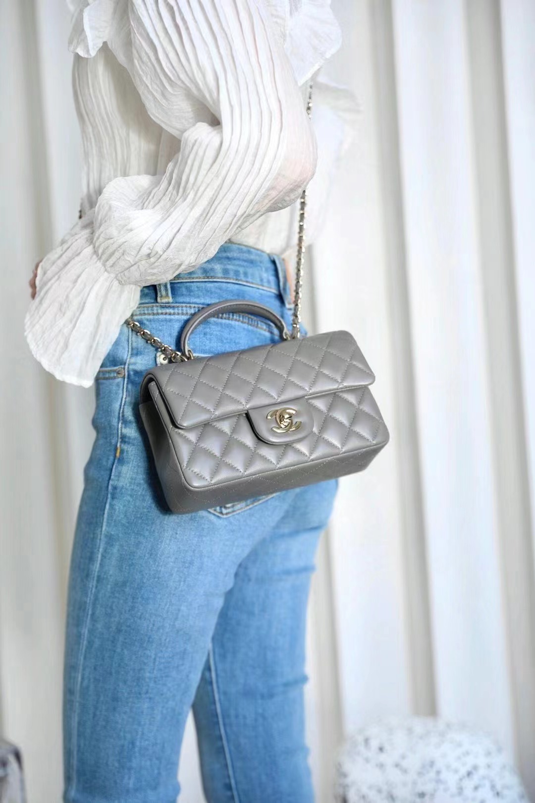 Chanel mini Classic Handbag Grained Calfskin & Gold-Tone Metal Black grey