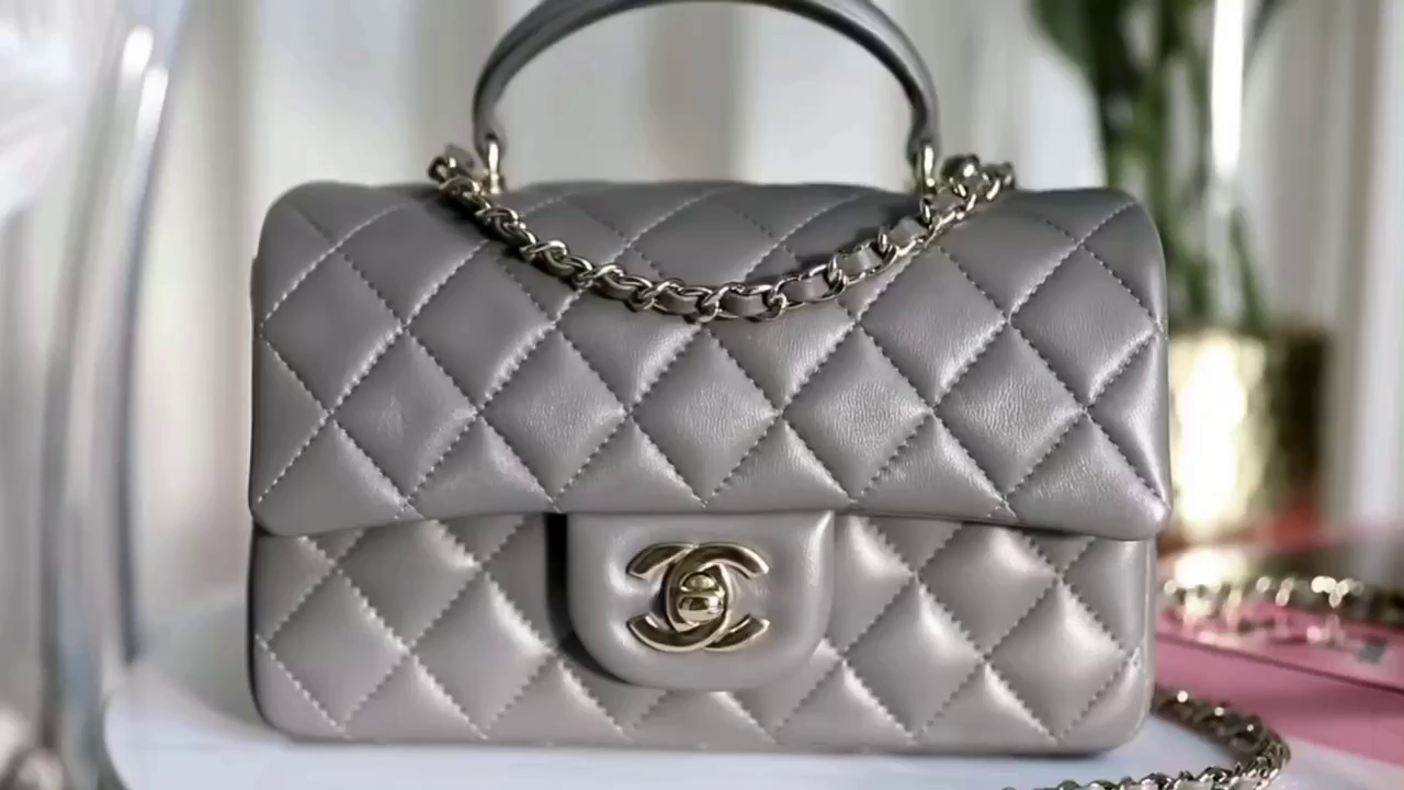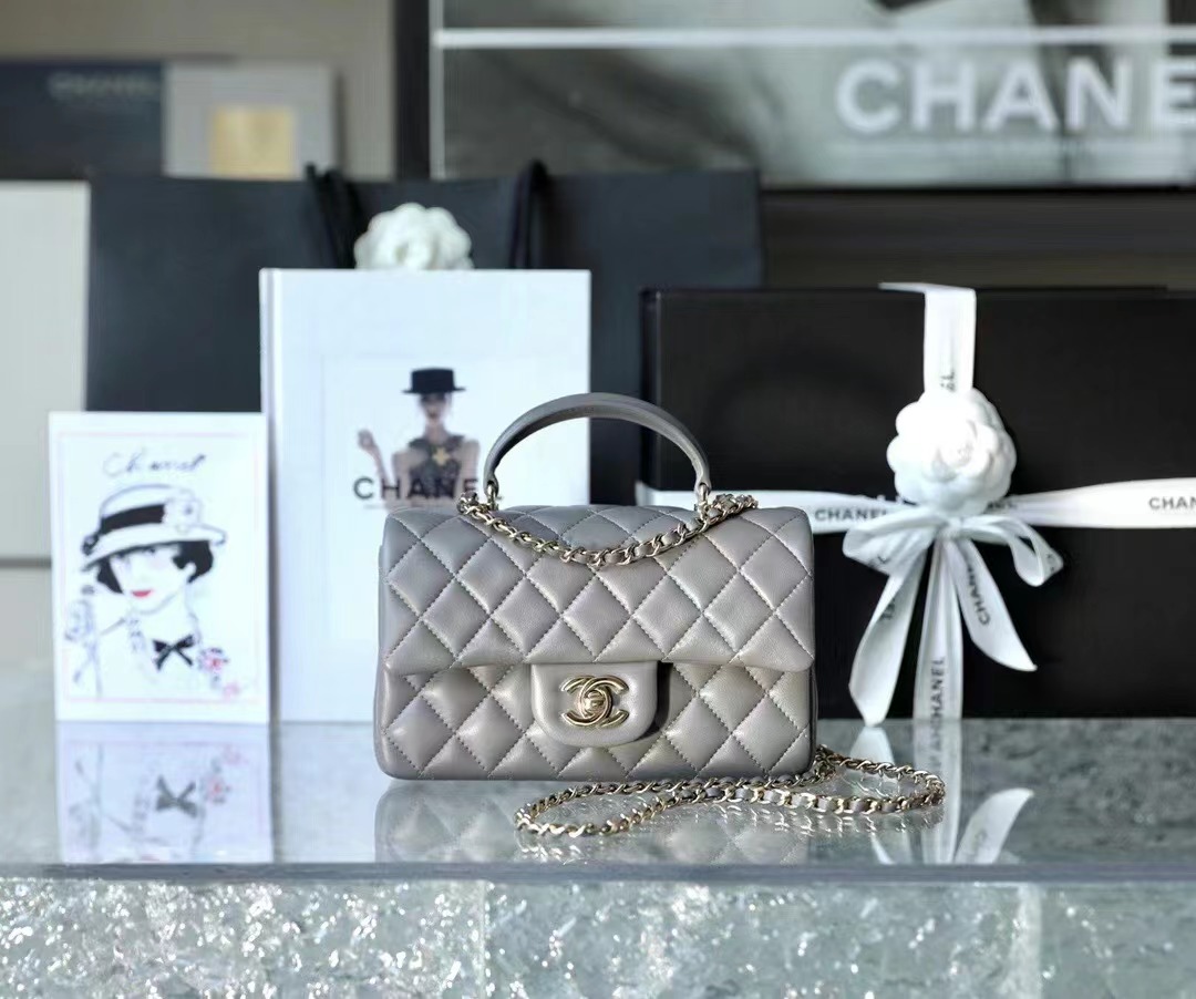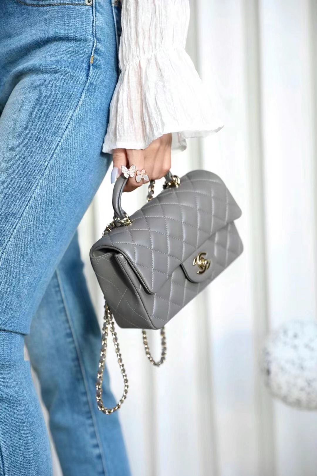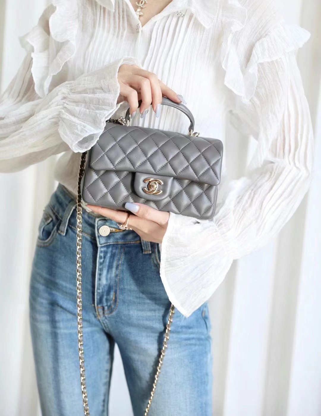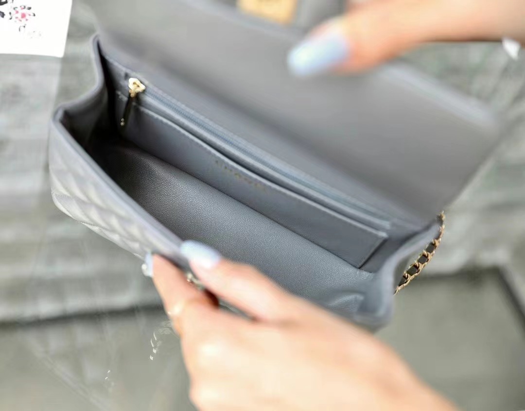 • Chanel mini Classic Handbag Grained Calfskin & Gold-Tone Metal Black grey