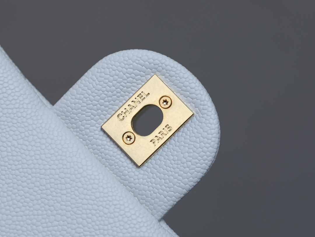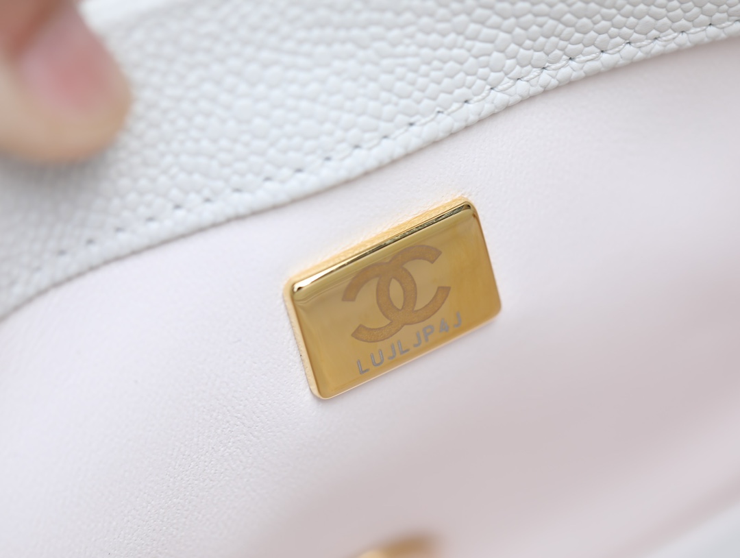 CHANEL Mini Flap Bag Grained Calfskin & Gold-Tone Metal White