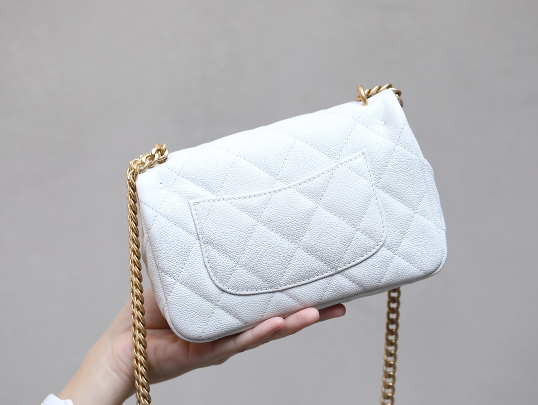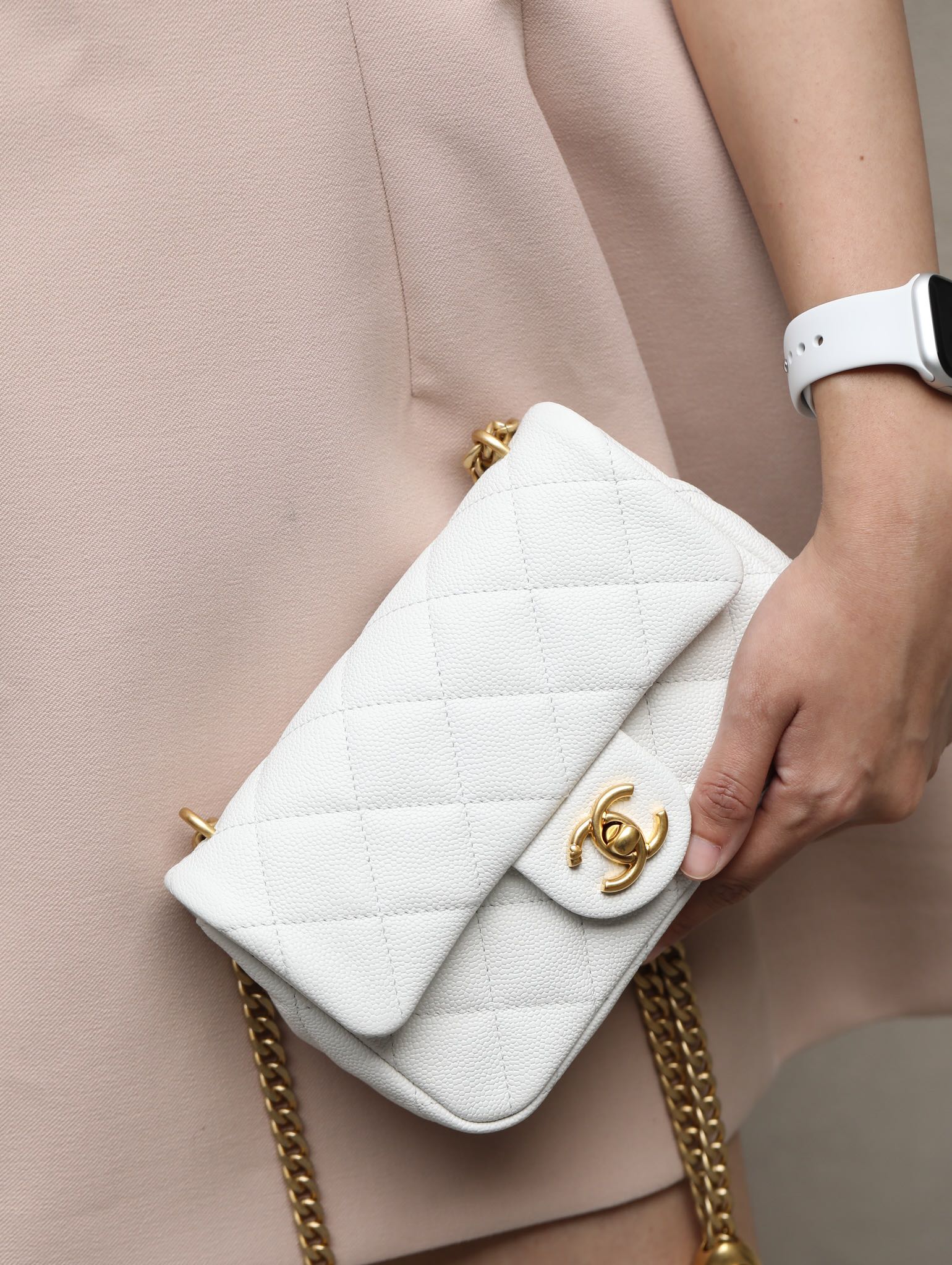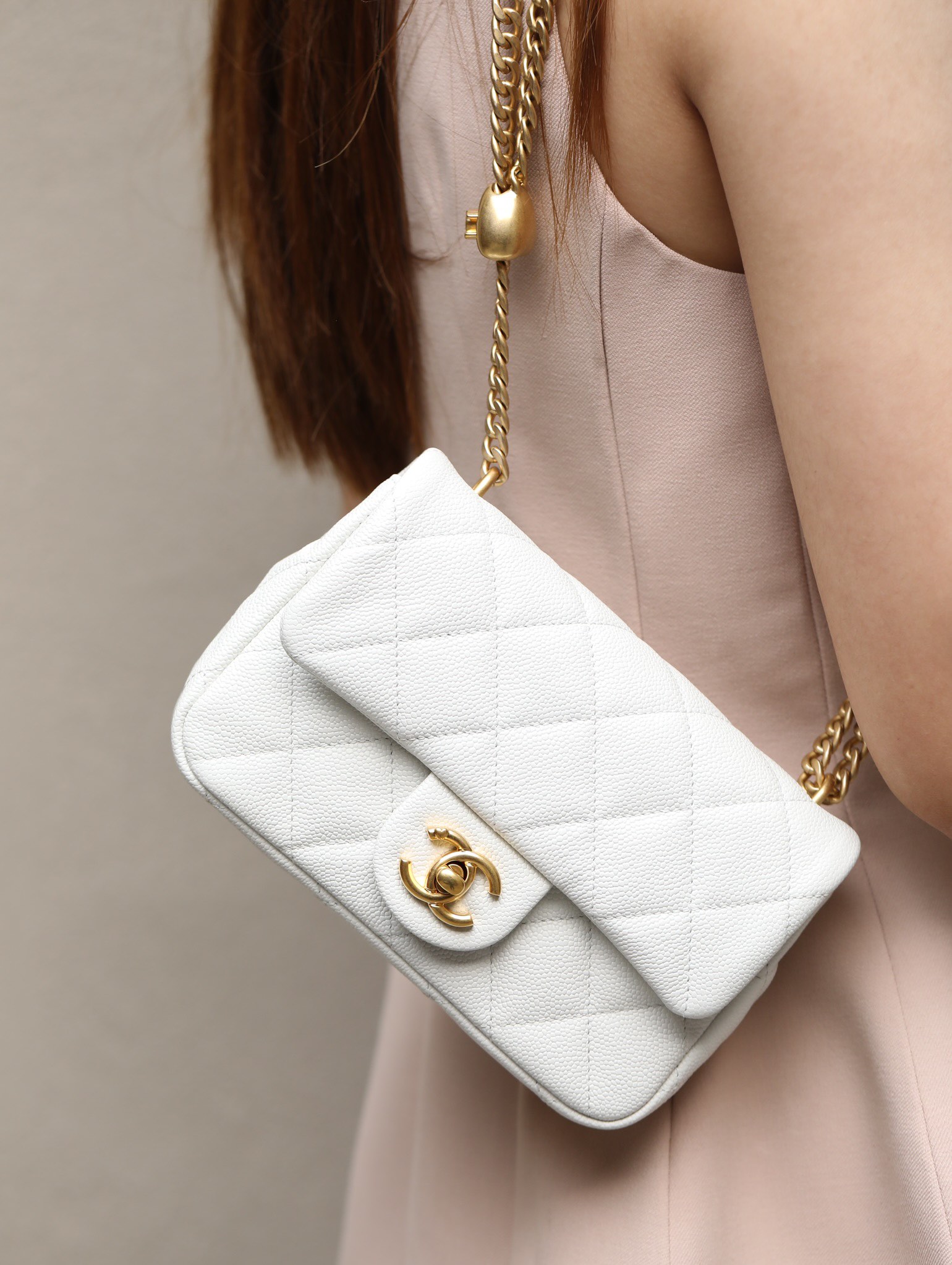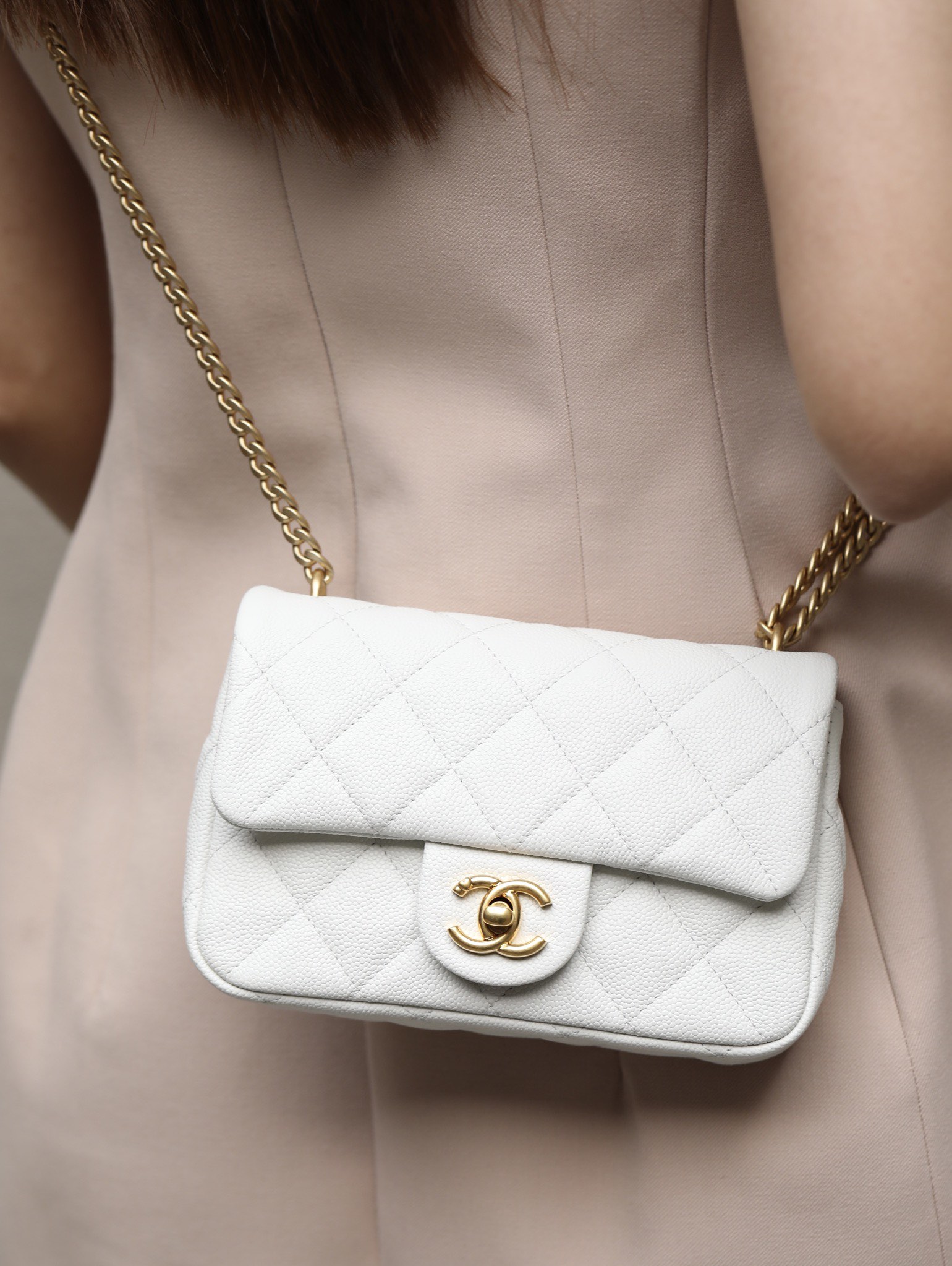 • CHANEL Mini Flap Bag Grained Calfskin & Gold-Tone Metal White