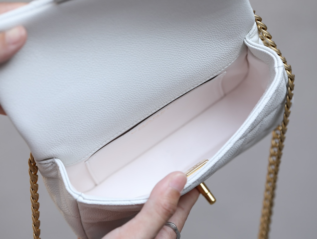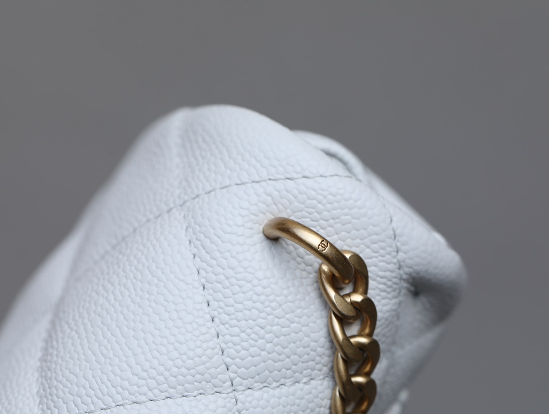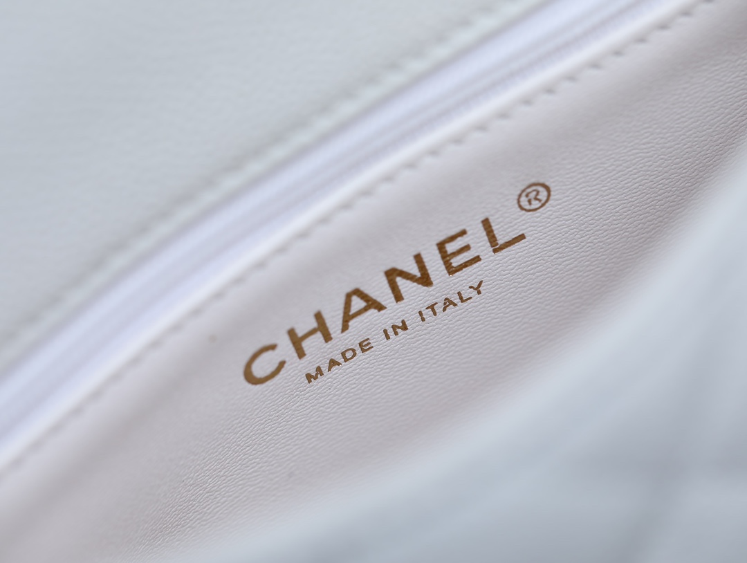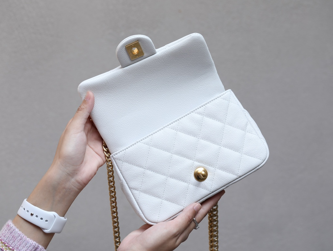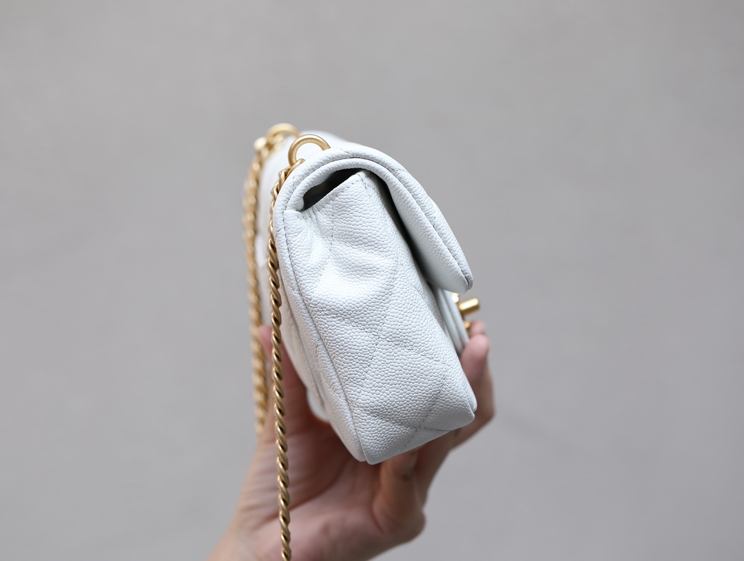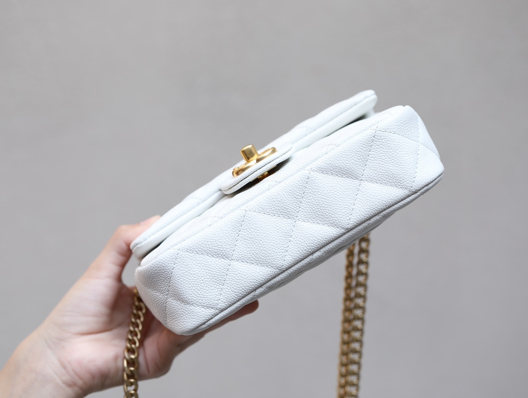 • CHANEL Mini Flap Bag Grained Calfskin & Gold-Tone Metal White