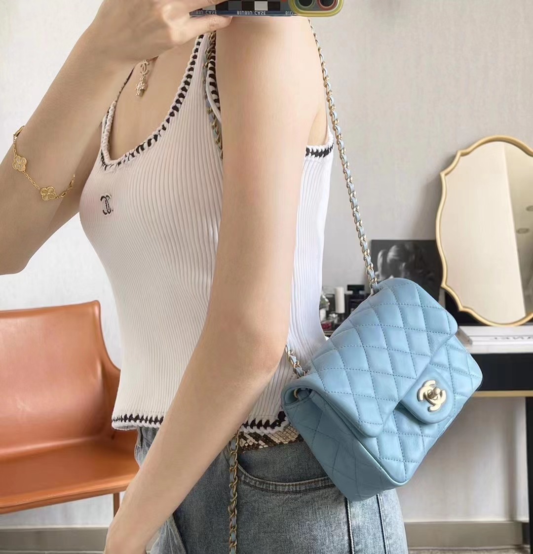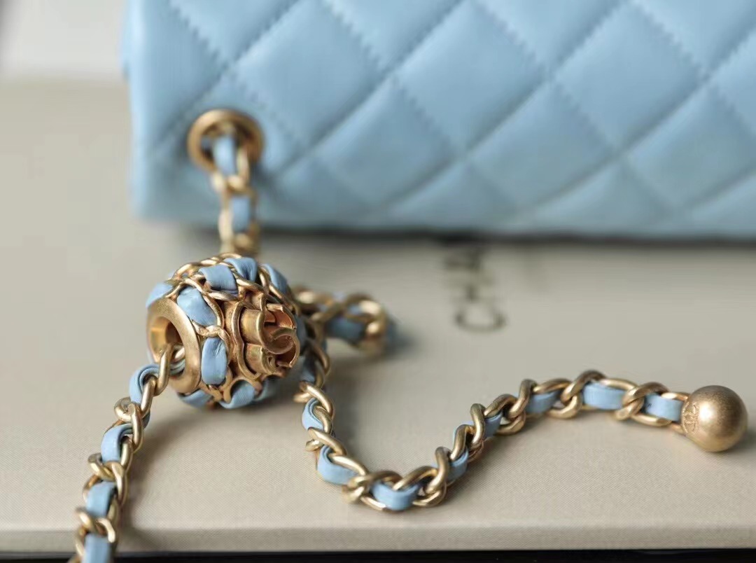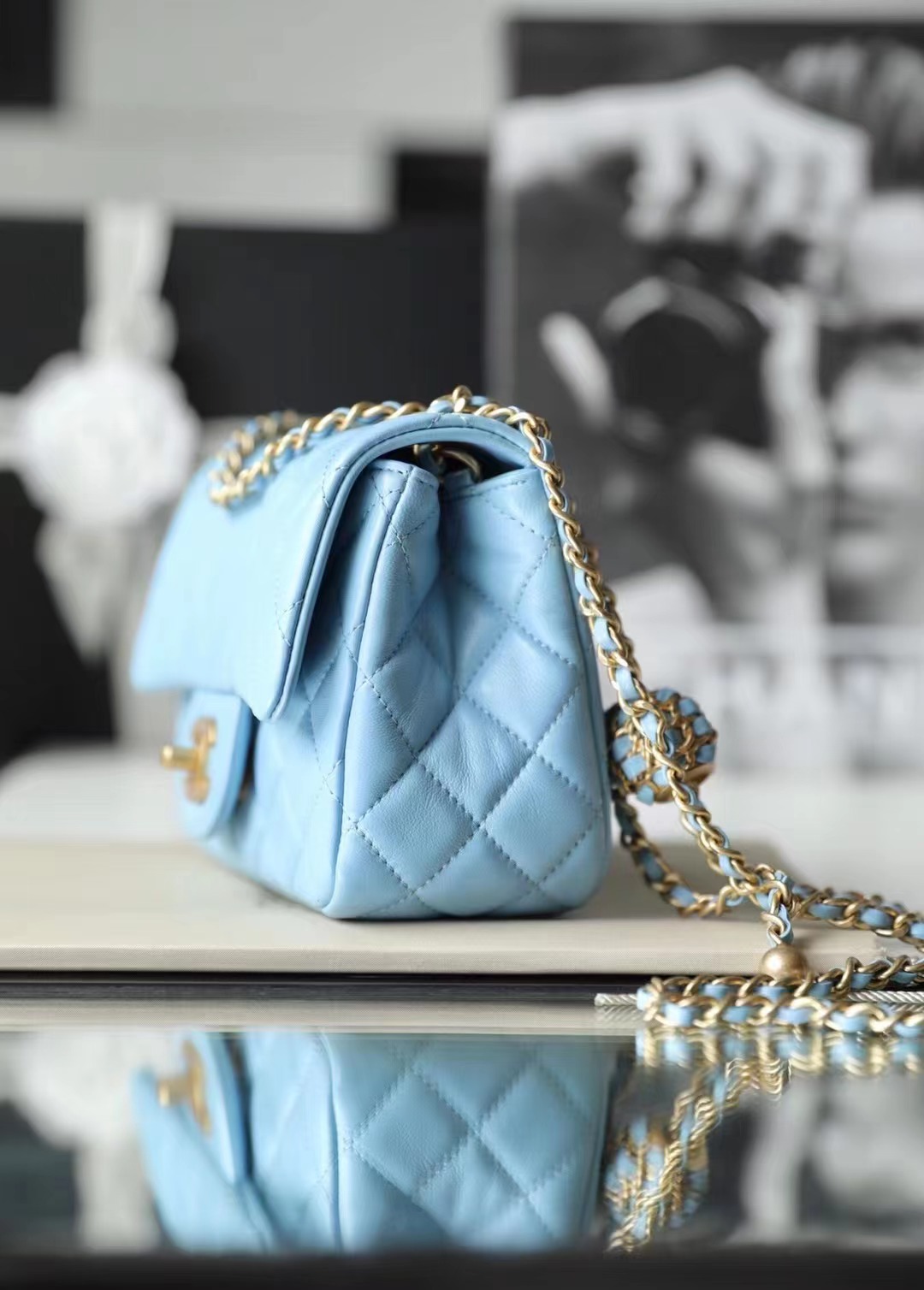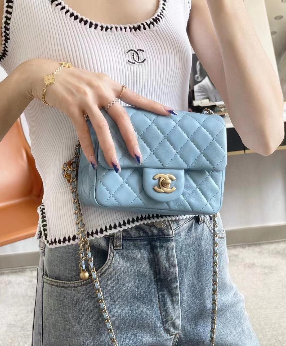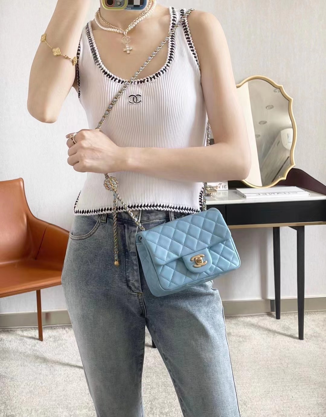 • CHANEL Mini Flap Bag Lambskin, Enamel & Gold-Tone Metal baby blue