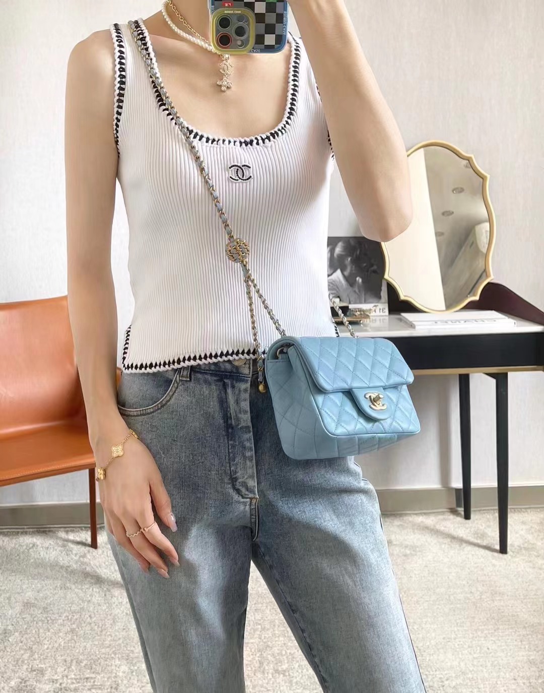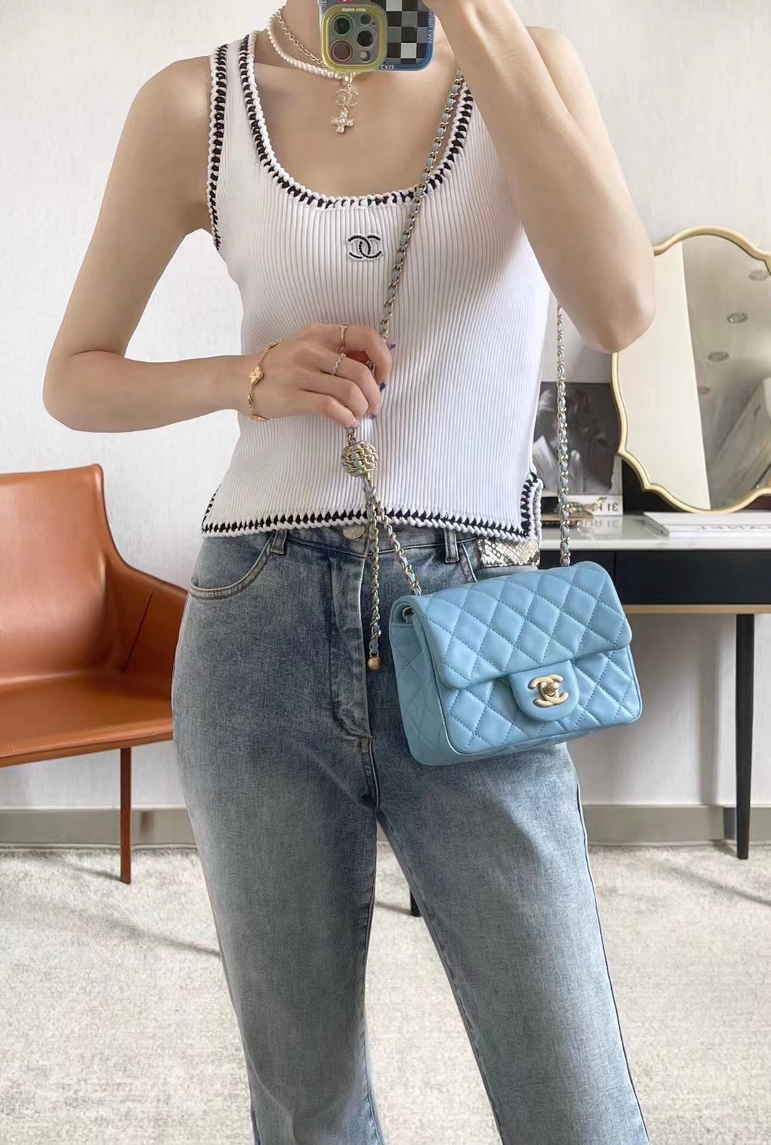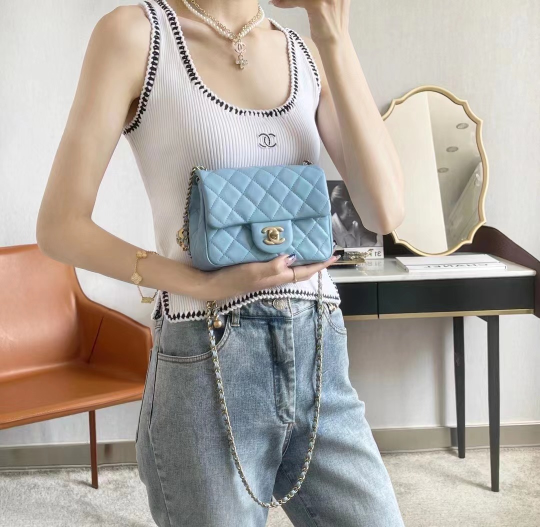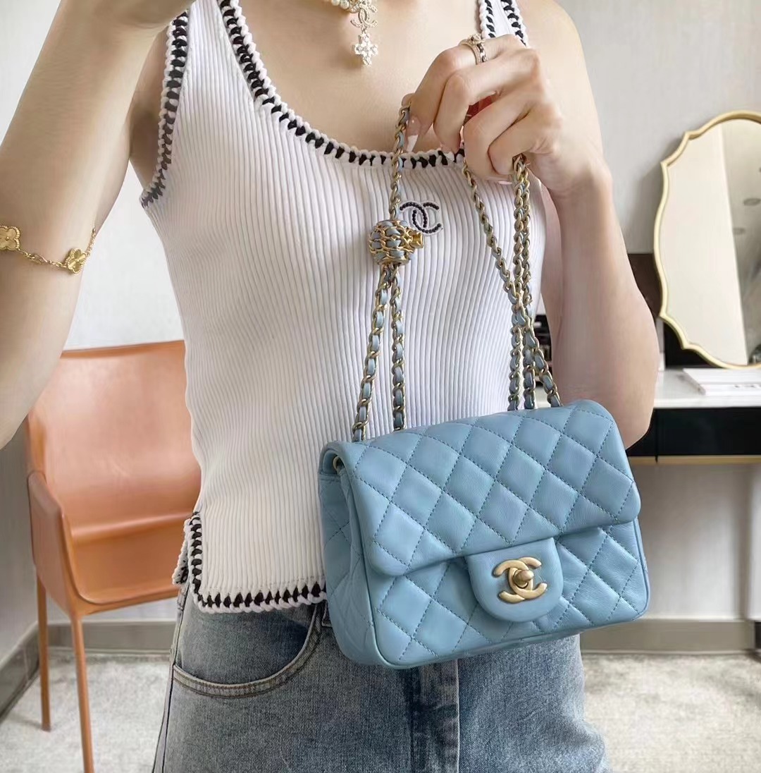 • CHANEL Mini Flap Bag Lambskin, Enamel & Gold-Tone Metal baby blue