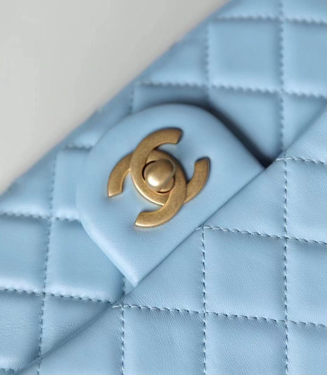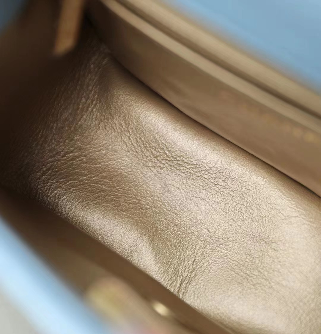 CHANEL Mini Flap Bag Lambskin, Enamel & Gold-Tone Metal baby blue