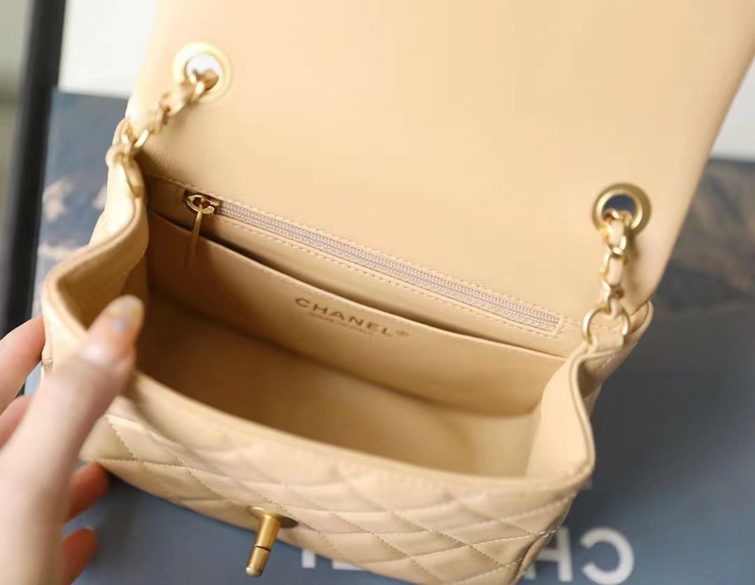 • CHANEL Mini Flap Bag Lambskin, Enamel & Gold-Tone Metal chai