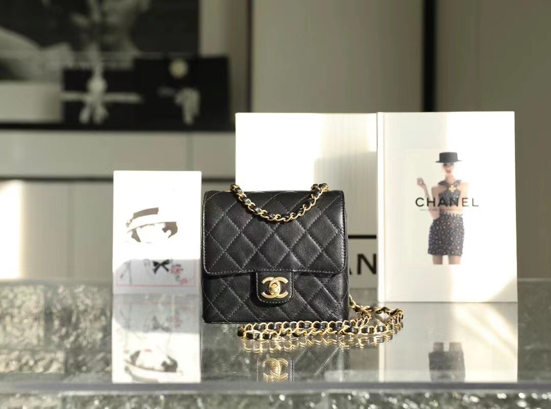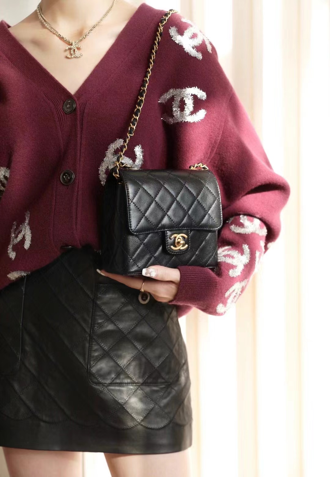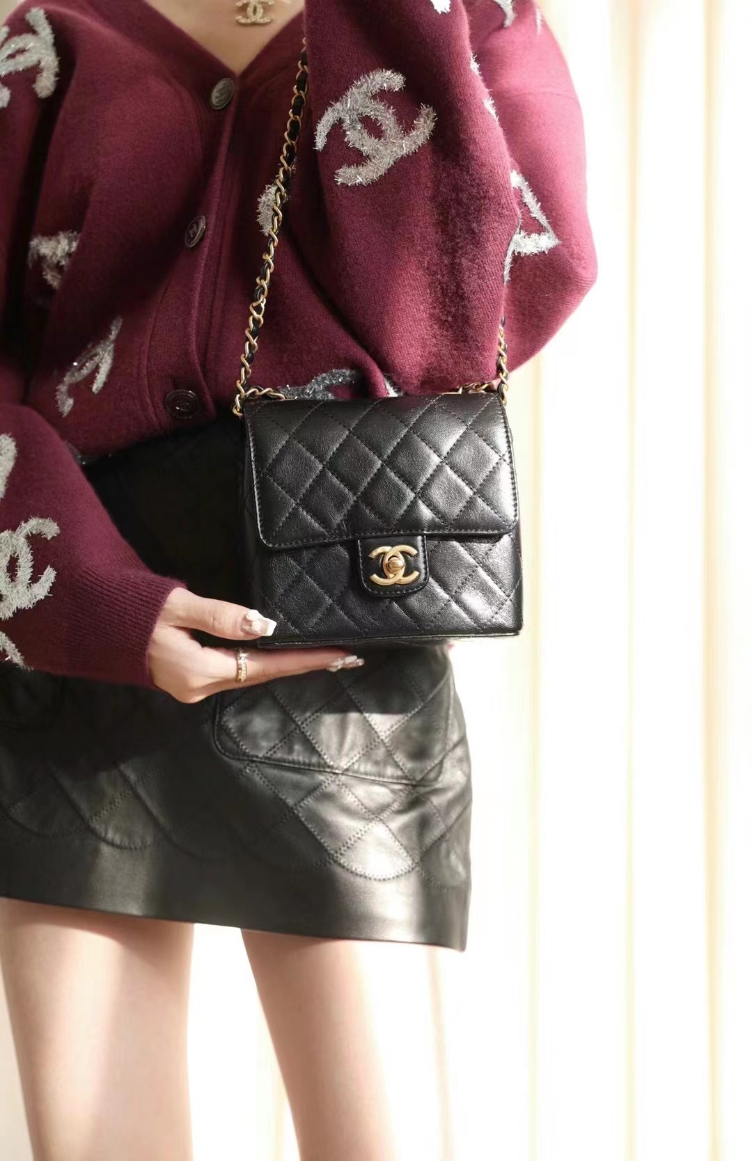 • Chanel Mini Flap Bag Lambskin & Gold-Tone Metal Black