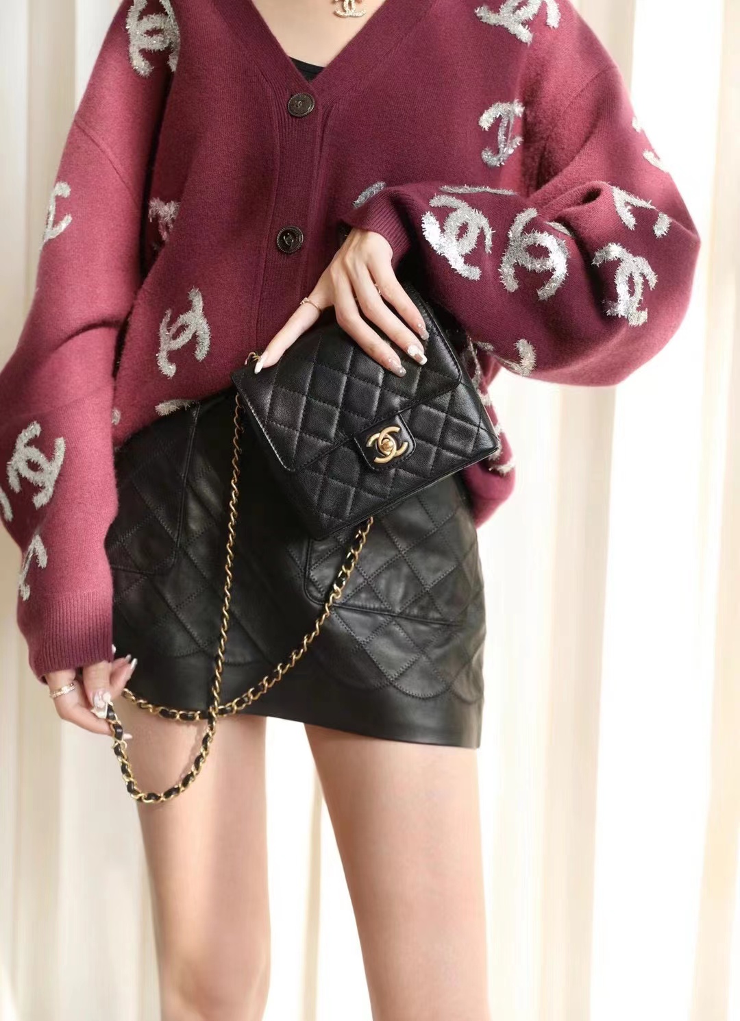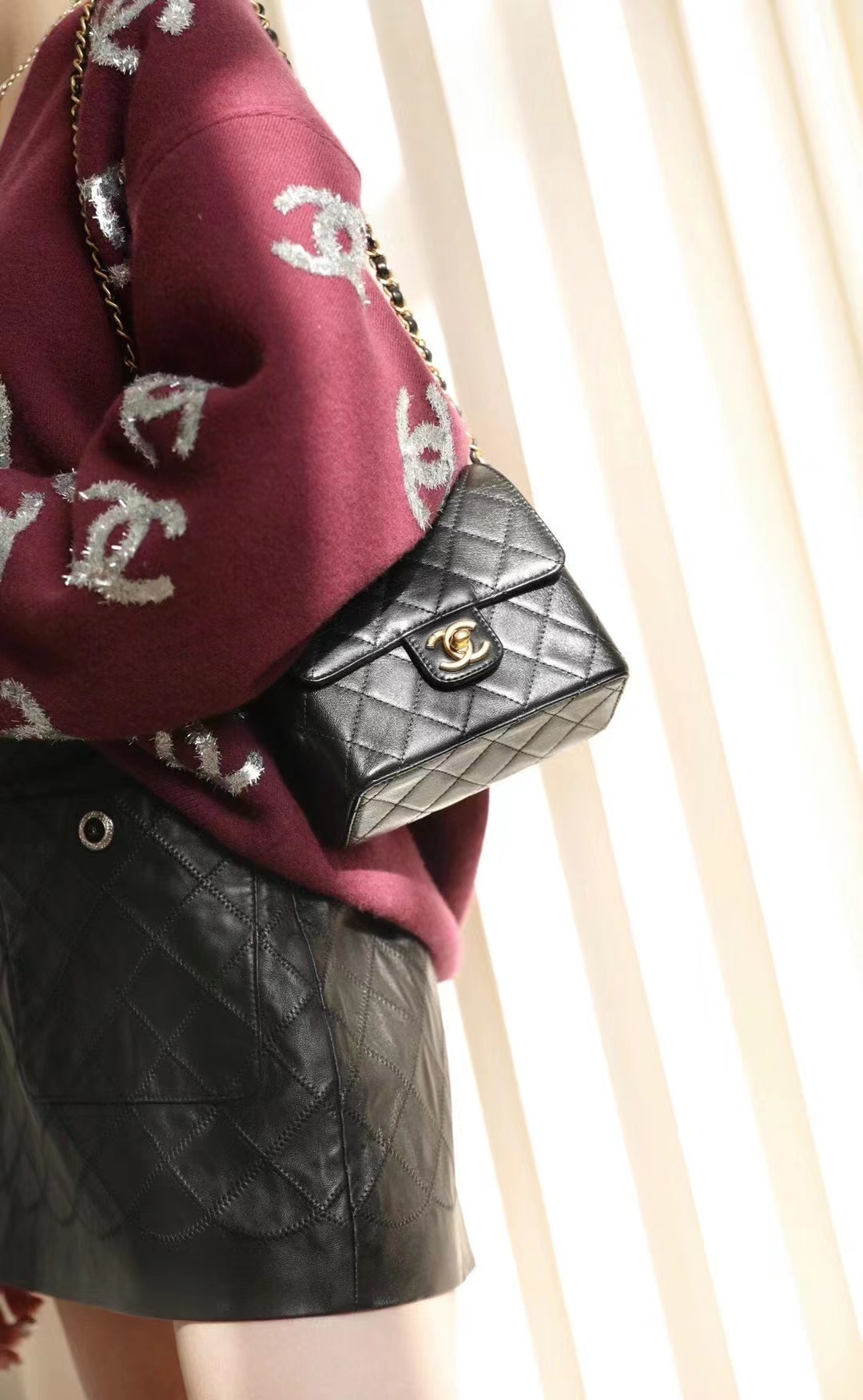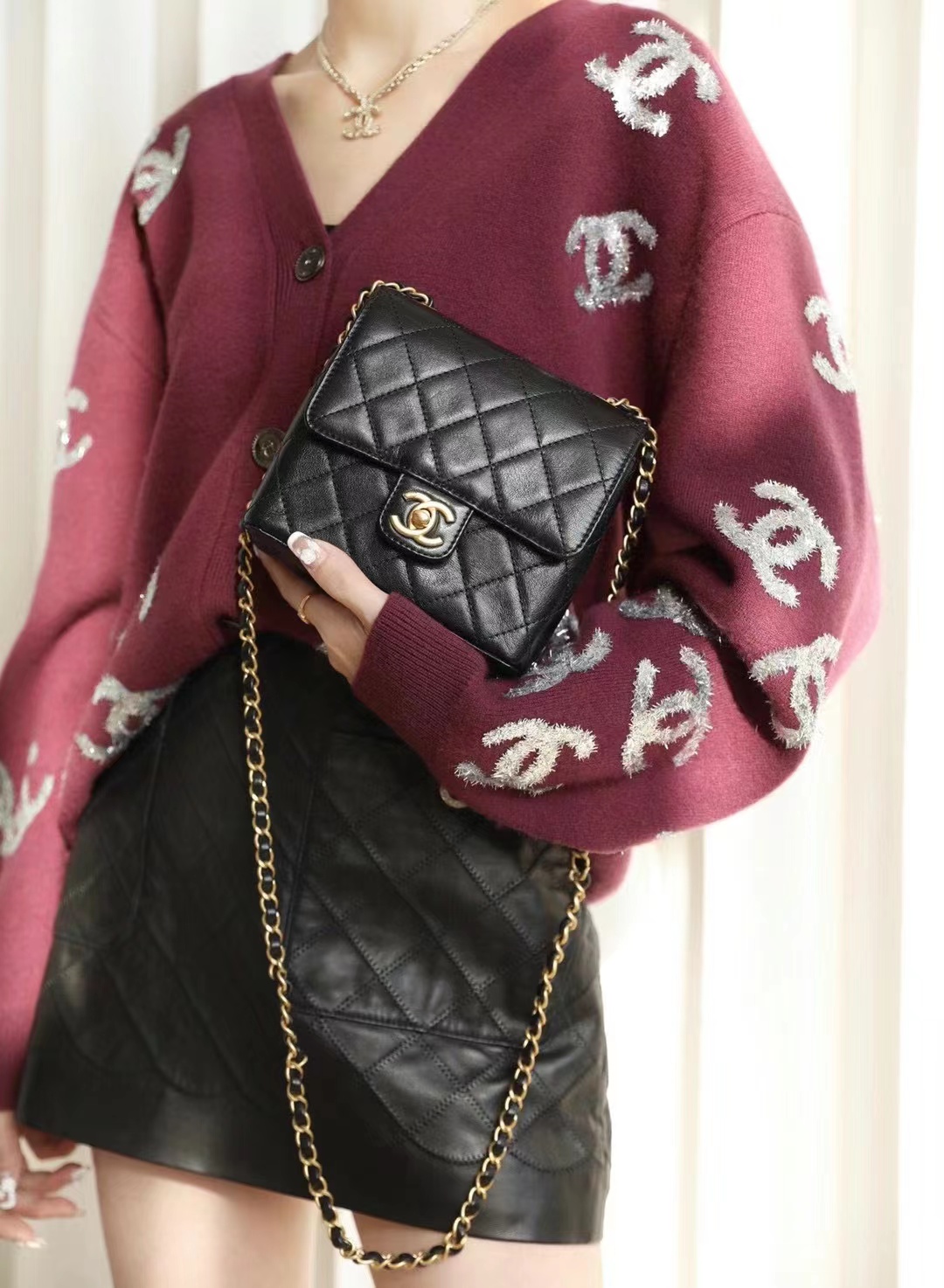 • Chanel Mini Flap Bag Lambskin & Gold-Tone Metal Black