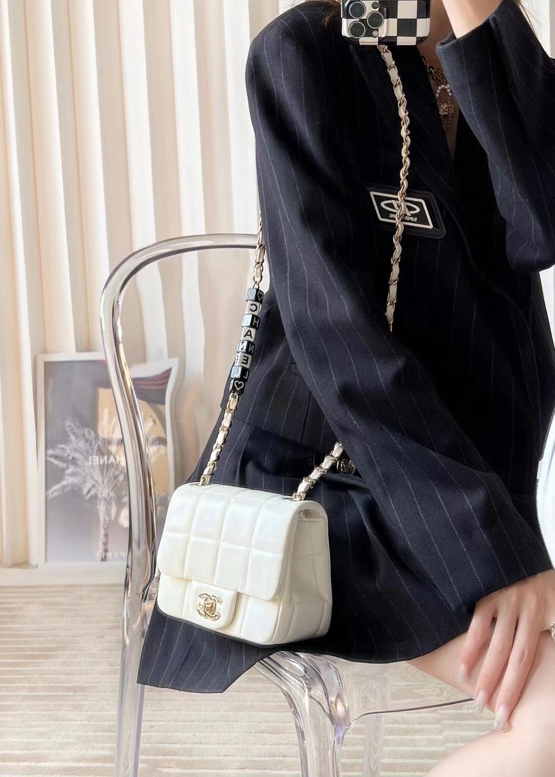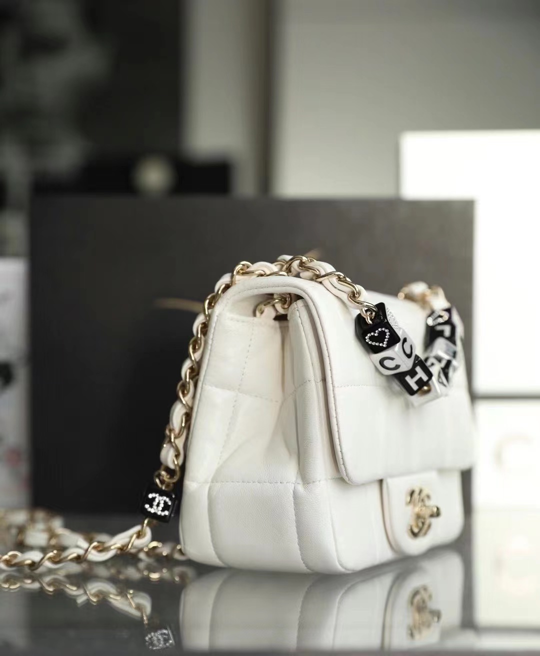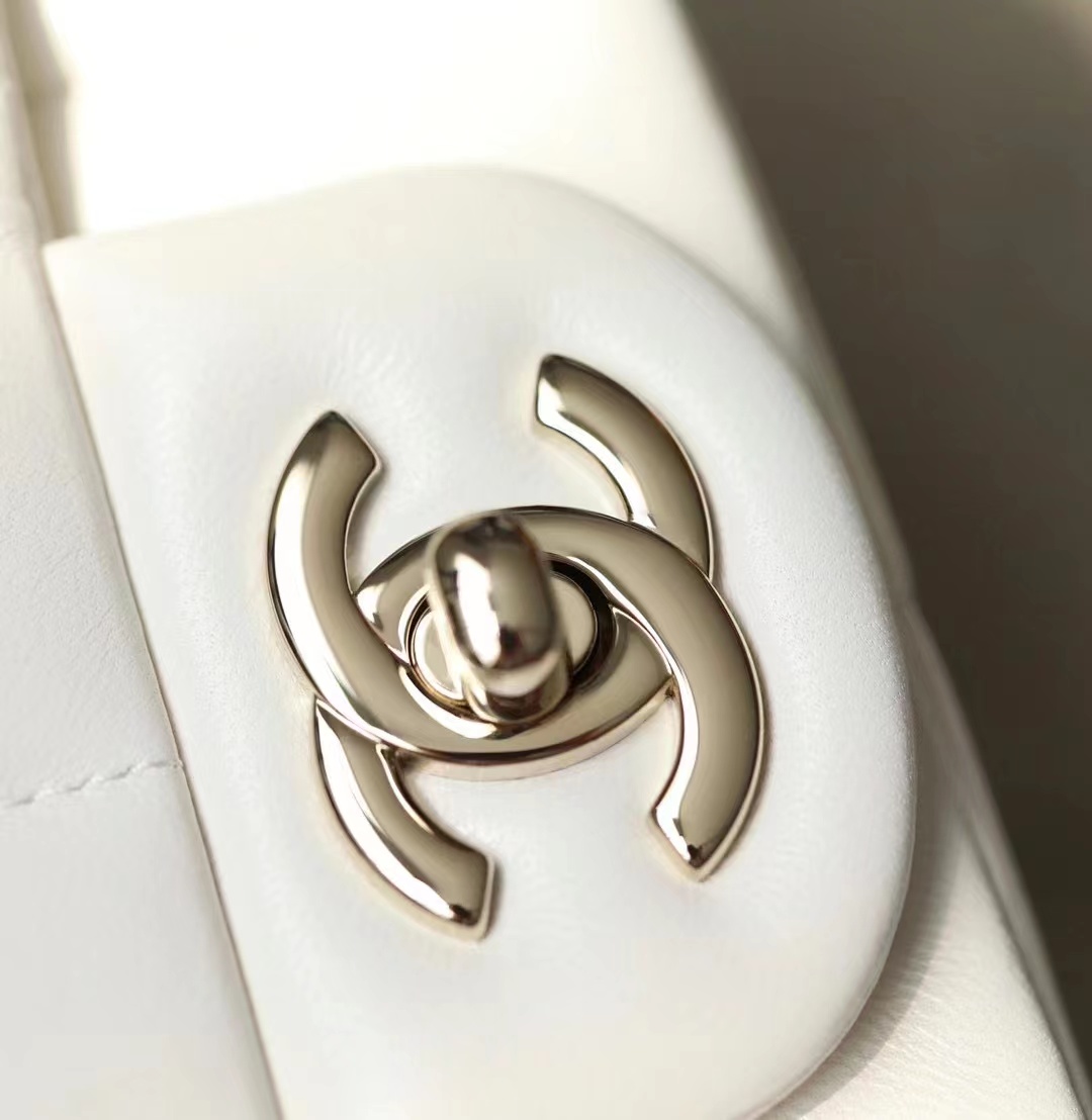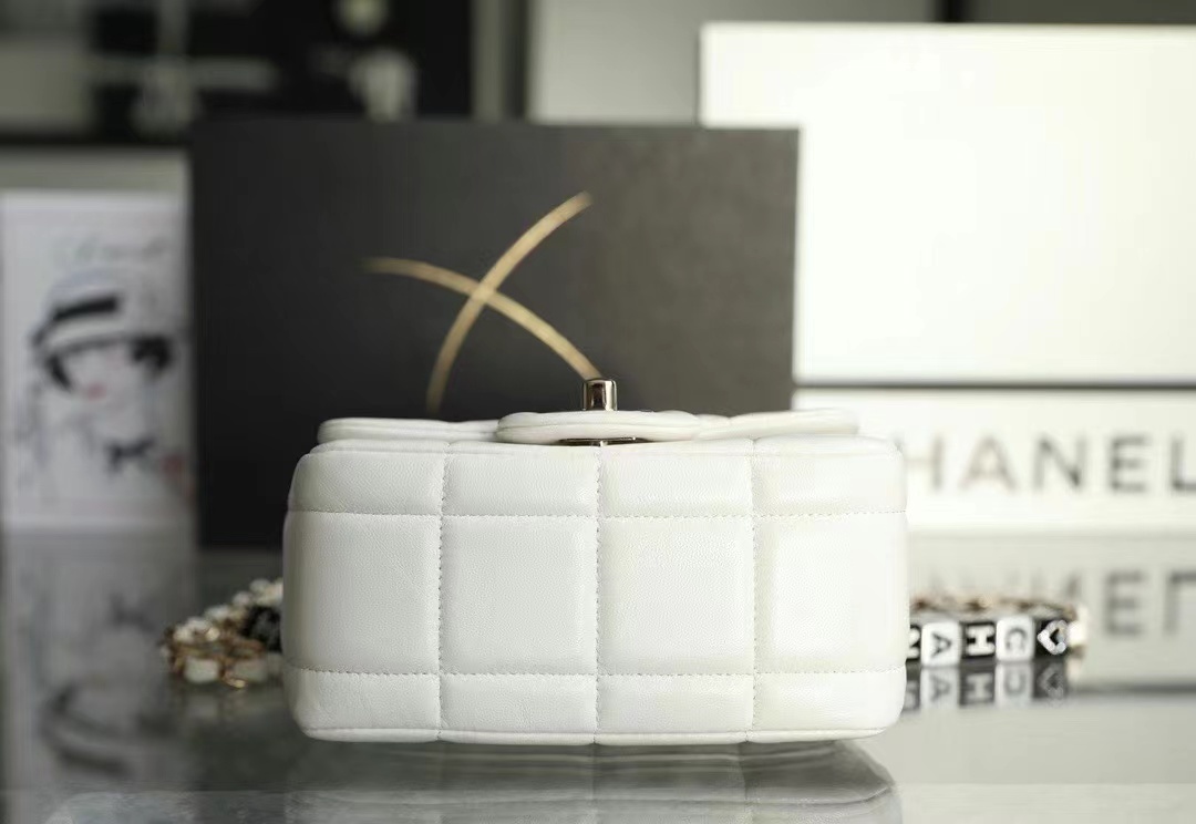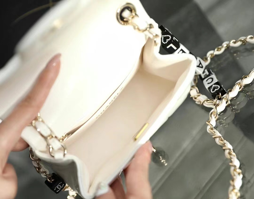 • Chanel Mini Flap Bag Lambskin, Resin & Gold-Tone Metal White