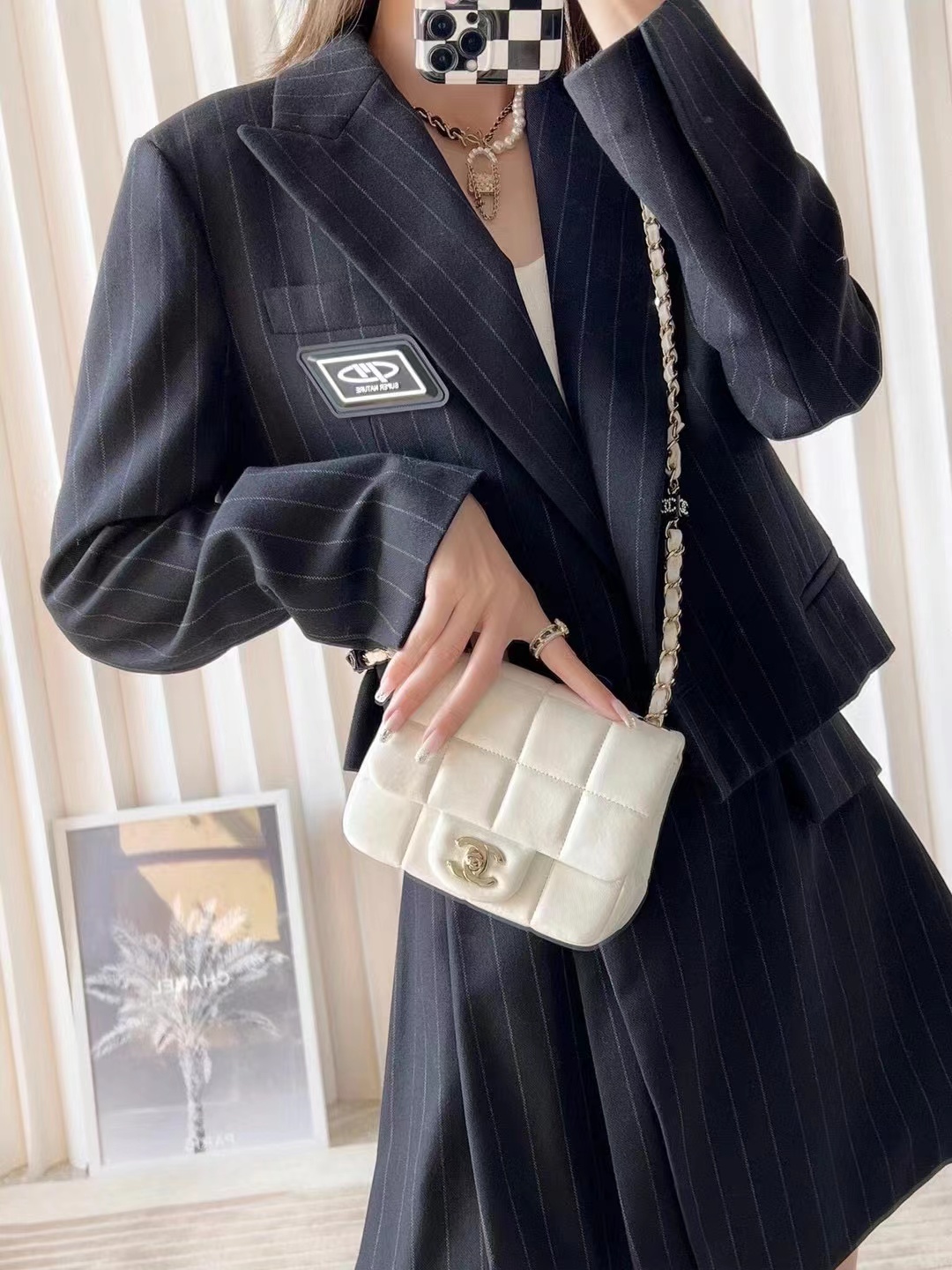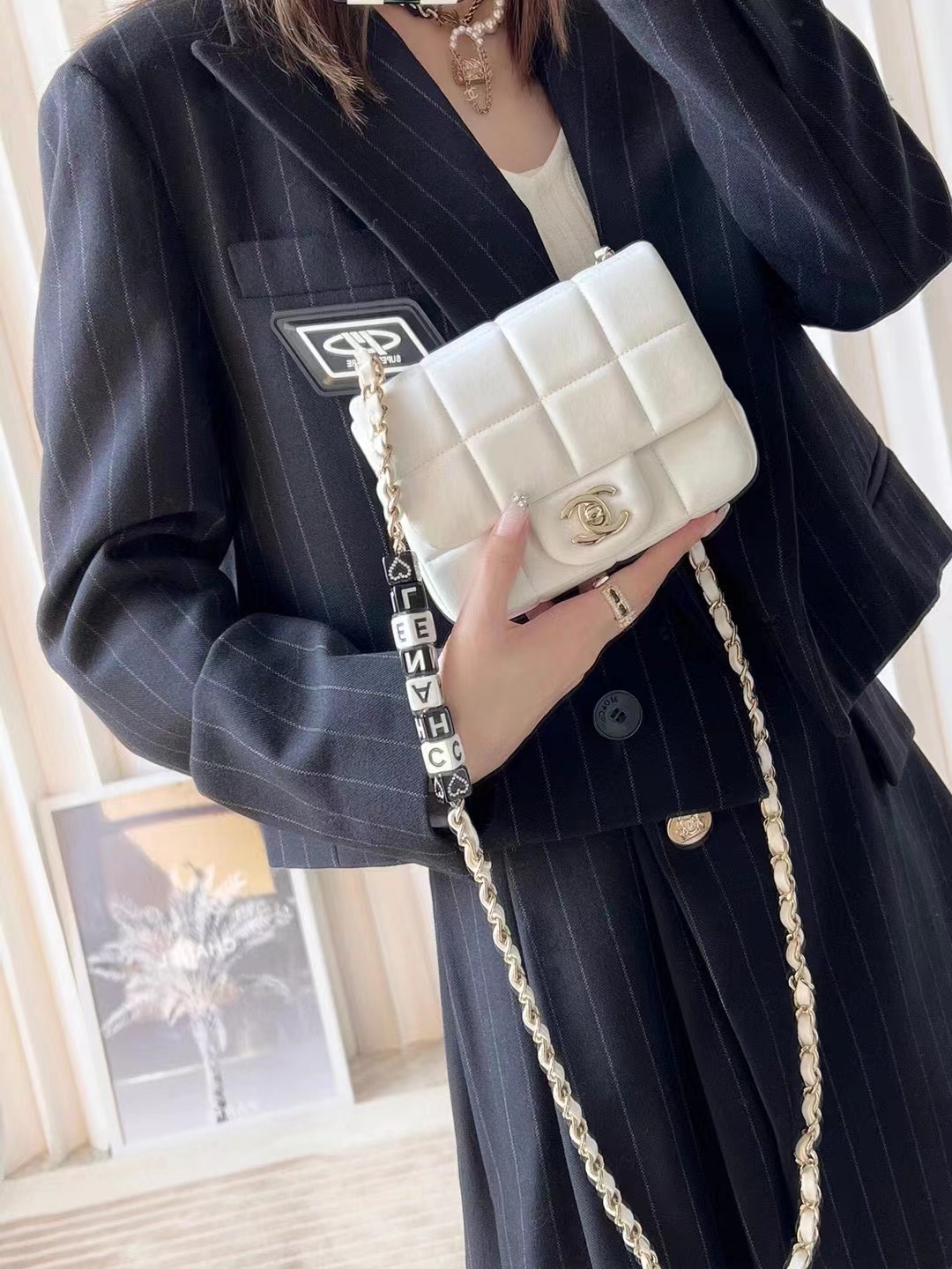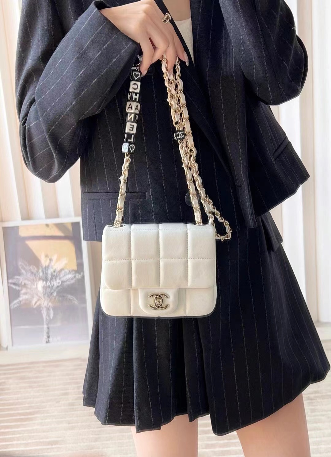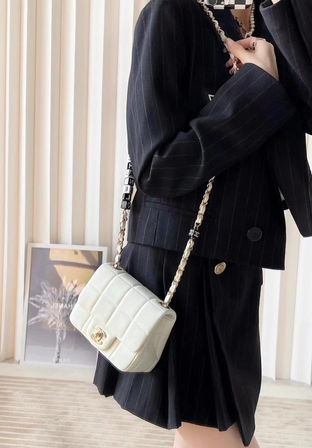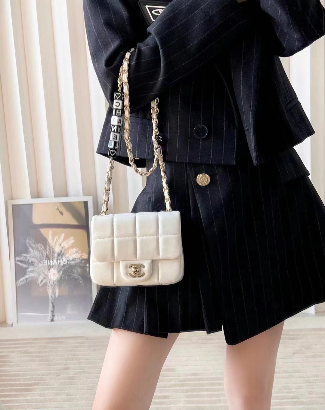 • Chanel Mini Flap Bag Lambskin, Resin & Gold-Tone Metal White