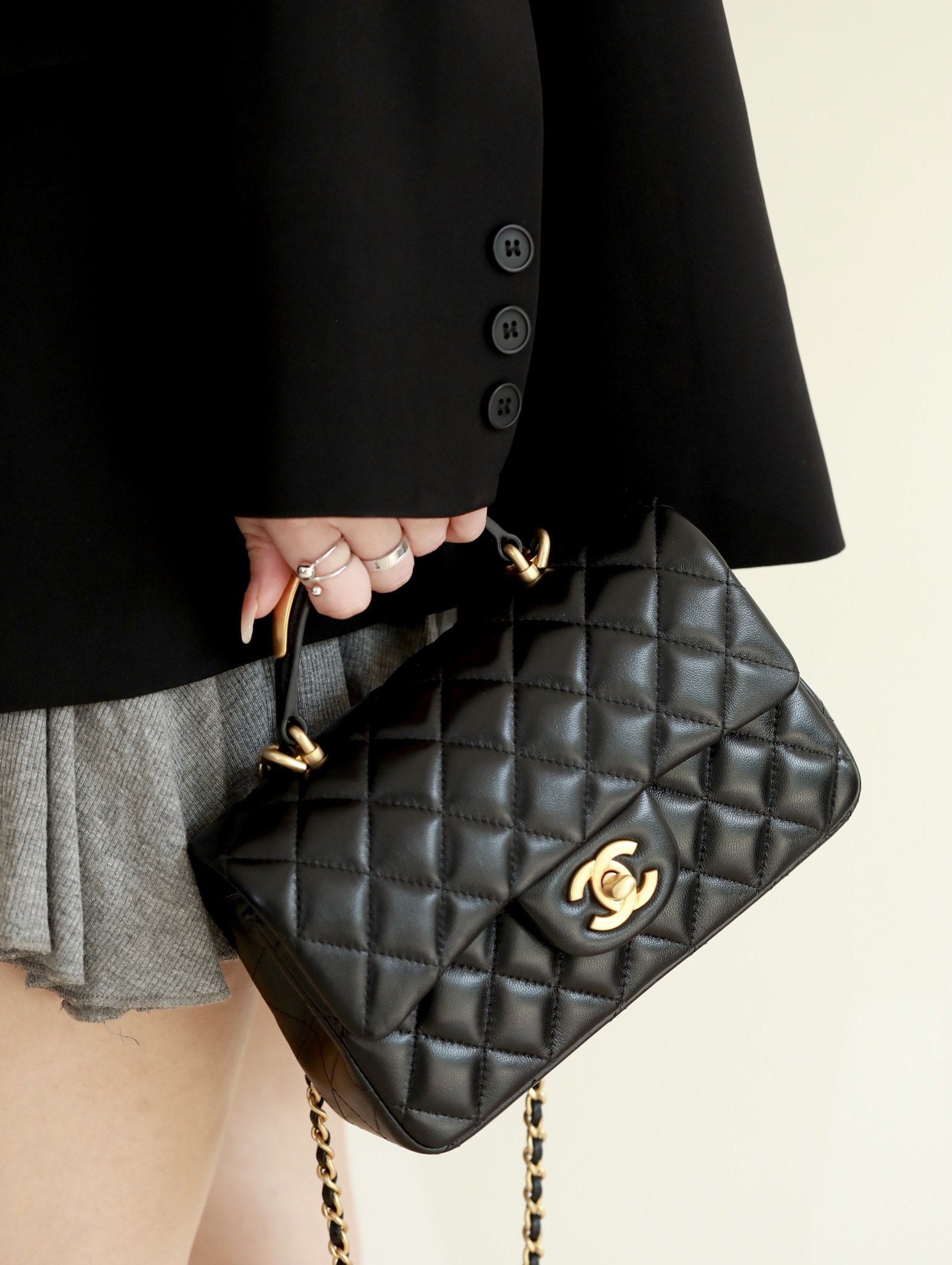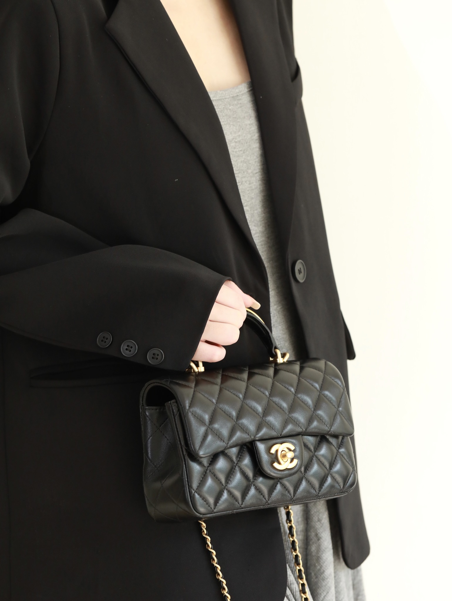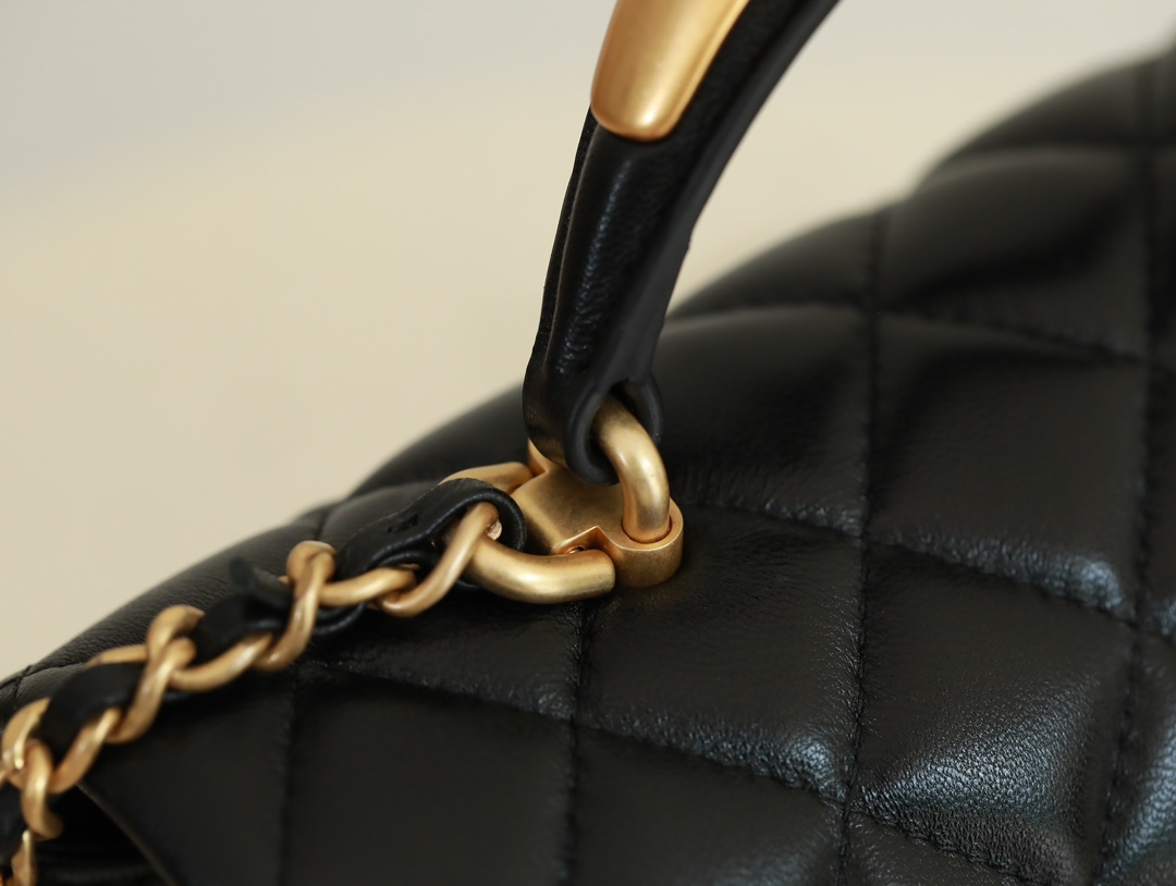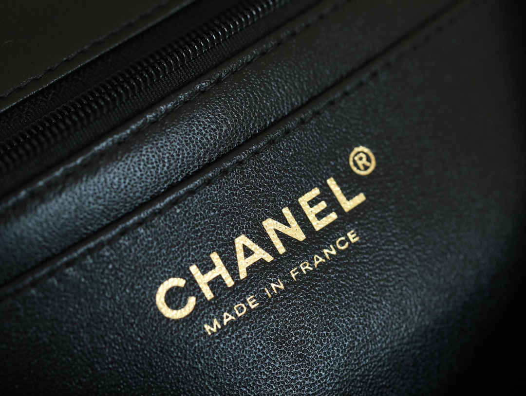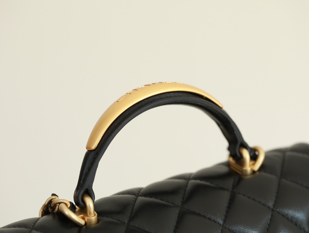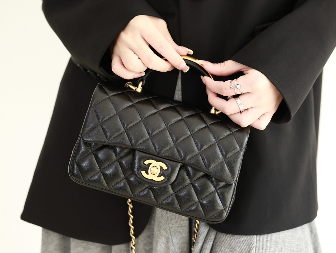 CHANEL Mini Rectangular Flap with Top Handle Black Lambskin Antique Gold Hardware