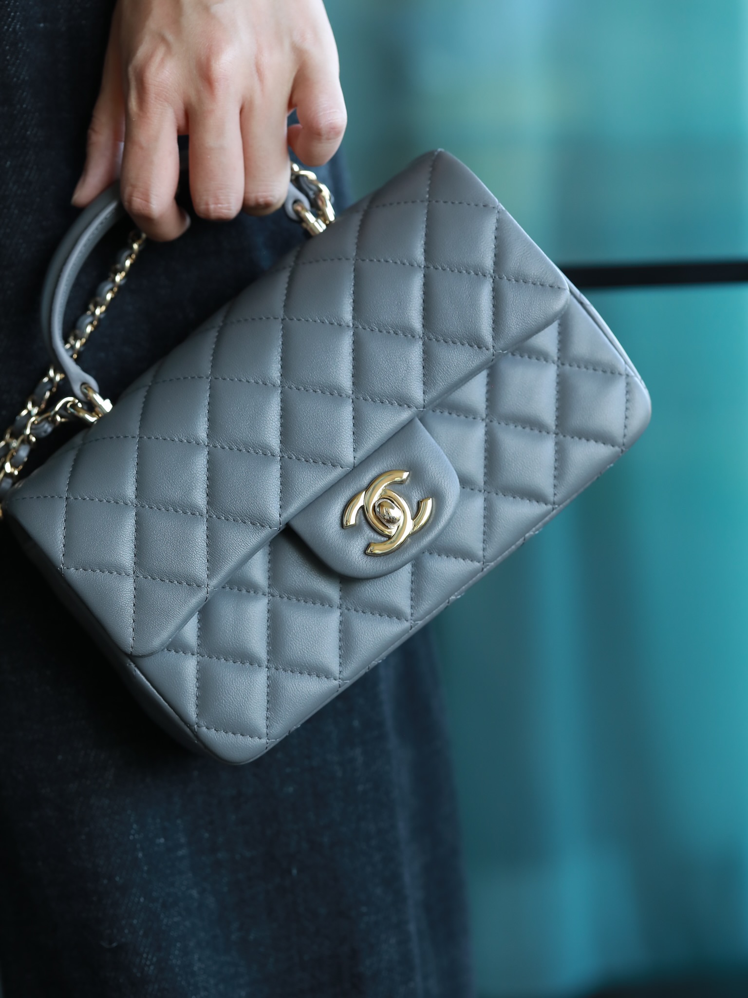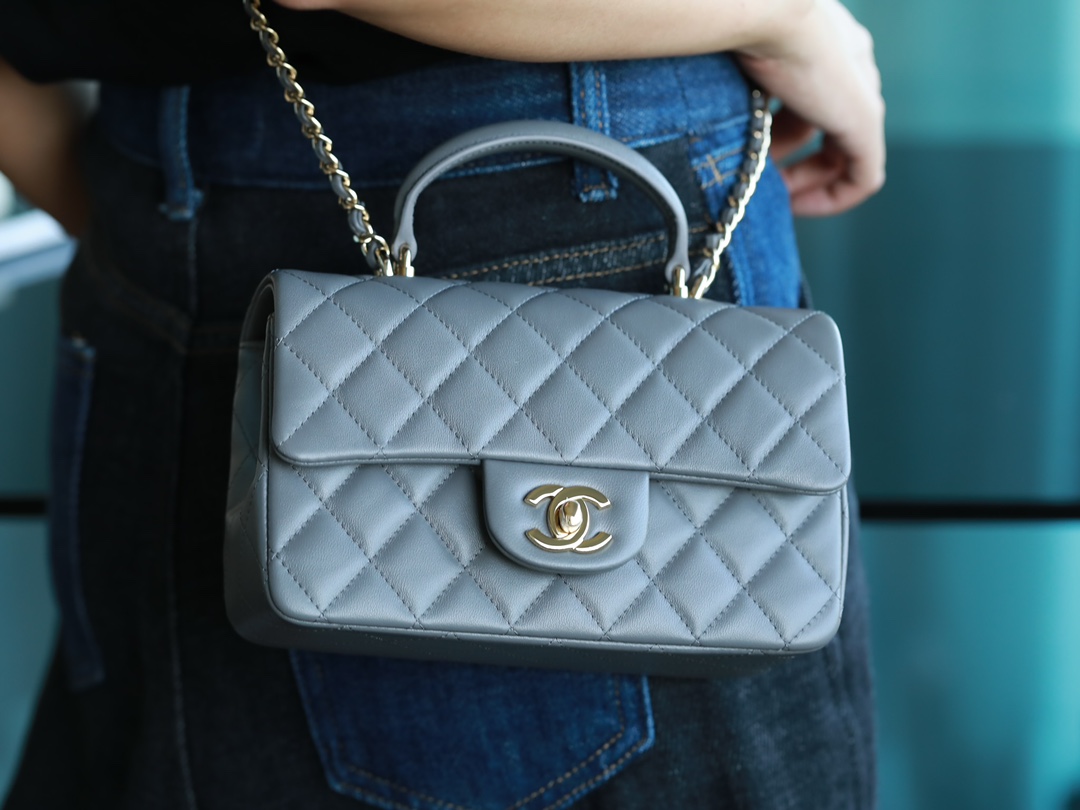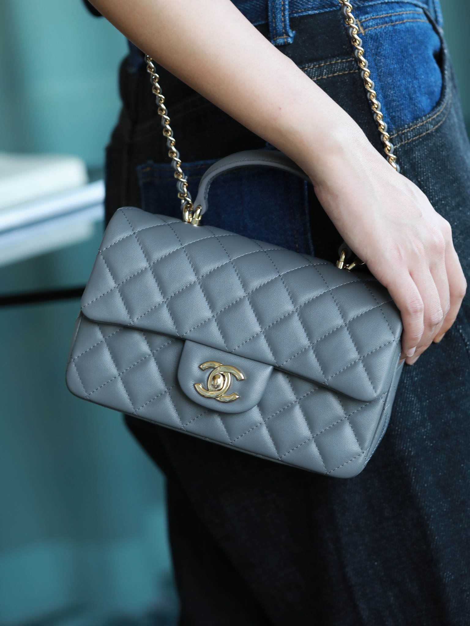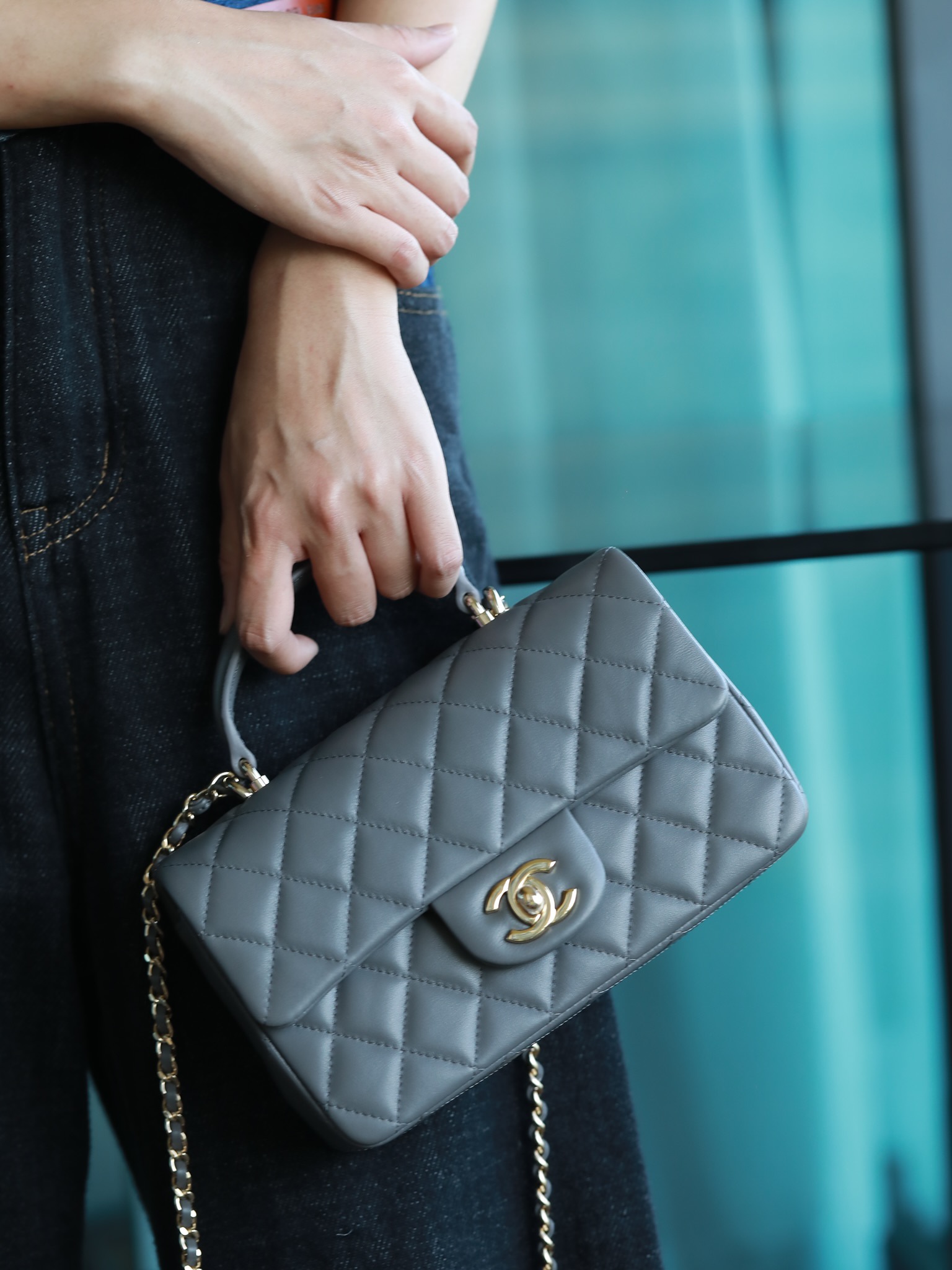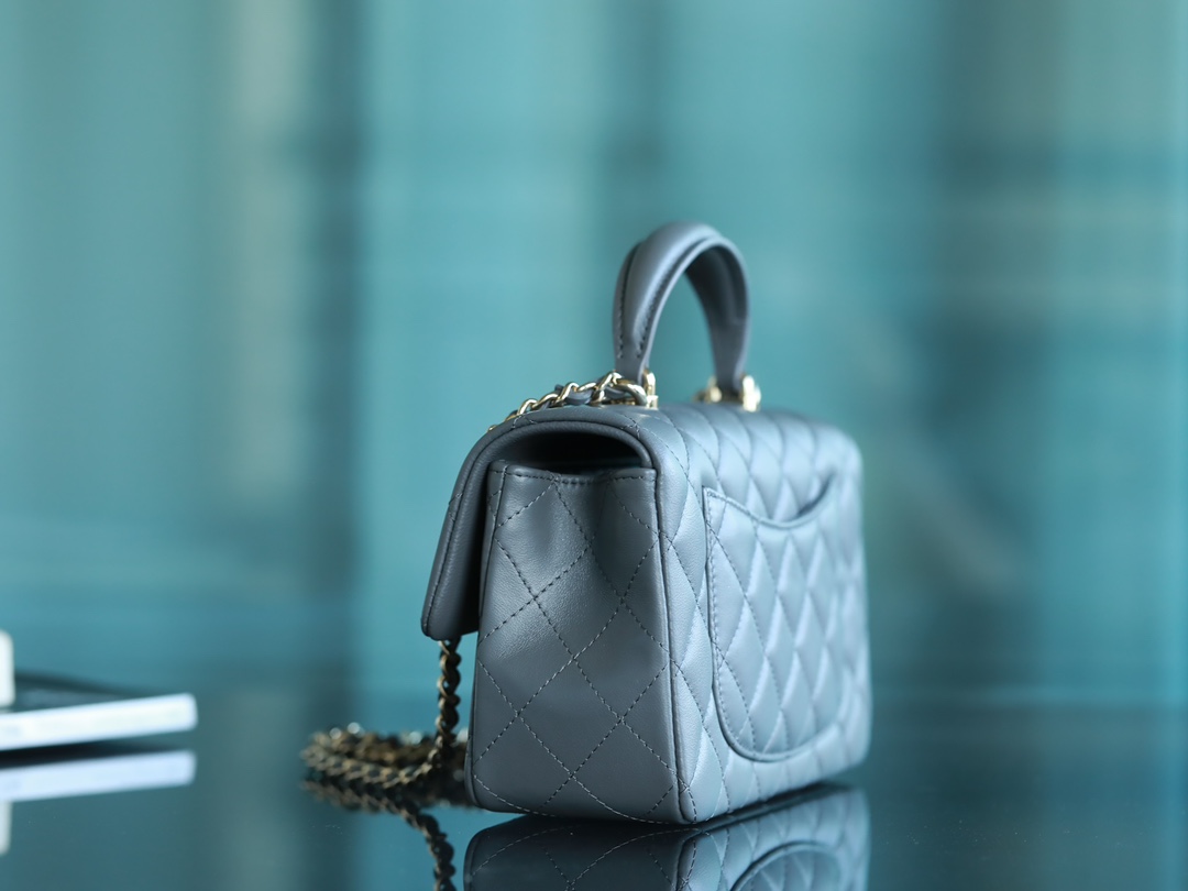 CHANEL Mini Rectangular Flap with Top Handle dark grey Lambskin Antique Gold Hardware