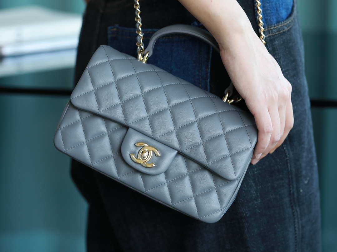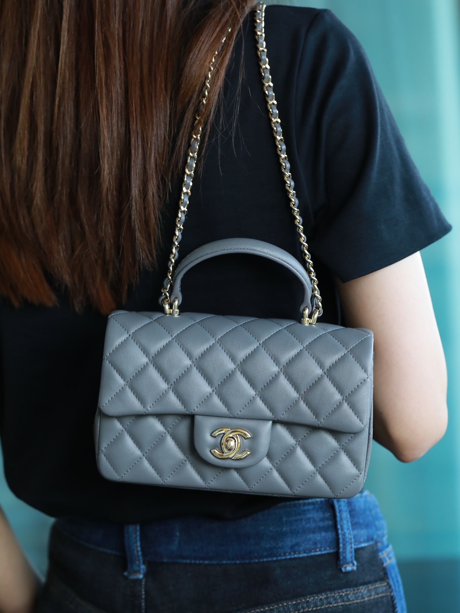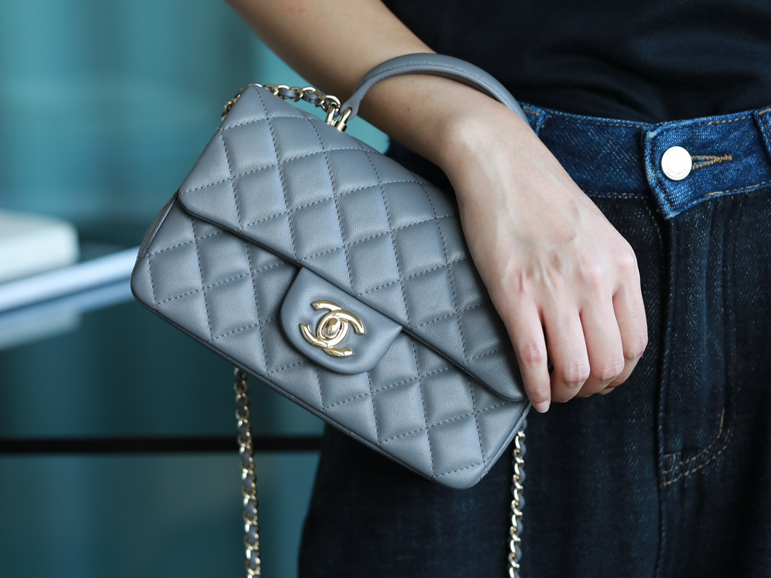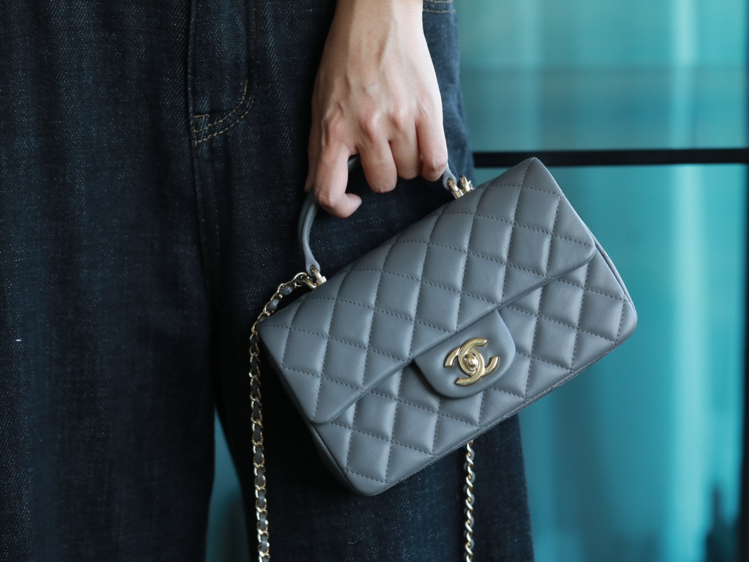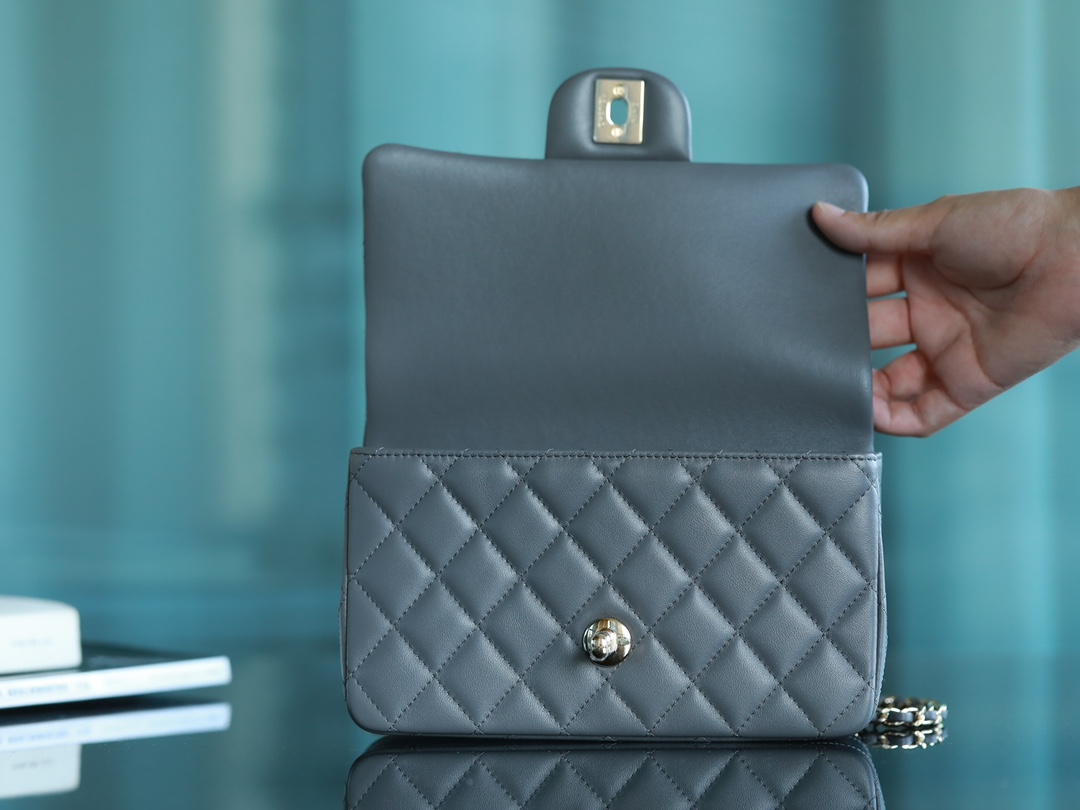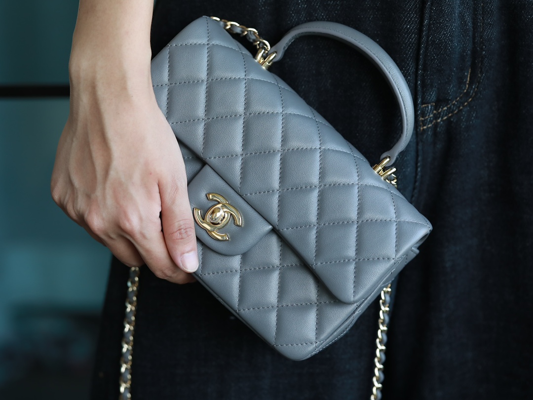 CHANEL Mini Rectangular Flap with Top Handle dark grey Lambskin Antique Gold Hardware