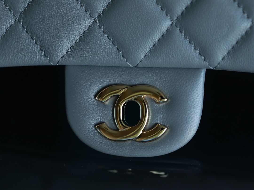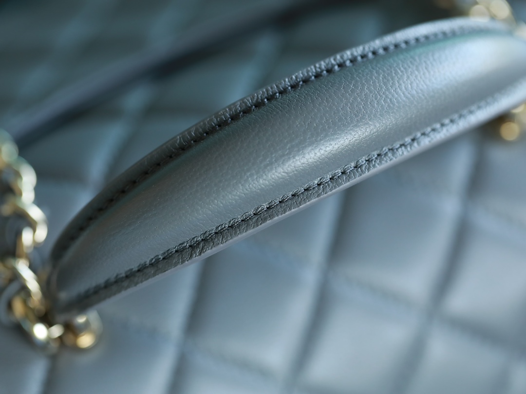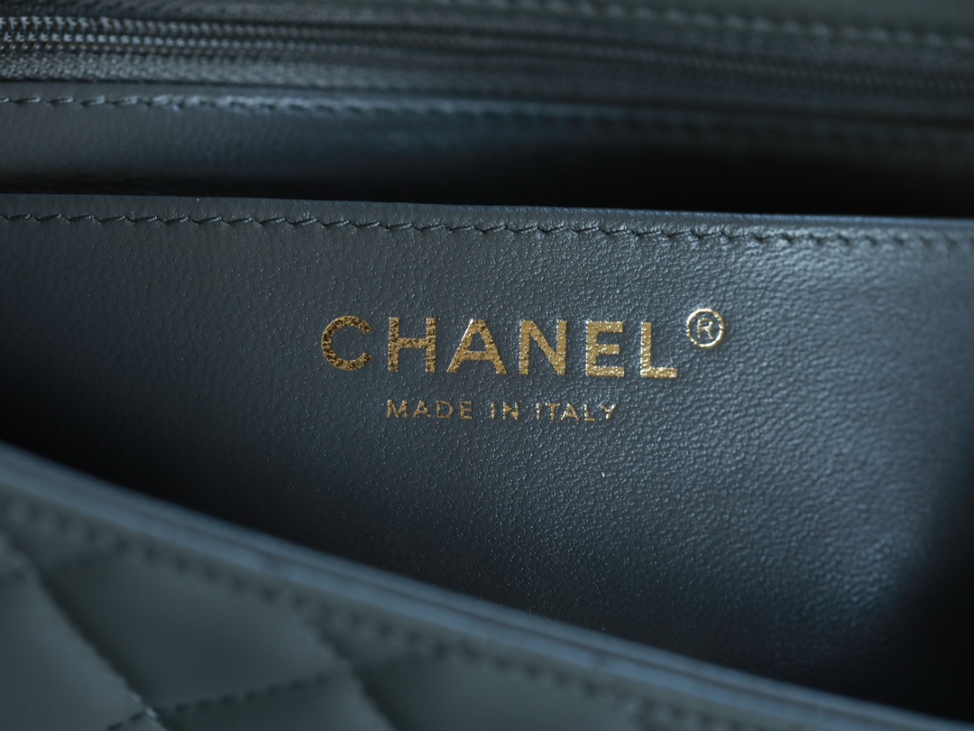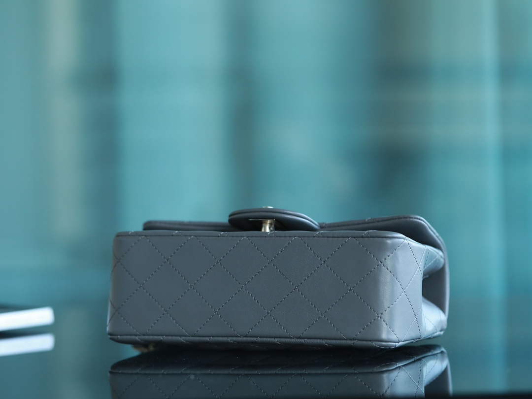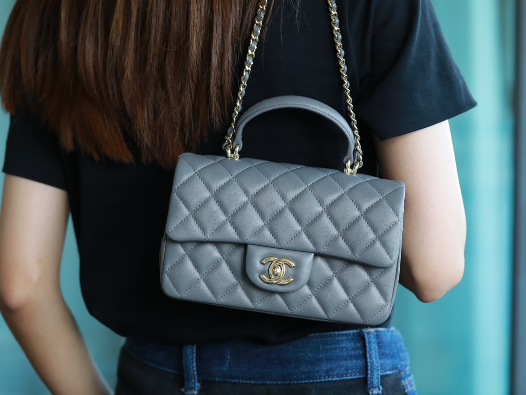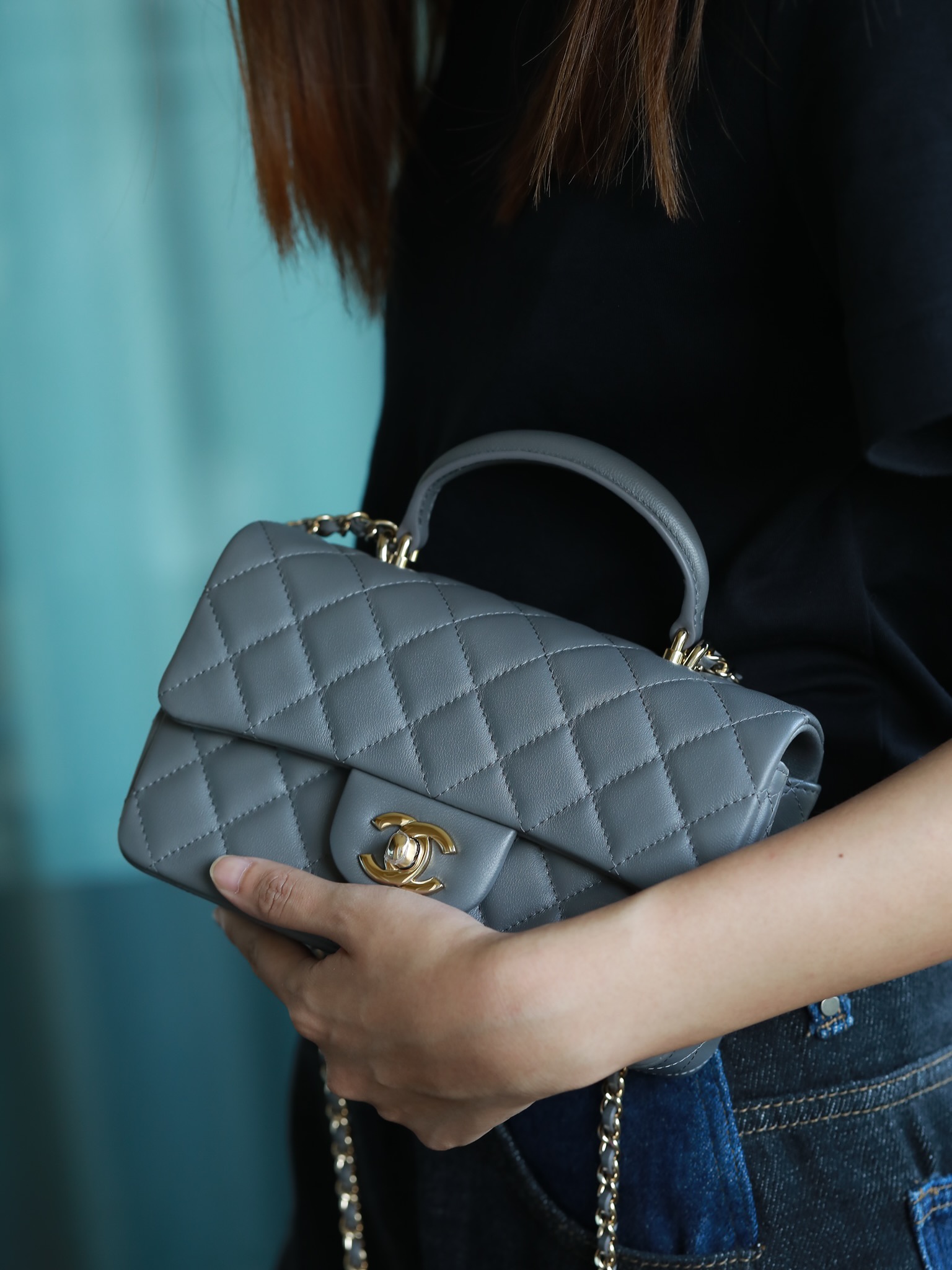 CHANEL Mini Rectangular Flap with Top Handle dark grey Lambskin Antique Gold Hardware