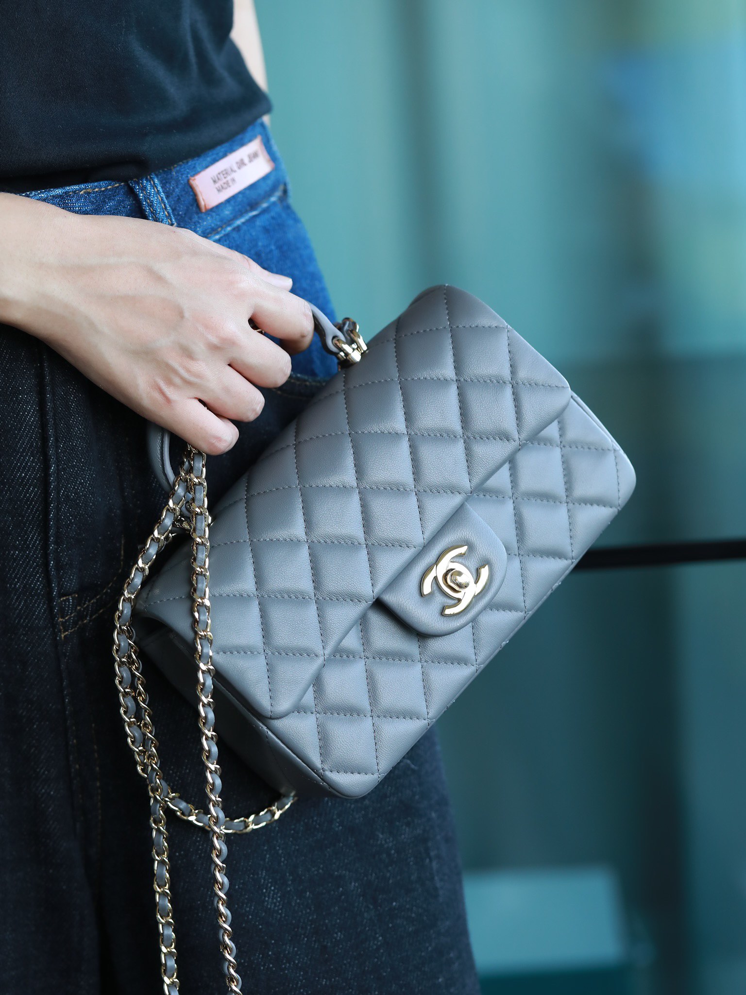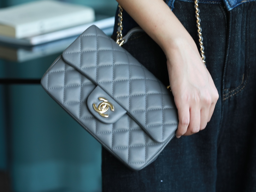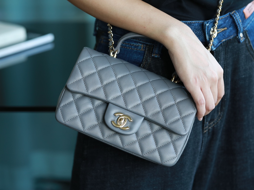 • CHANEL Mini Rectangular Flap with Top Handle dark grey Lambskin Antique Gold Hardware