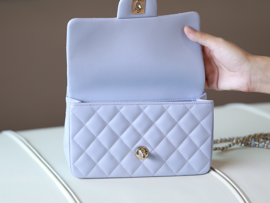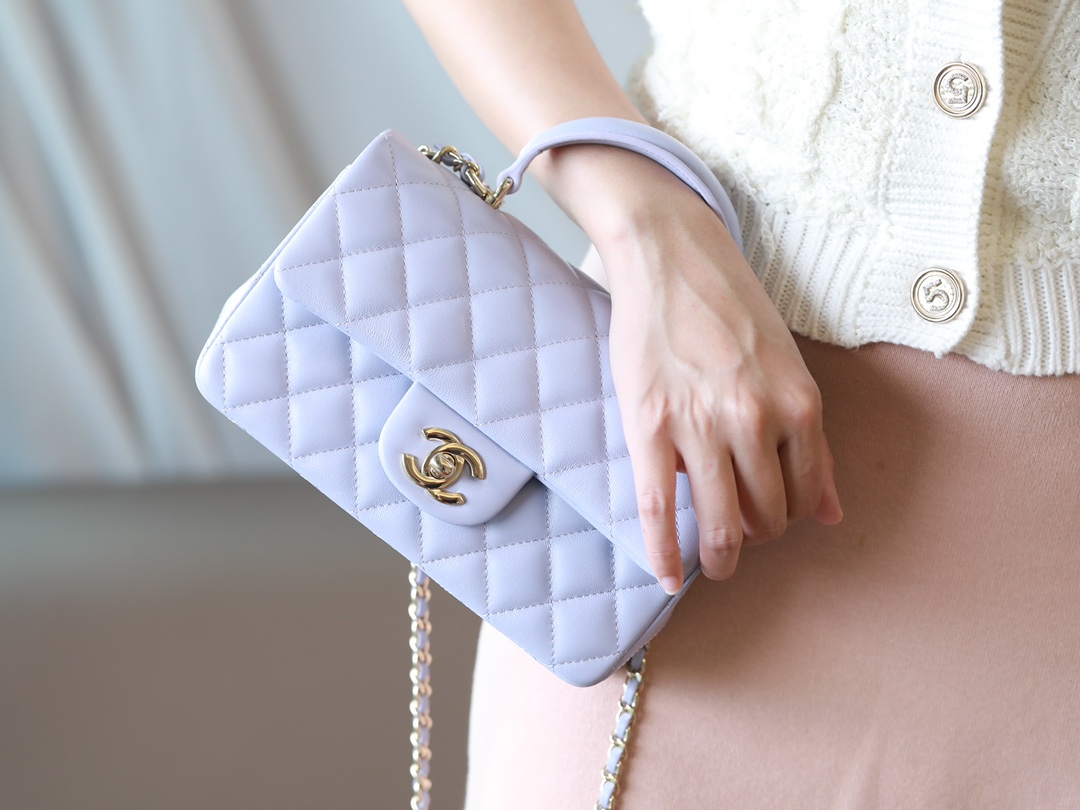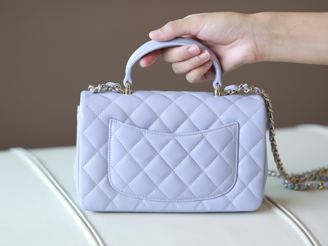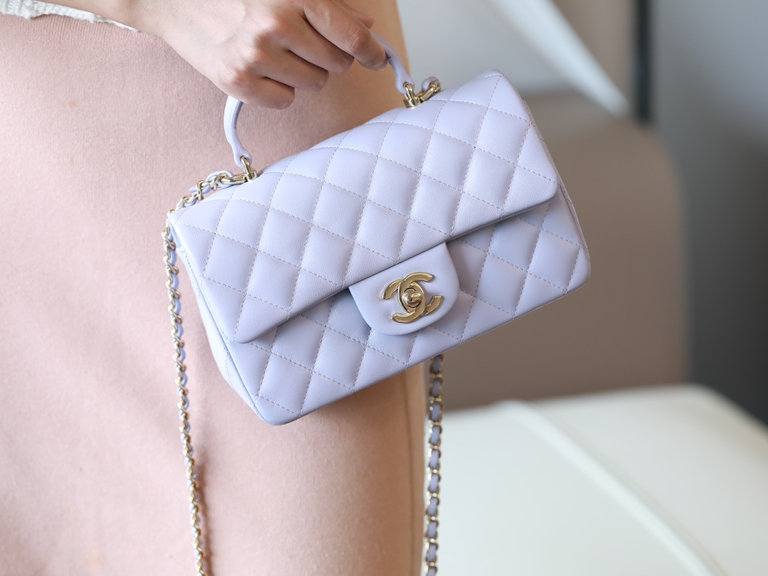 CHANEL Mini Rectangular Flap with Top Handle lavender purple Lambskin Antique Gold Hardware