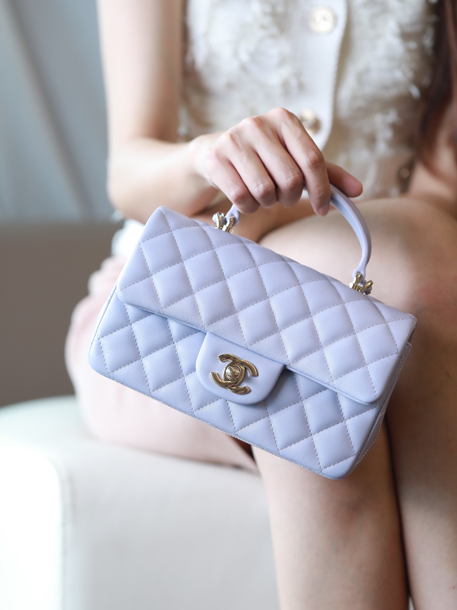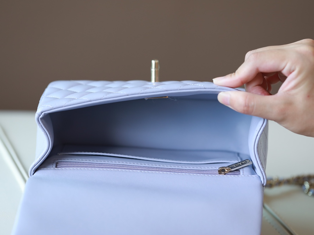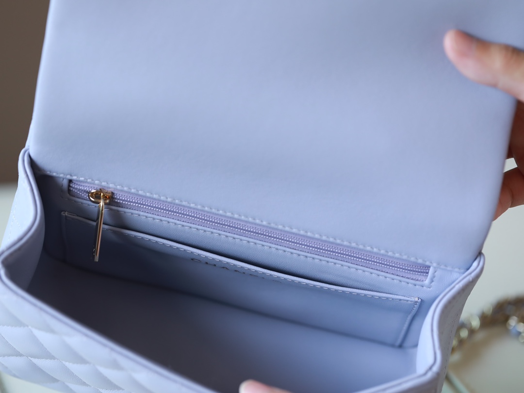 CHANEL Mini Rectangular Flap with Top Handle lavender purple Lambskin Antique Gold Hardware