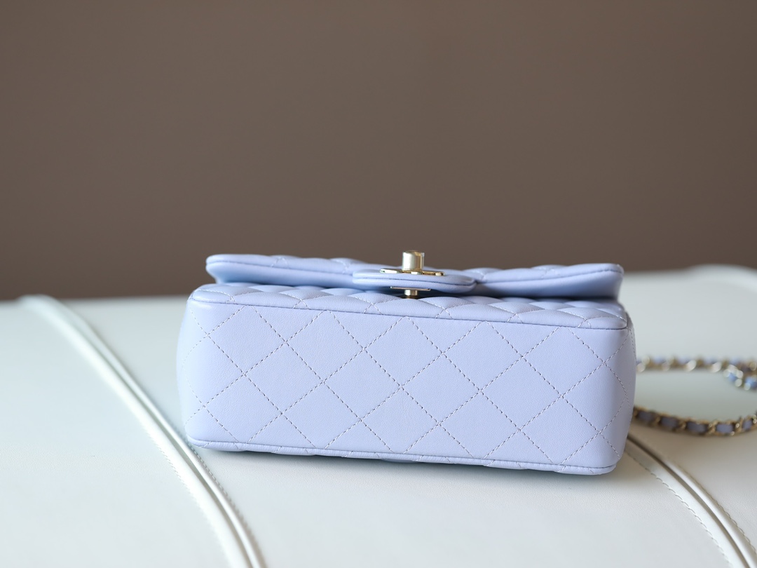 • CHANEL Mini Rectangular Flap with Top Handle lavender purple Lambskin Antique Gold Hardware