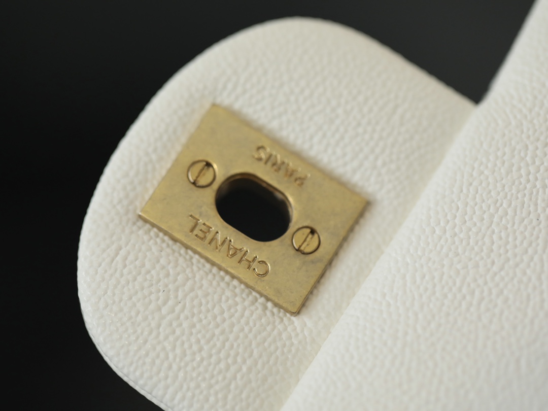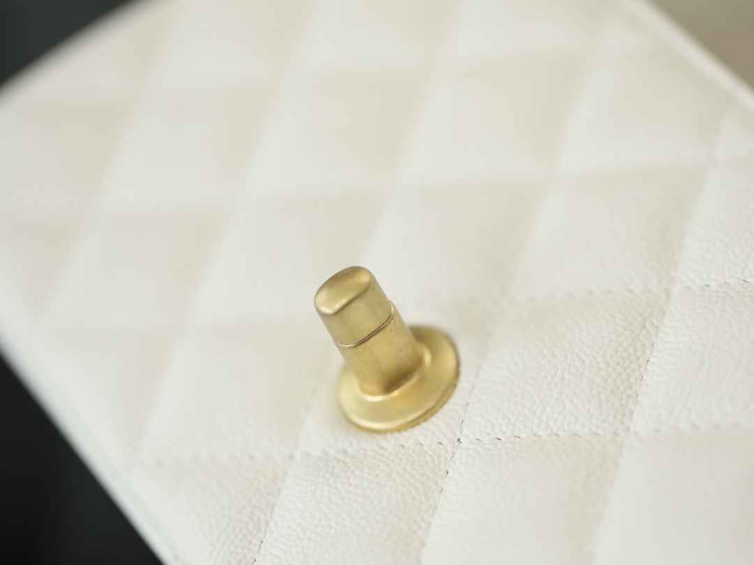 CHANEL Mini Rectangular Flap with Top Handle White caviar Antique Gold Hardware