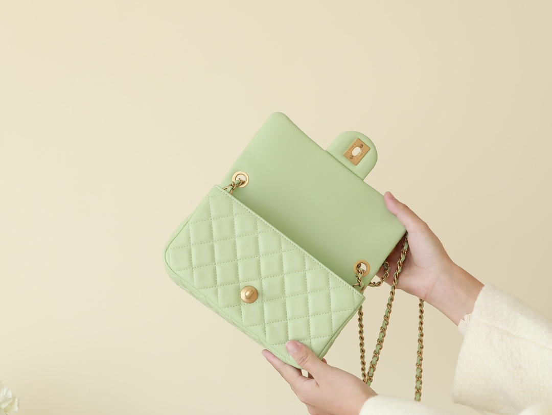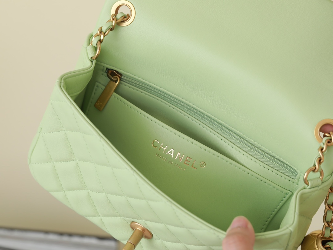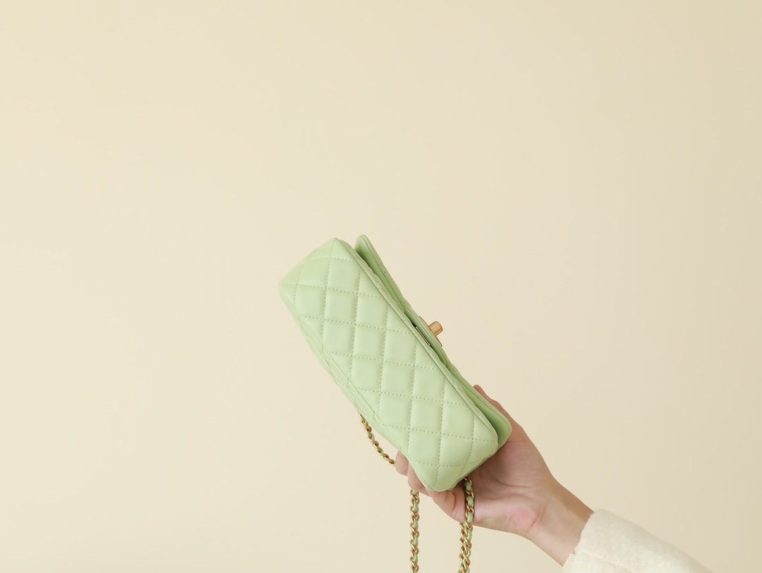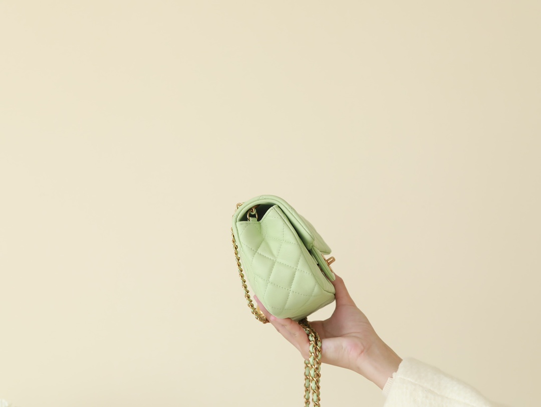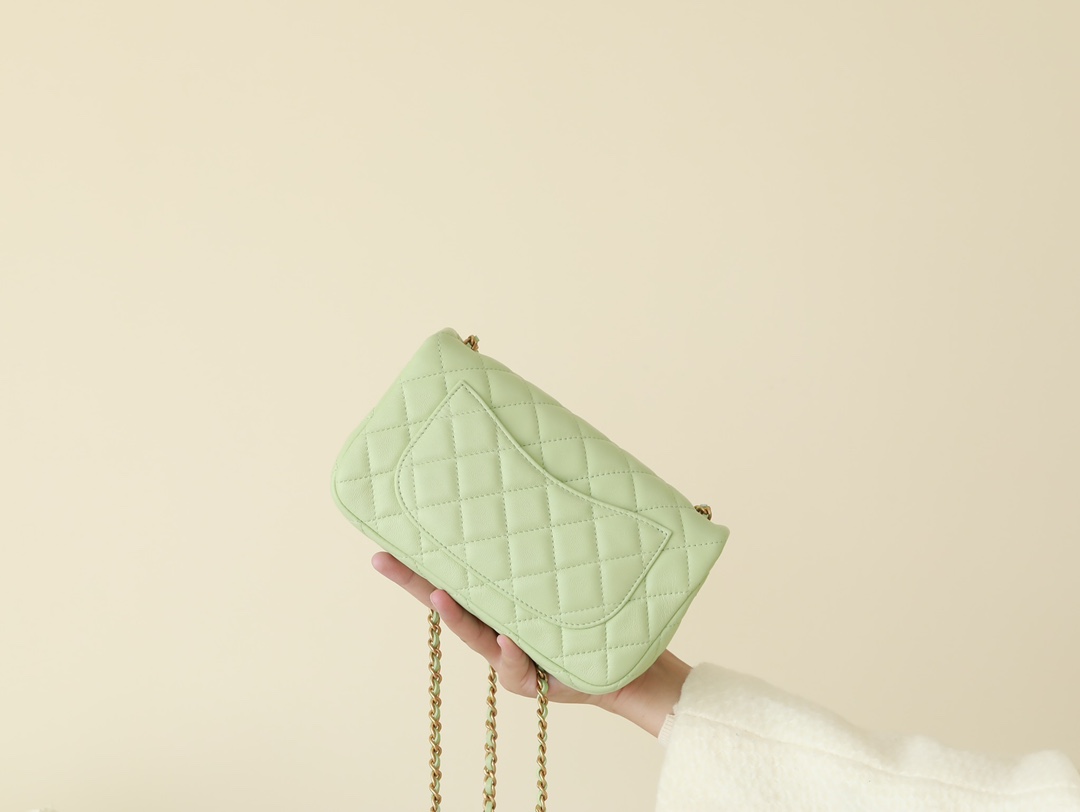 CHANEL Mini Rectangular Pearl Crush Quilted apple green Lambskin Lambskin Gold Hardware