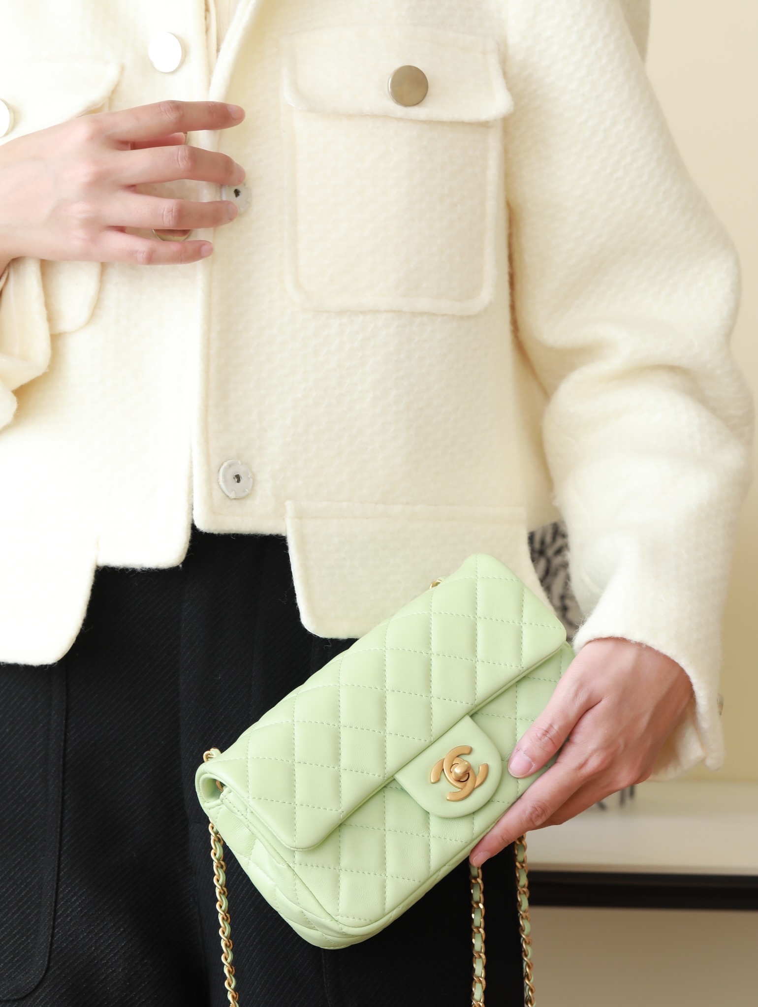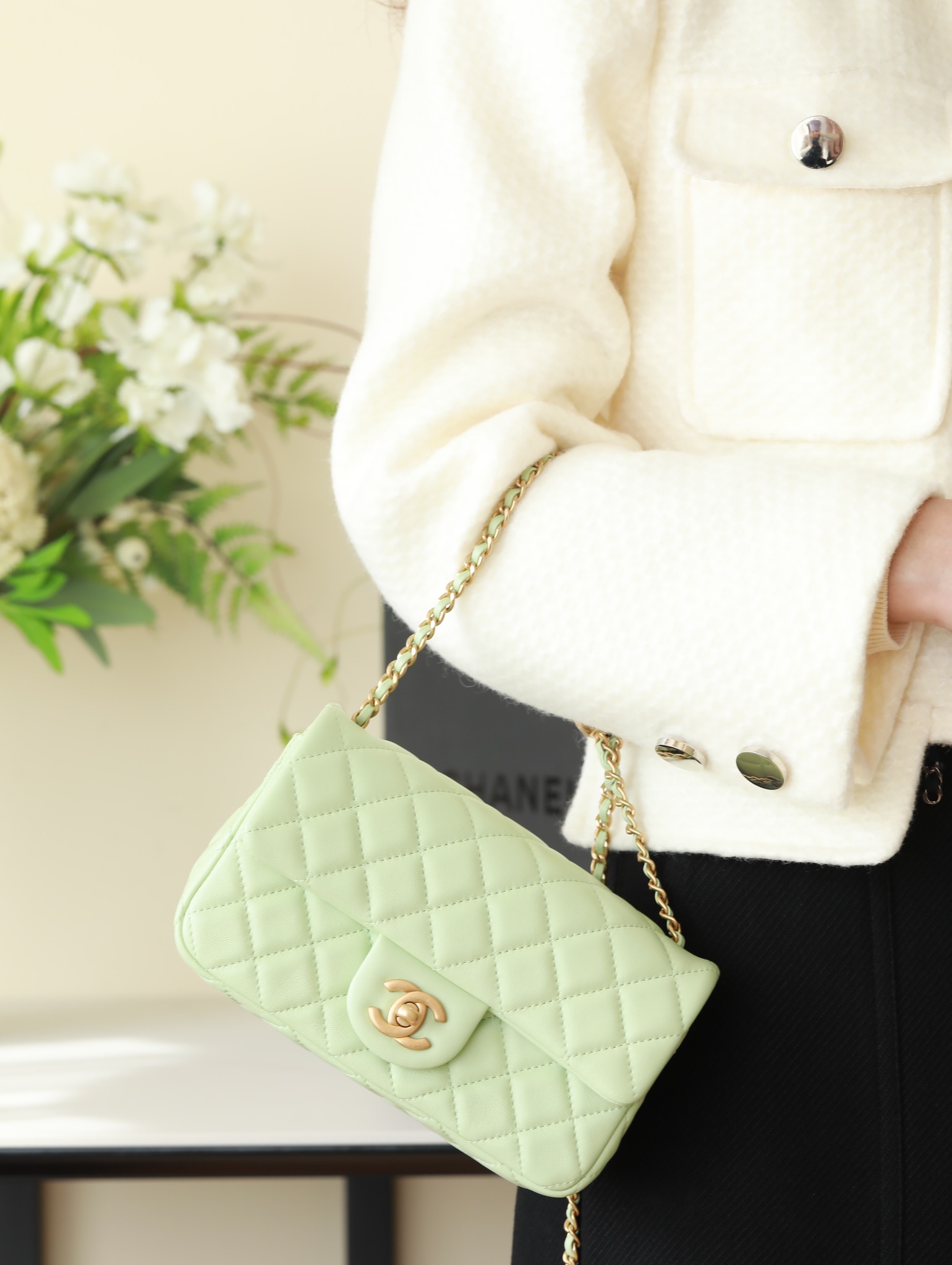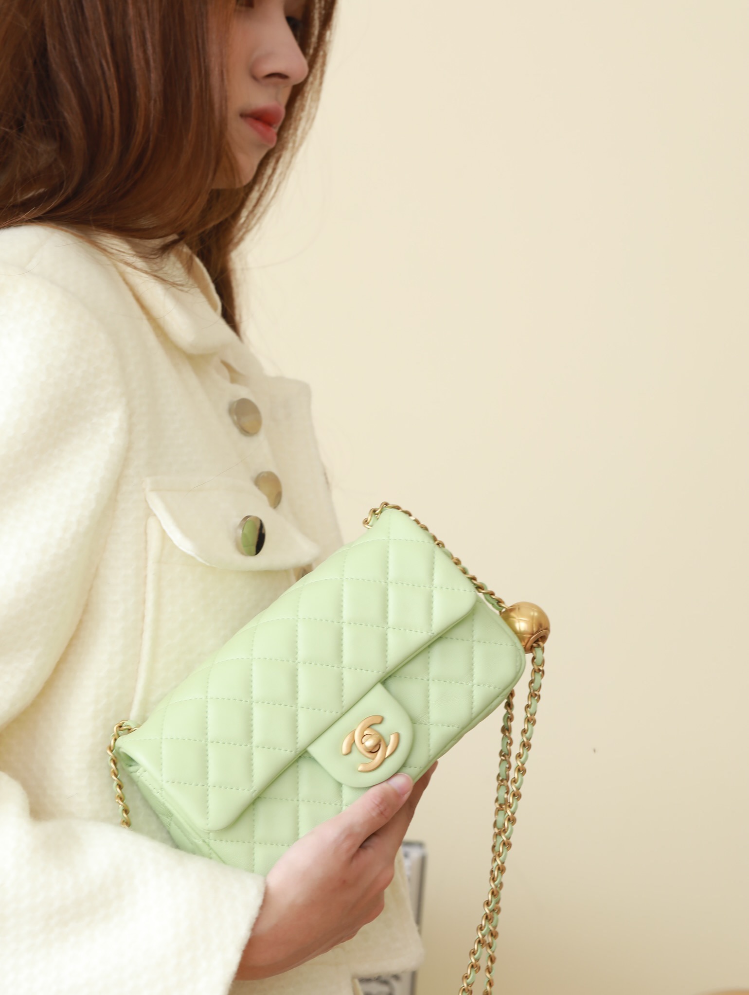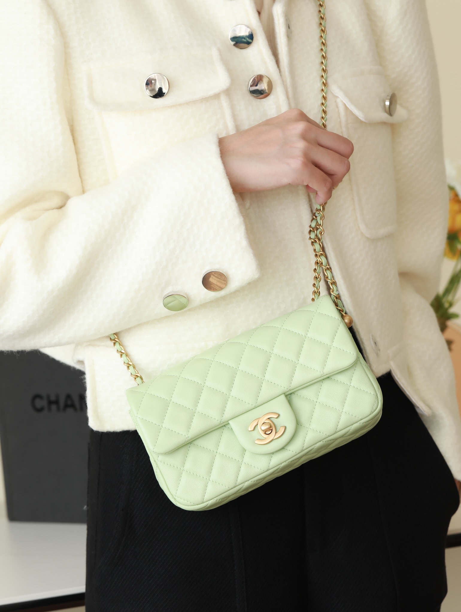 CHANEL Mini Rectangular Pearl Crush Quilted apple green Lambskin Lambskin Gold Hardware
