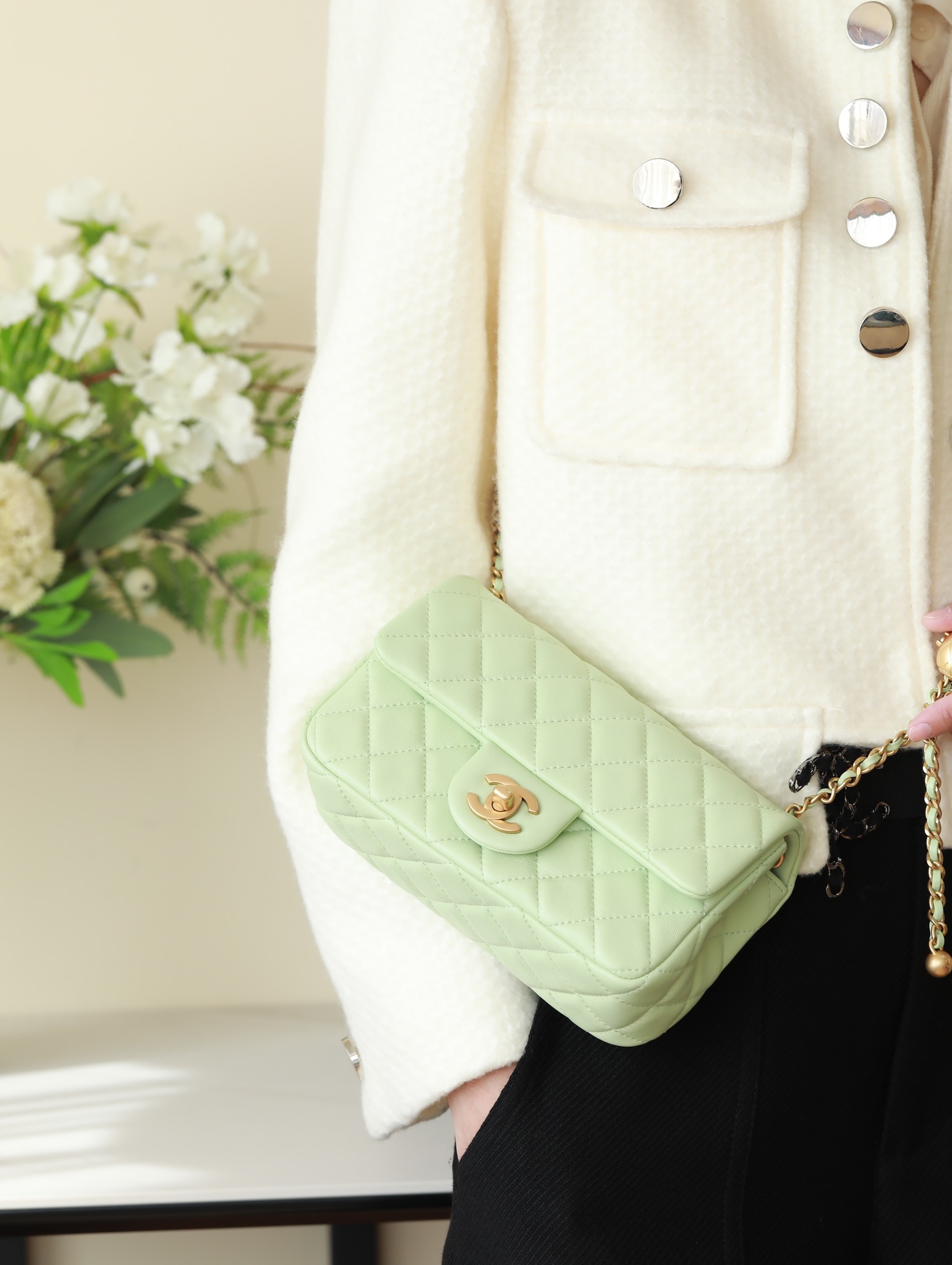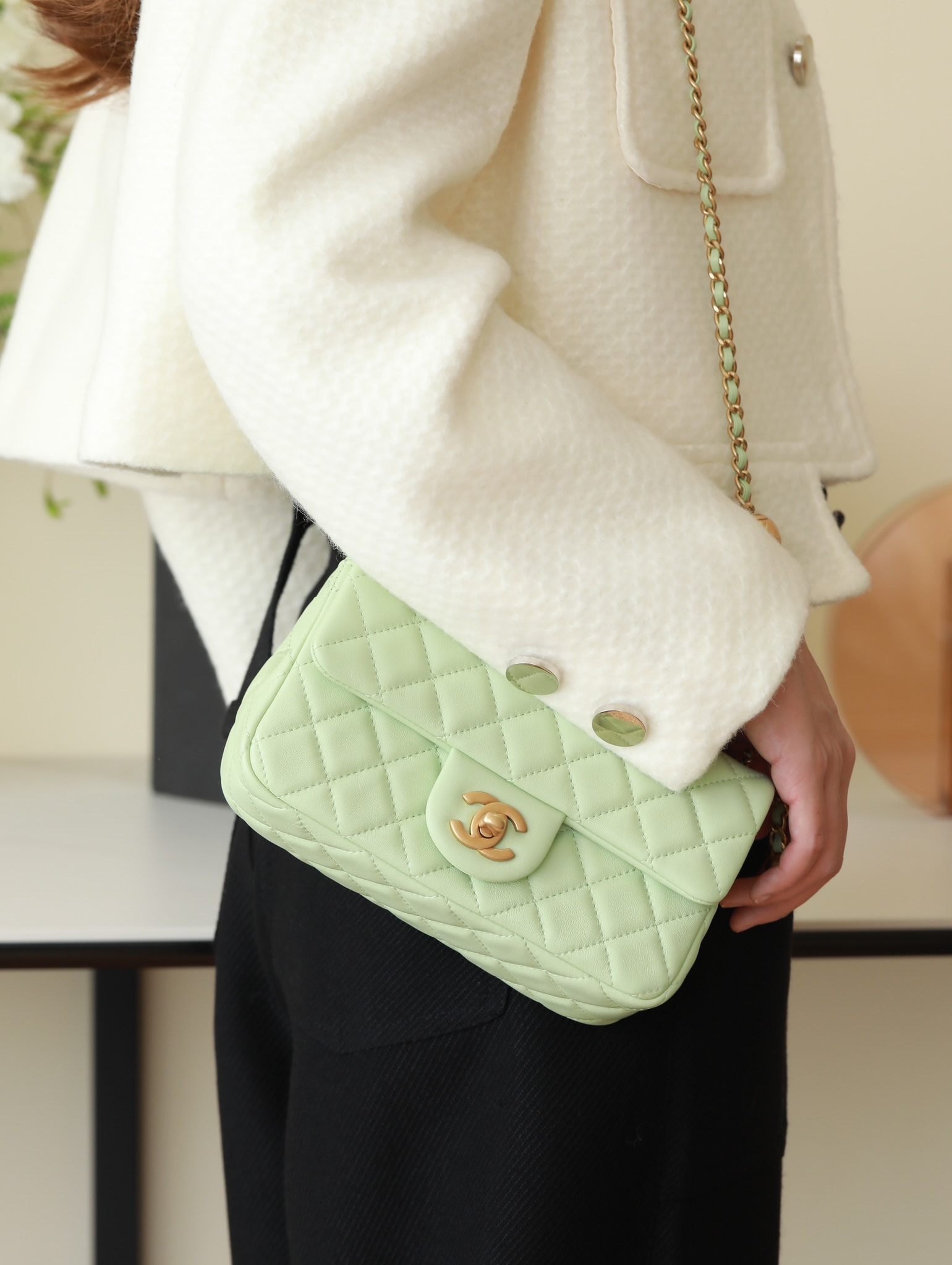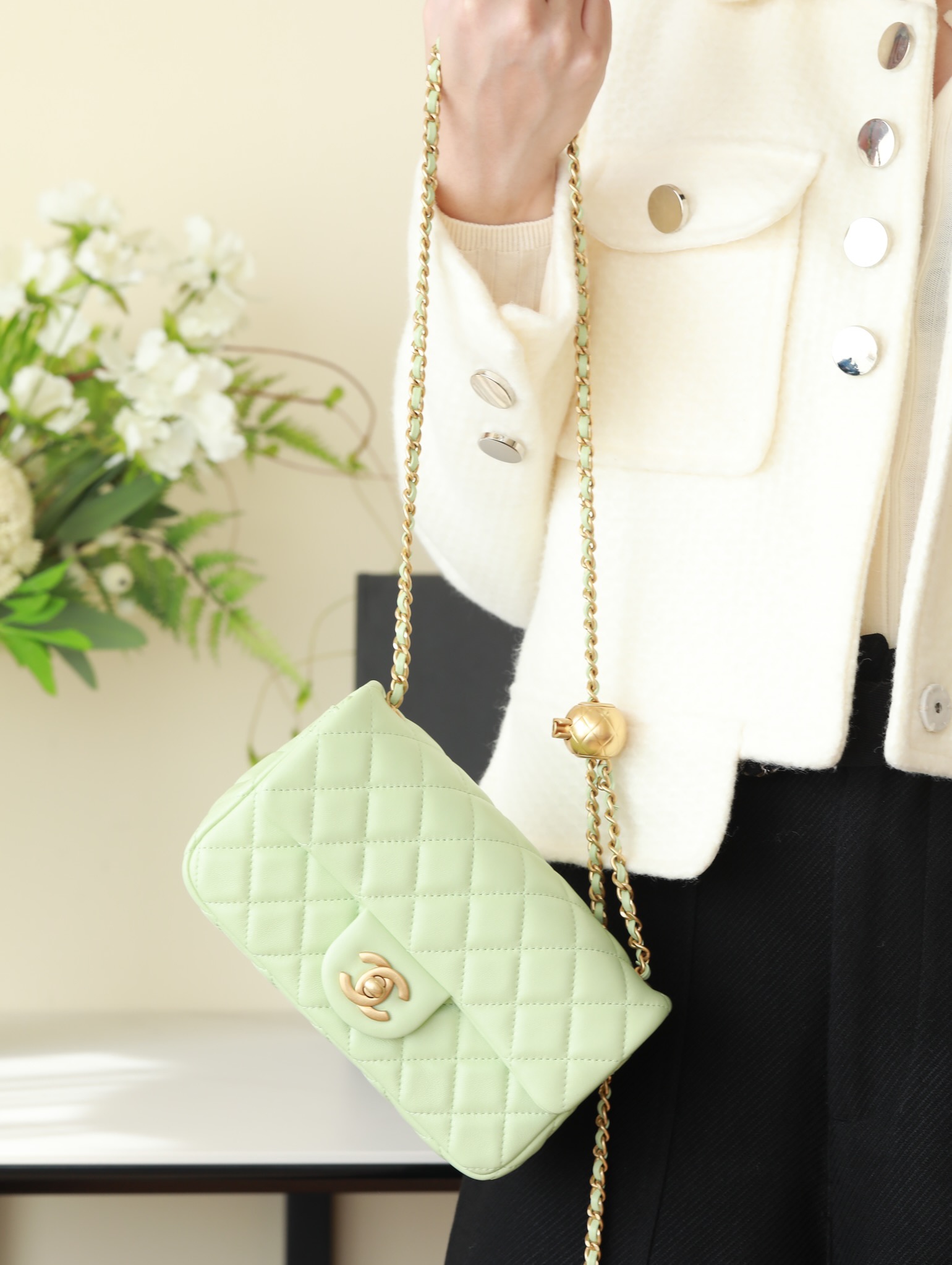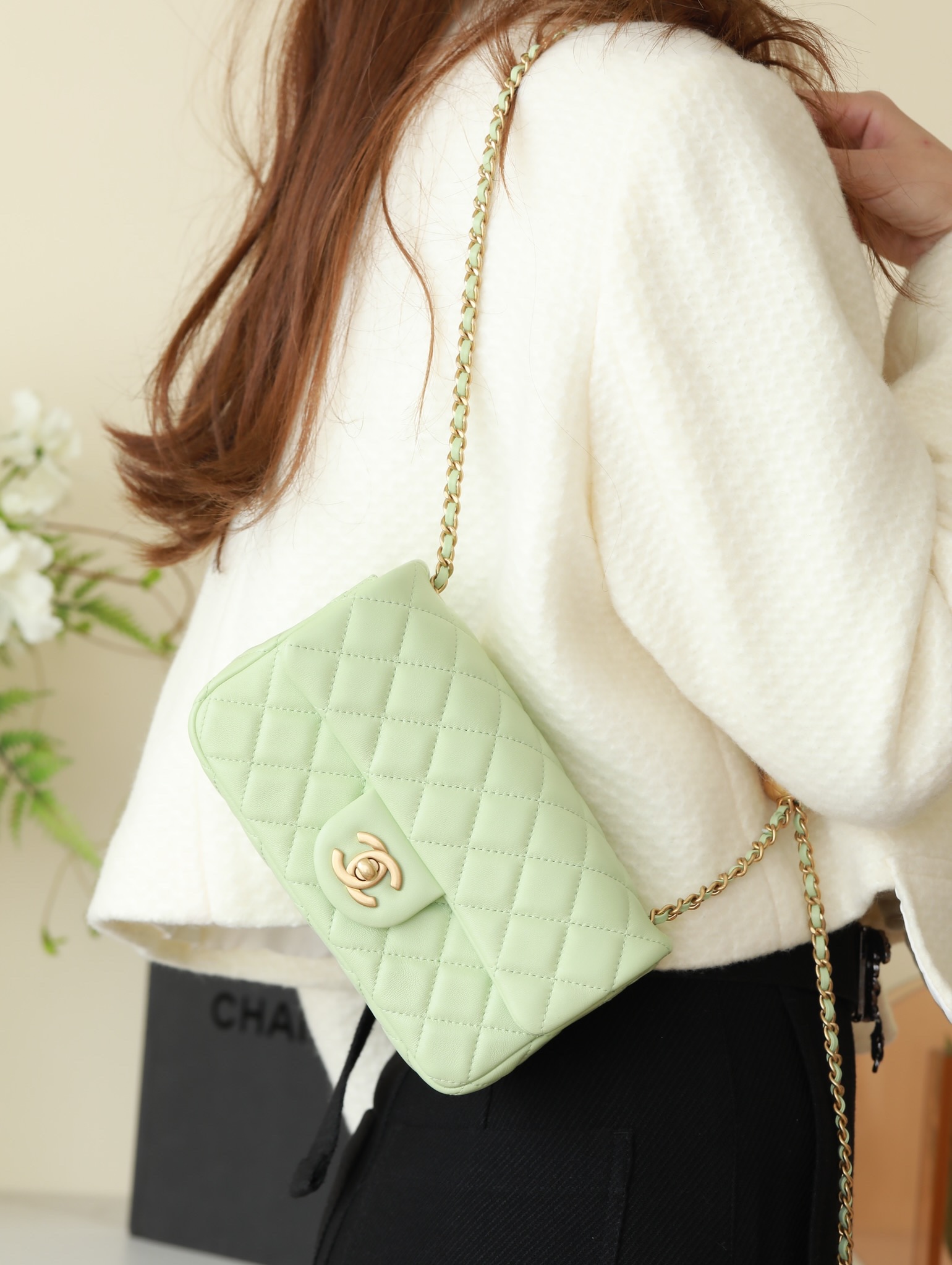 CHANEL Mini Rectangular Pearl Crush Quilted apple green Lambskin Lambskin Gold Hardware