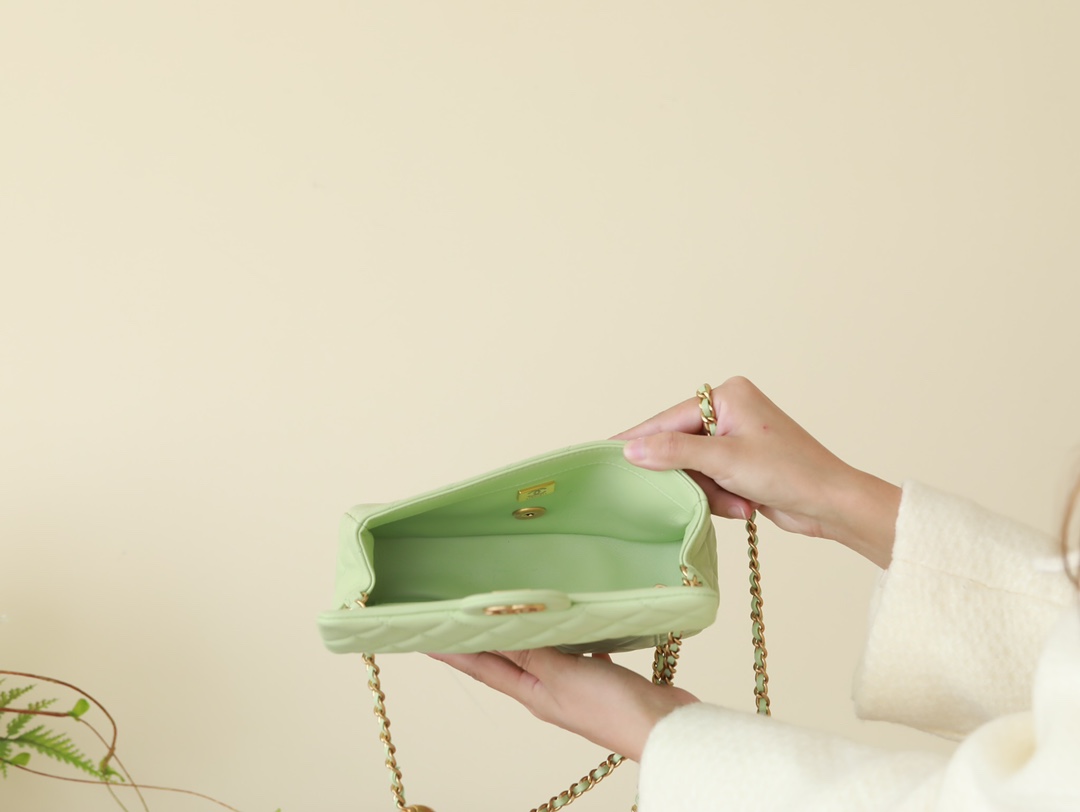 • CHANEL Mini Rectangular Pearl Crush Quilted apple green Lambskin Lambskin Gold Hardware