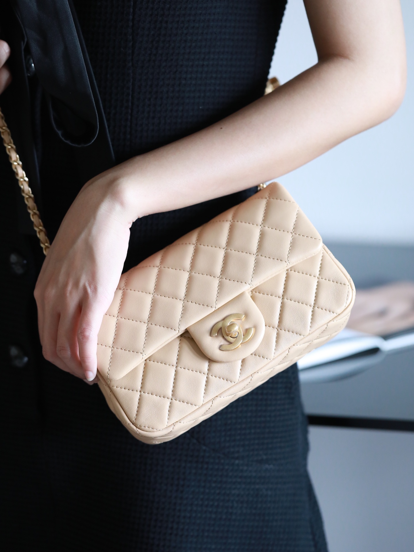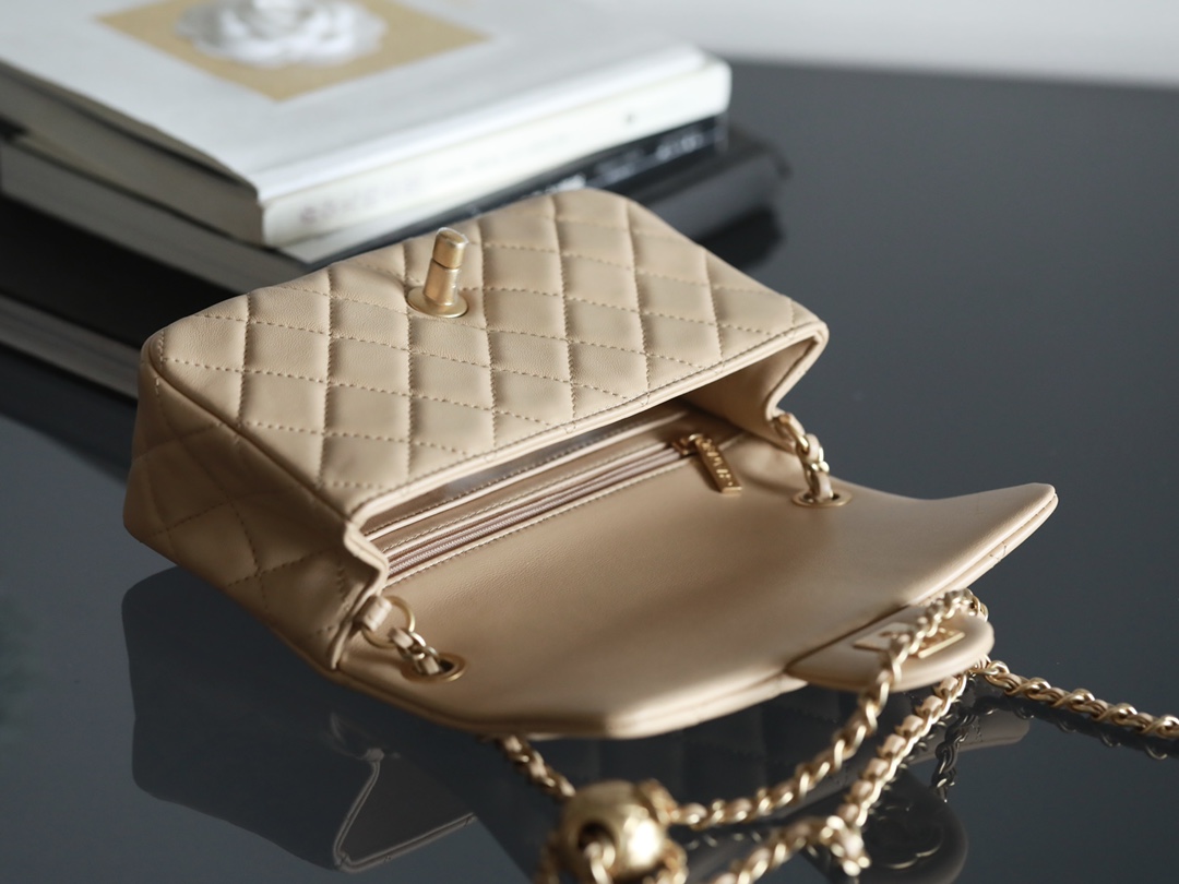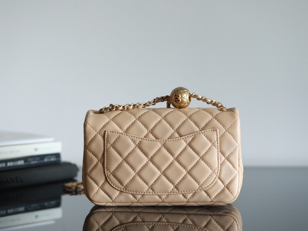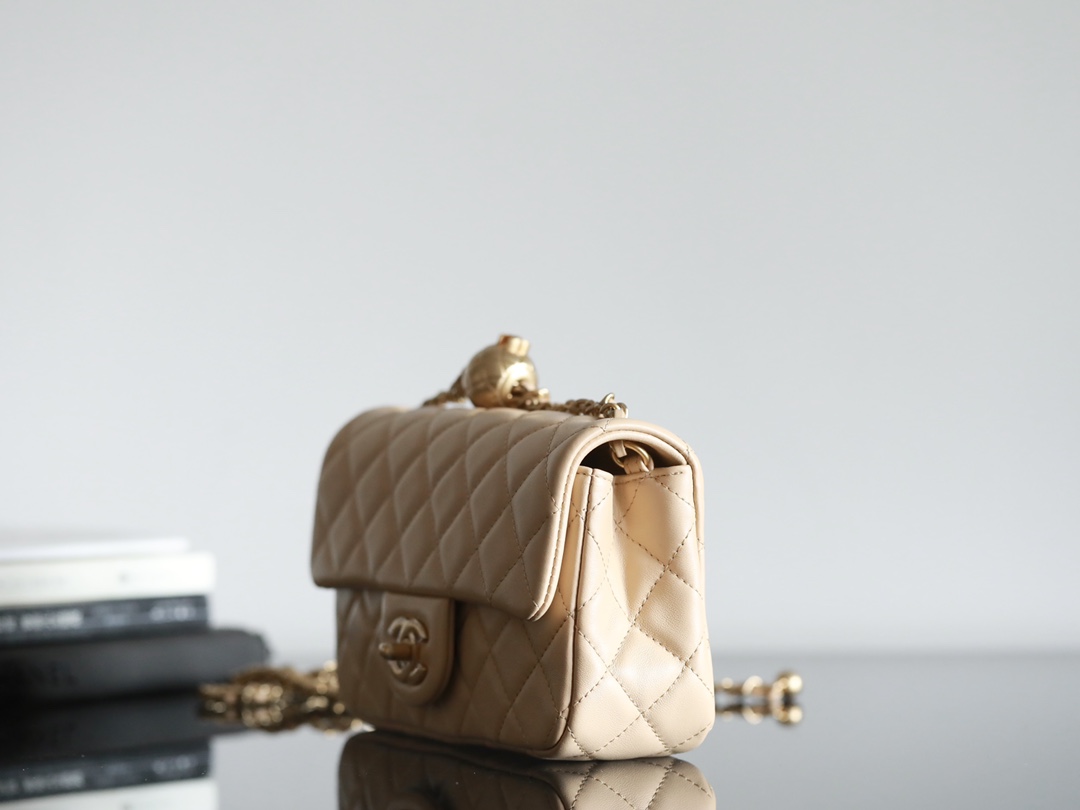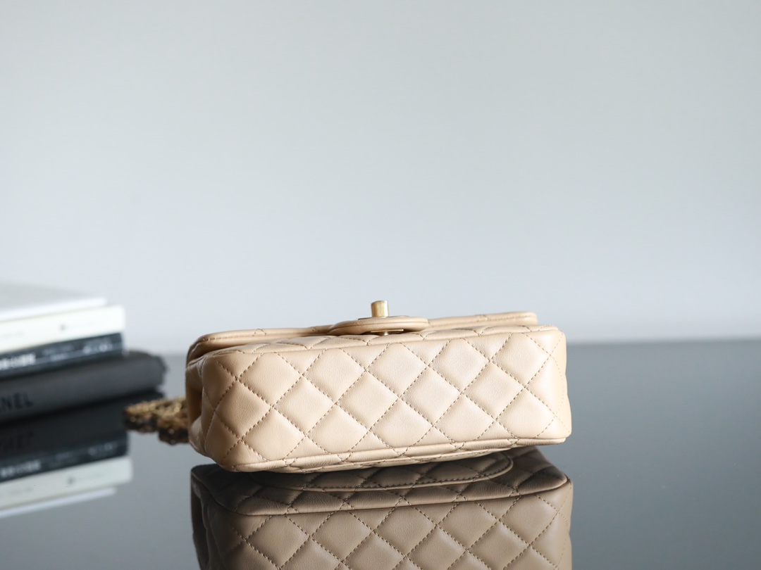 CHANEL Mini Rectangular Pearl Crush Quilted milk tea color Lambskin Lambskin Gold Hardware