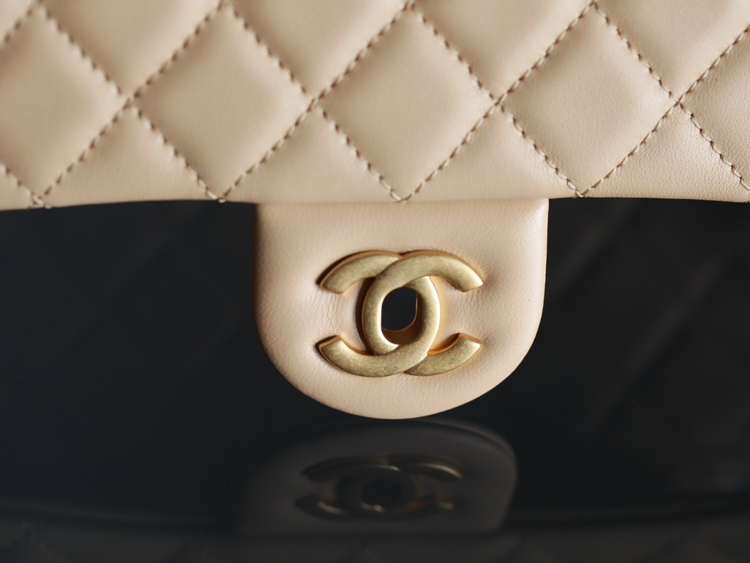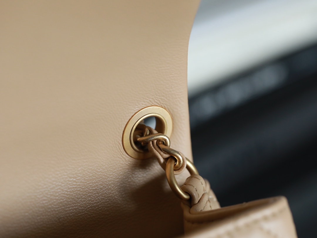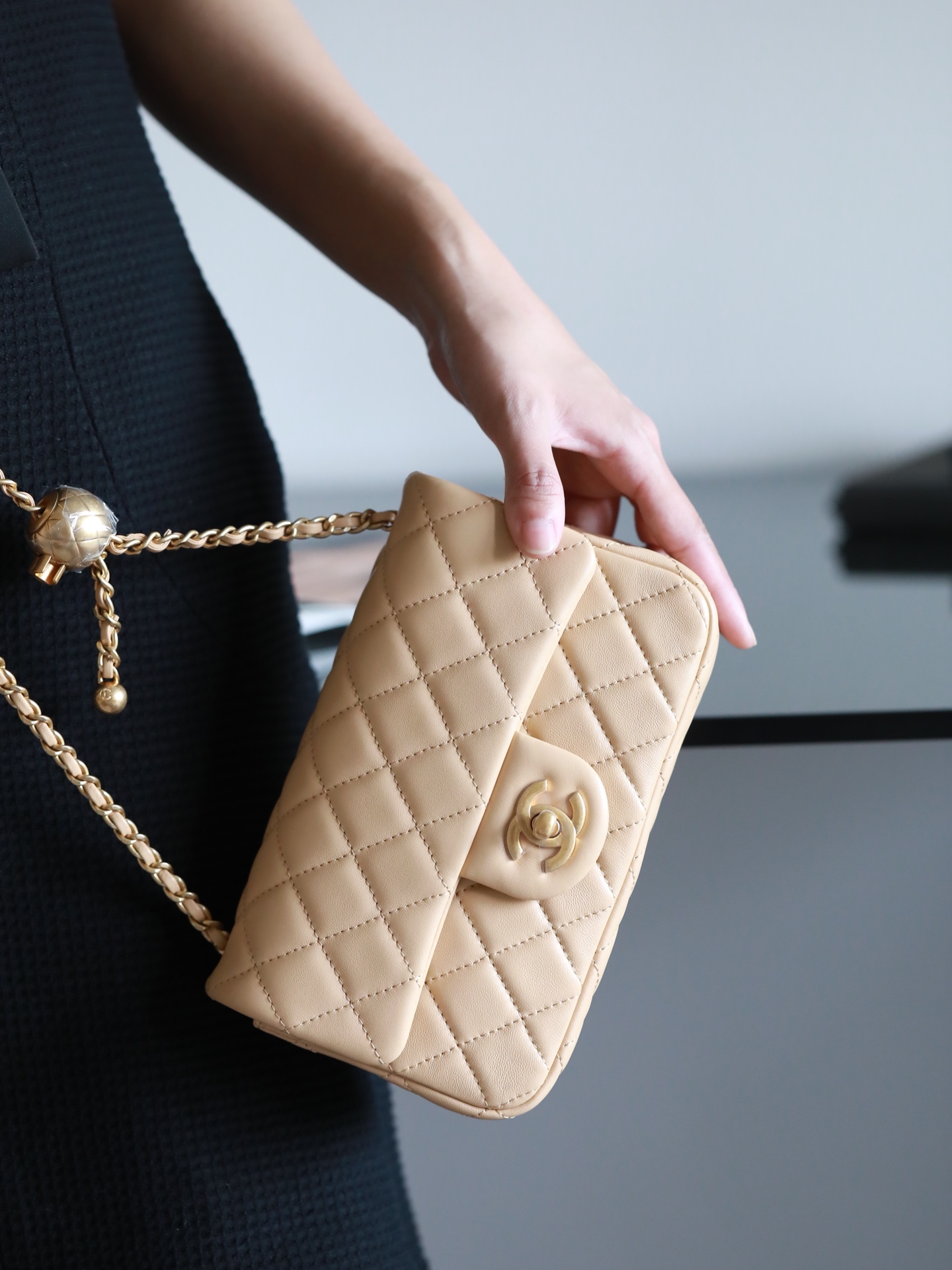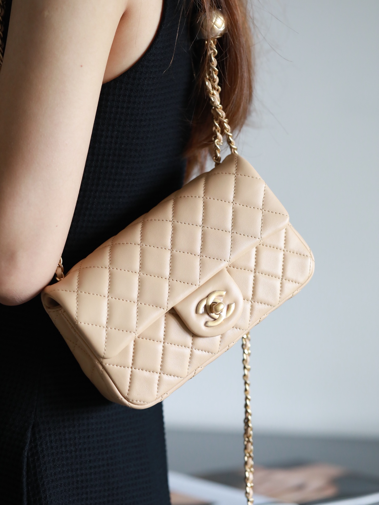CHANEL Mini Rectangular Pearl Crush Quilted milk tea color Lambskin Lambskin Gold Hardware