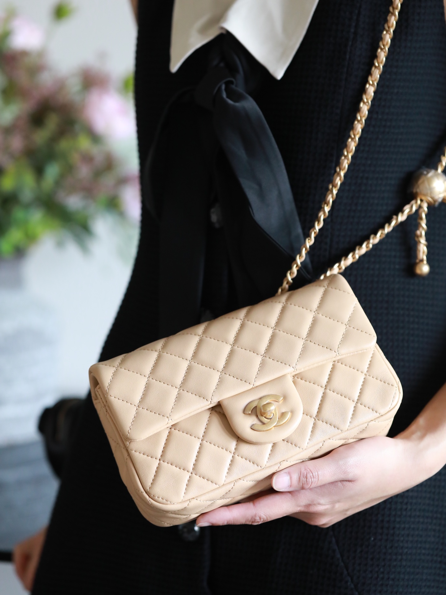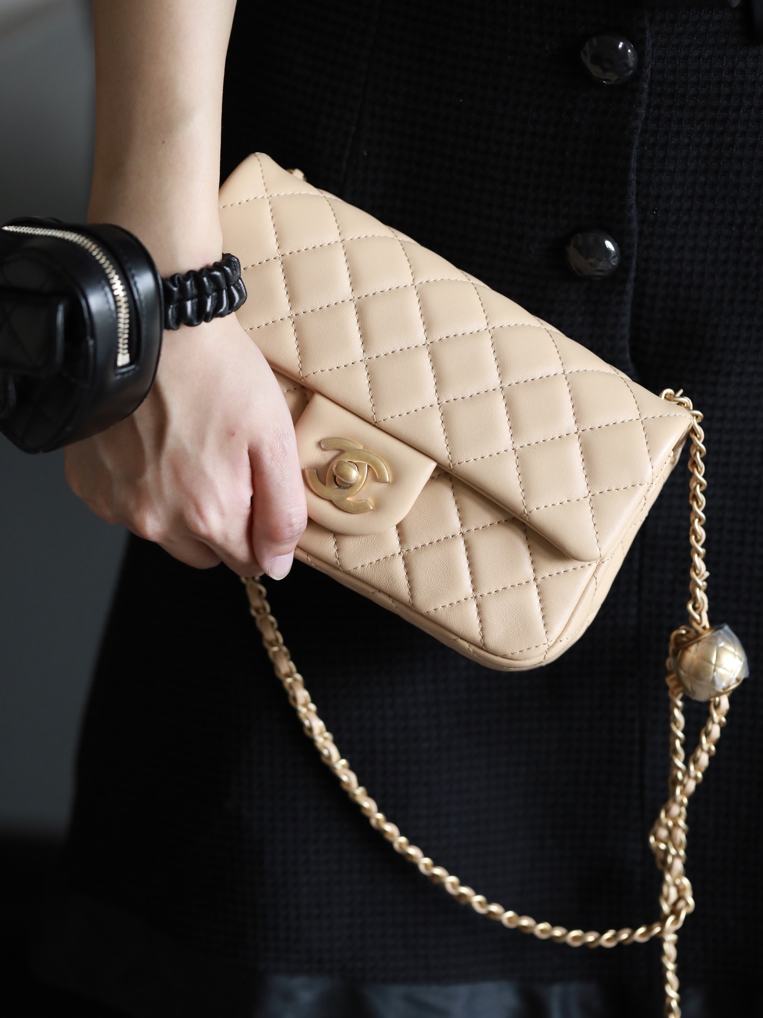 • CHANEL Mini Rectangular Pearl Crush Quilted milk tea color Lambskin Lambskin Gold Hardware