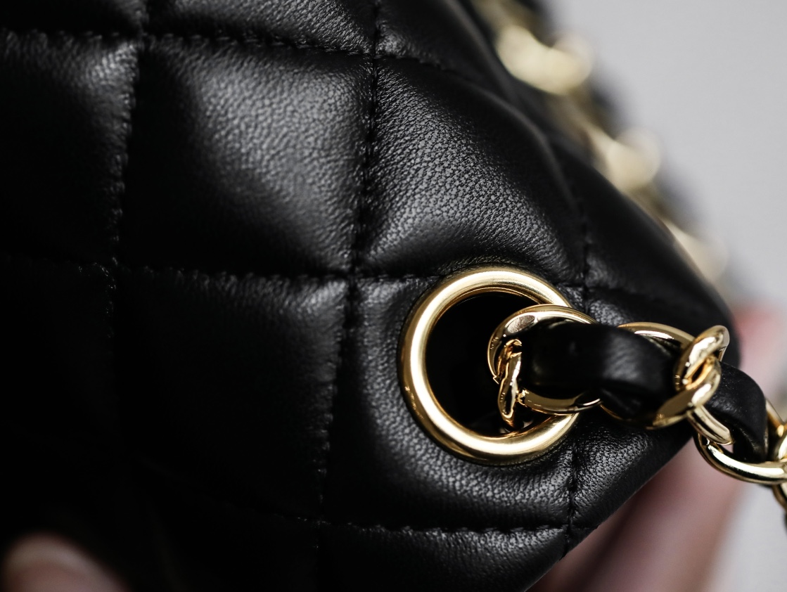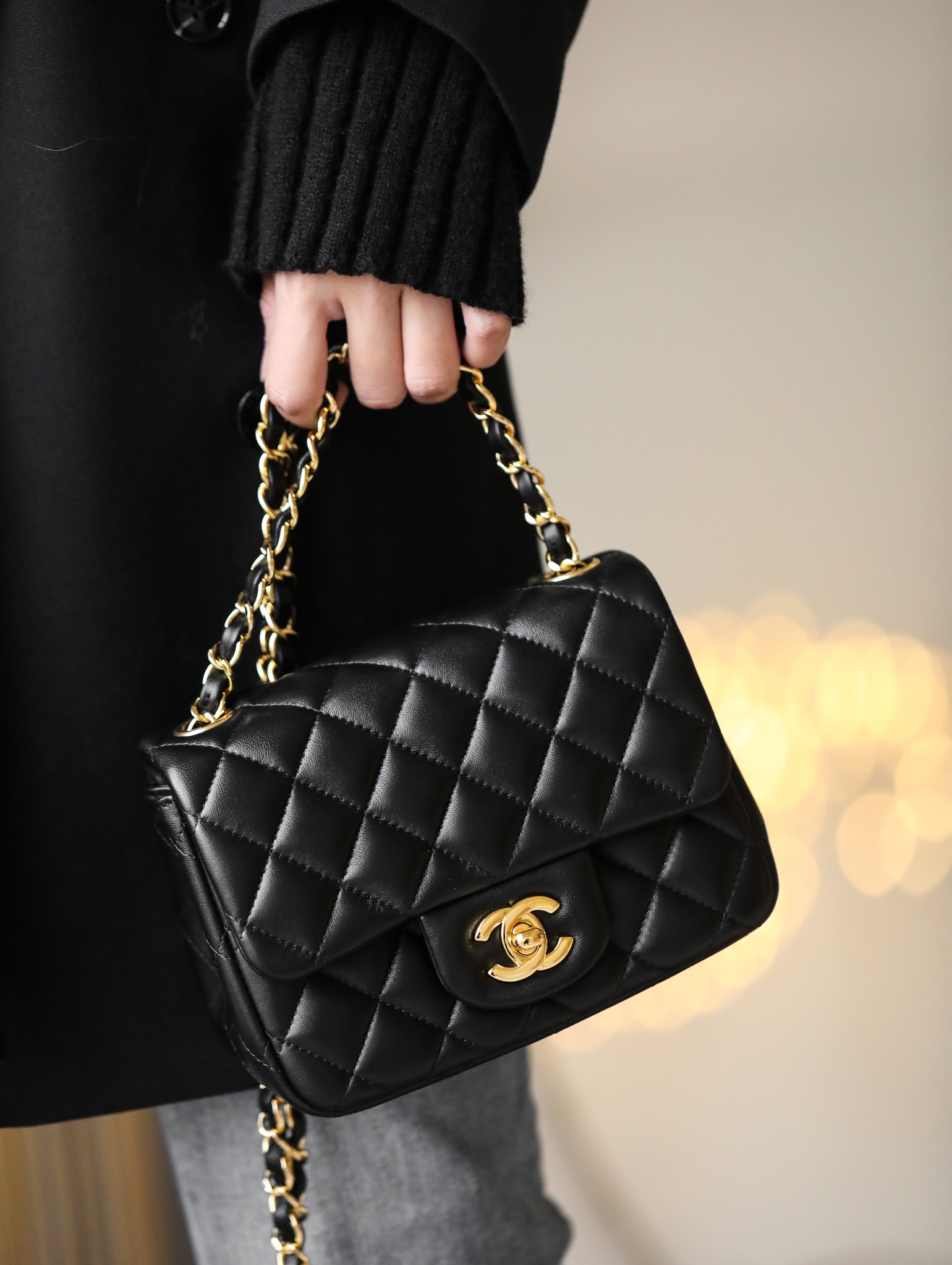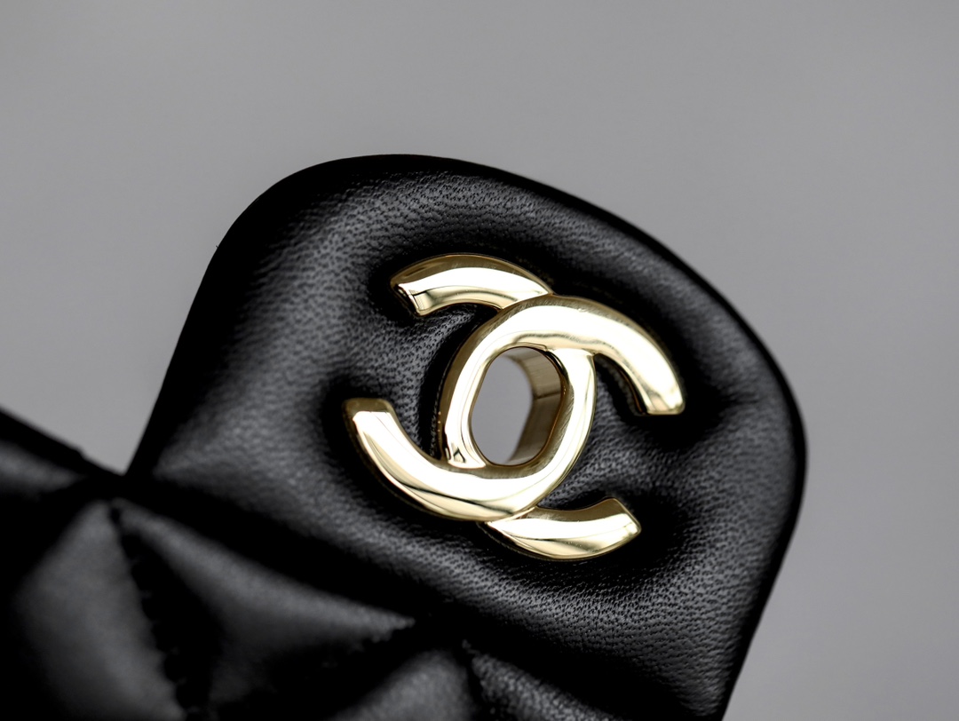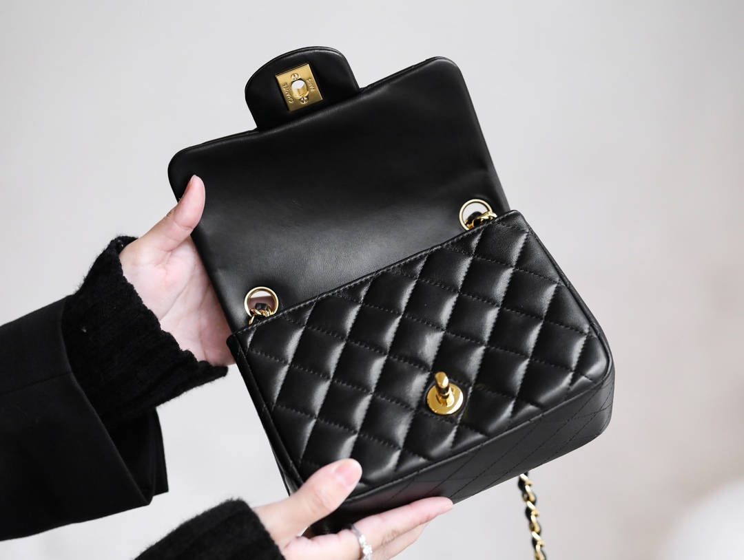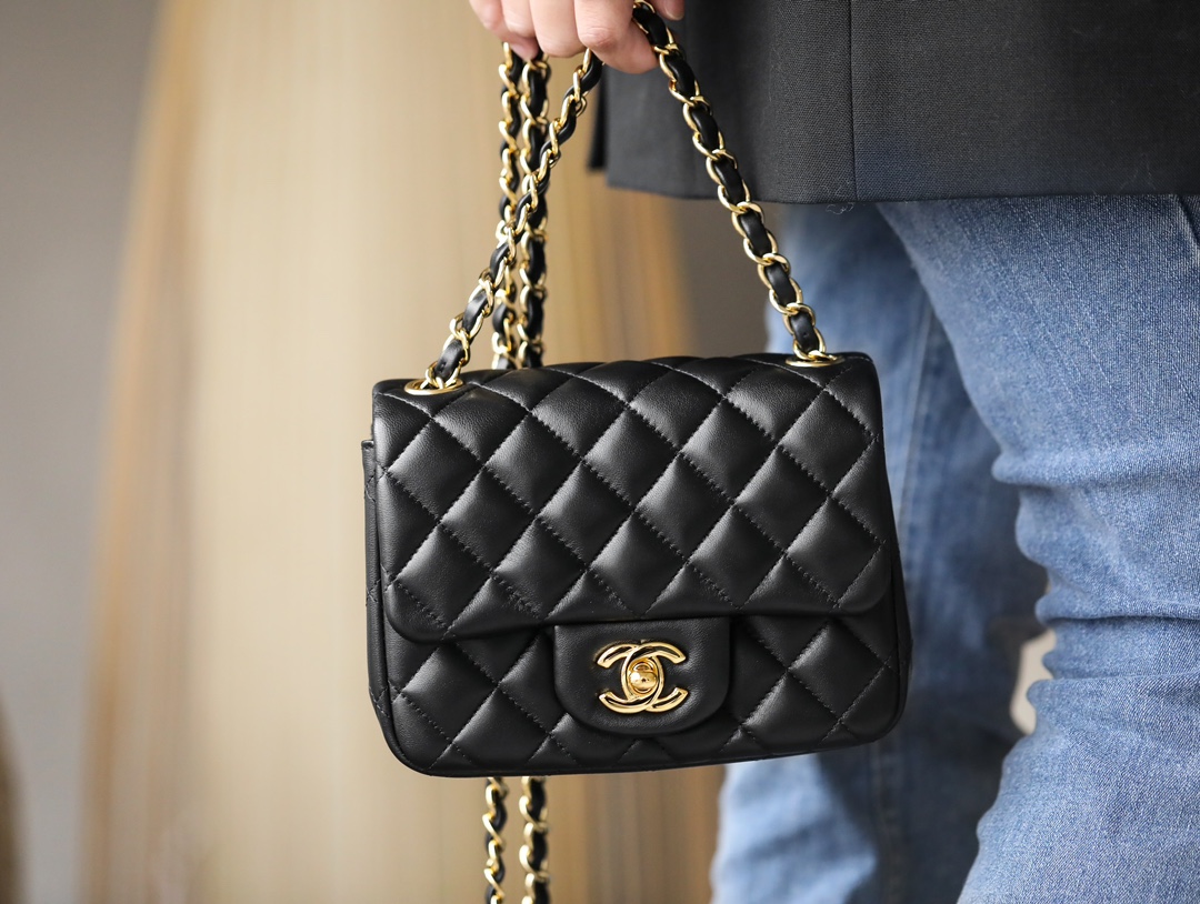 CHANEL Mini Square Flap Bag Black Lambskin Light Gold Hardware