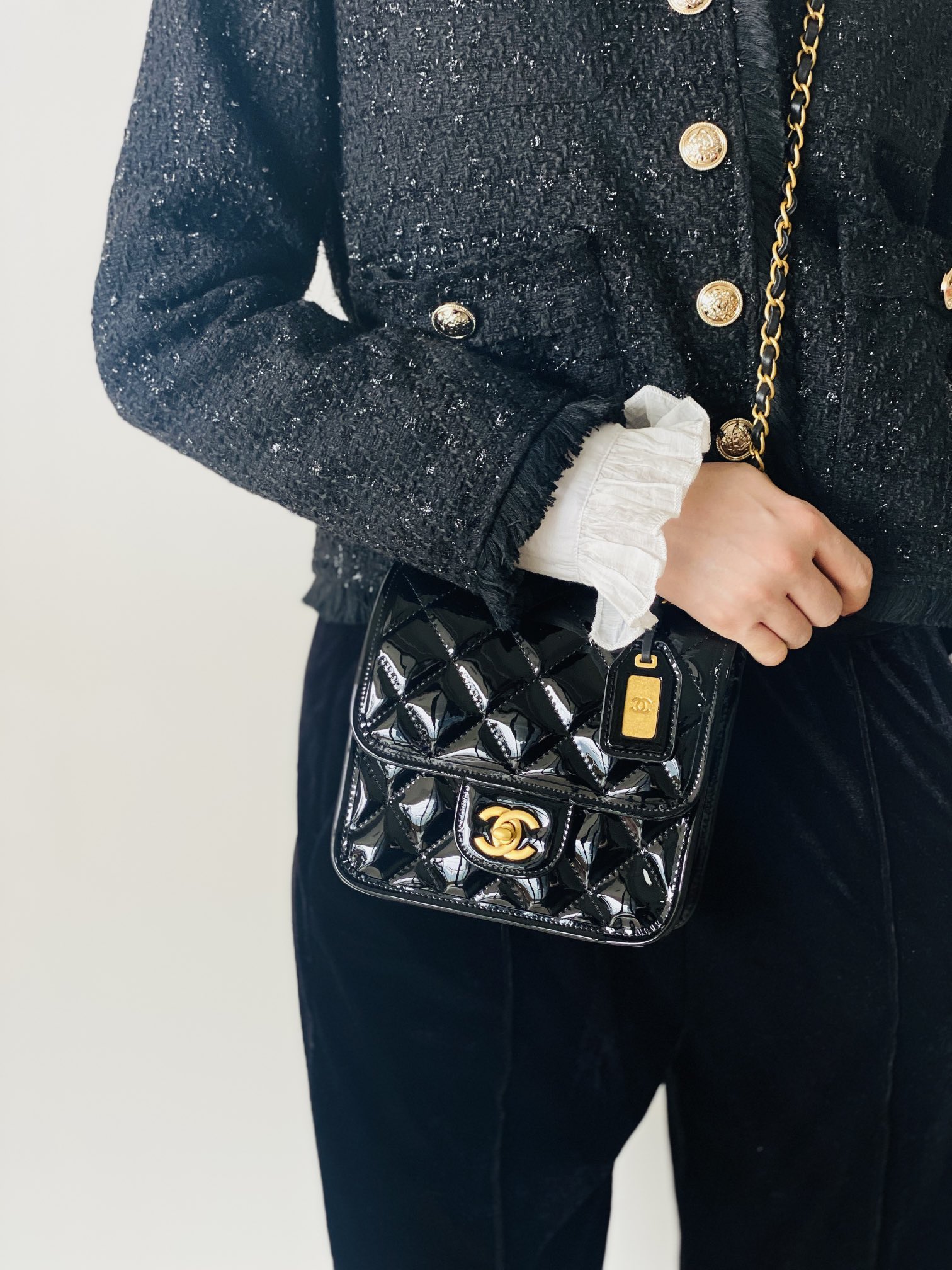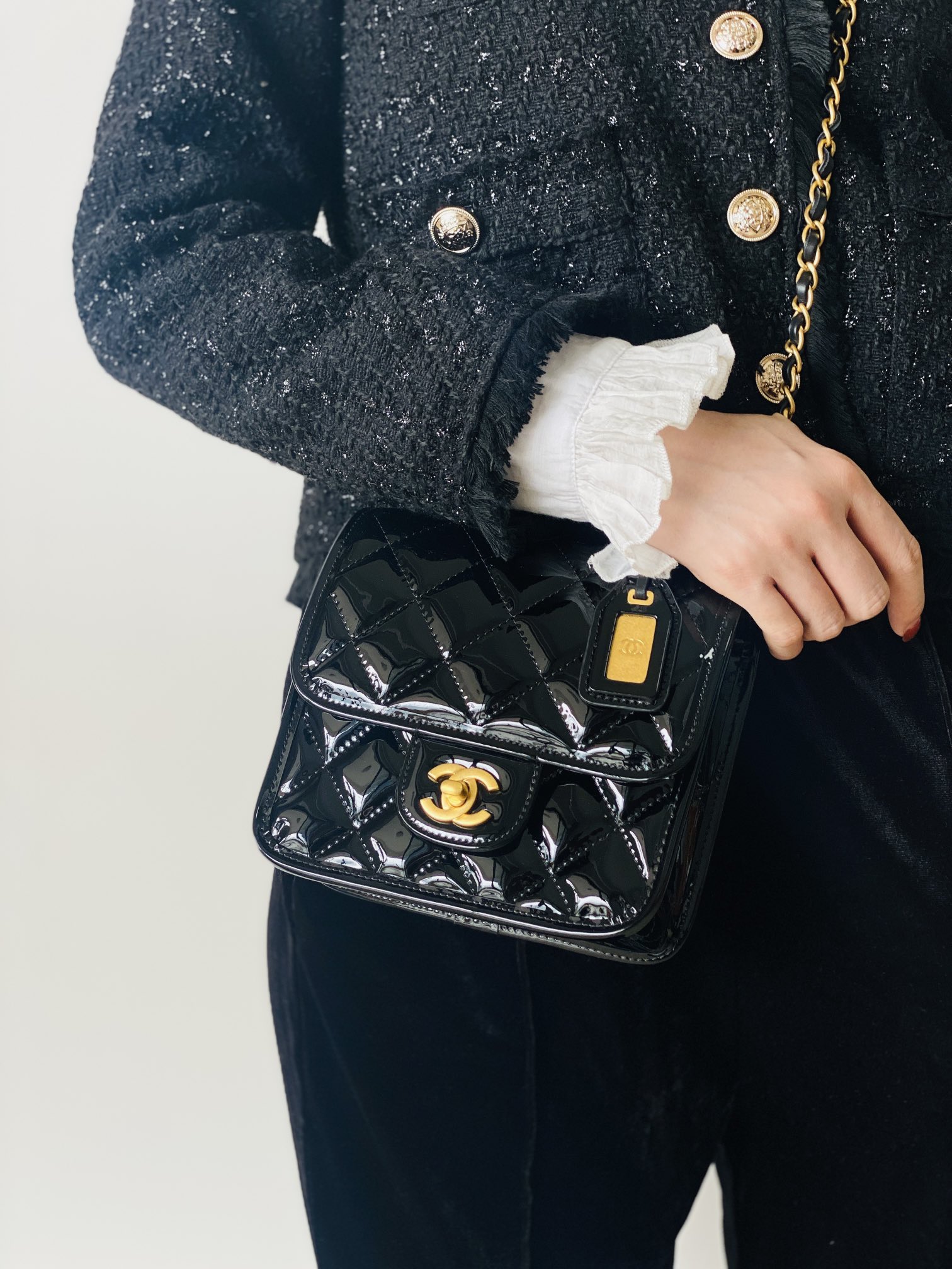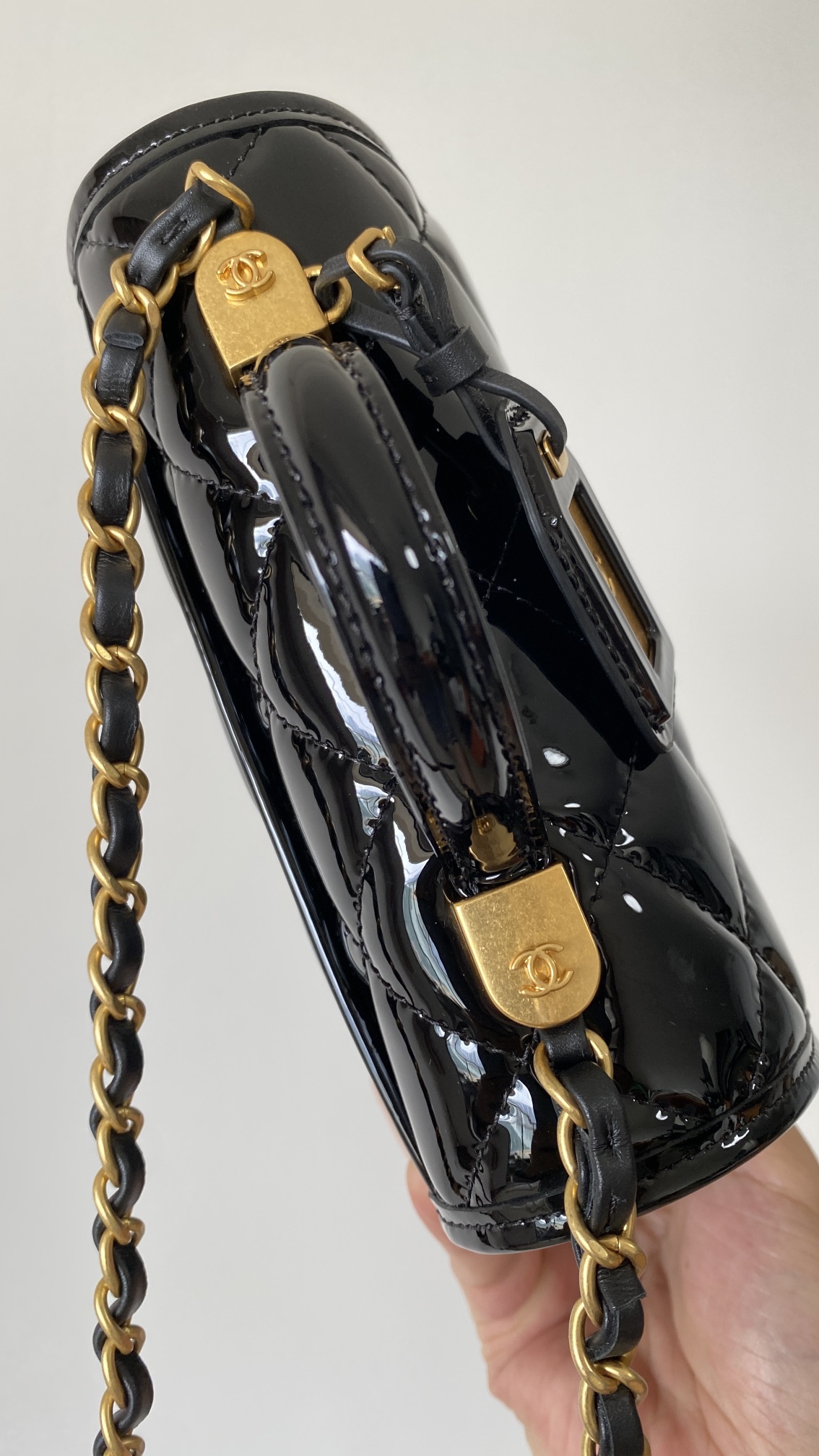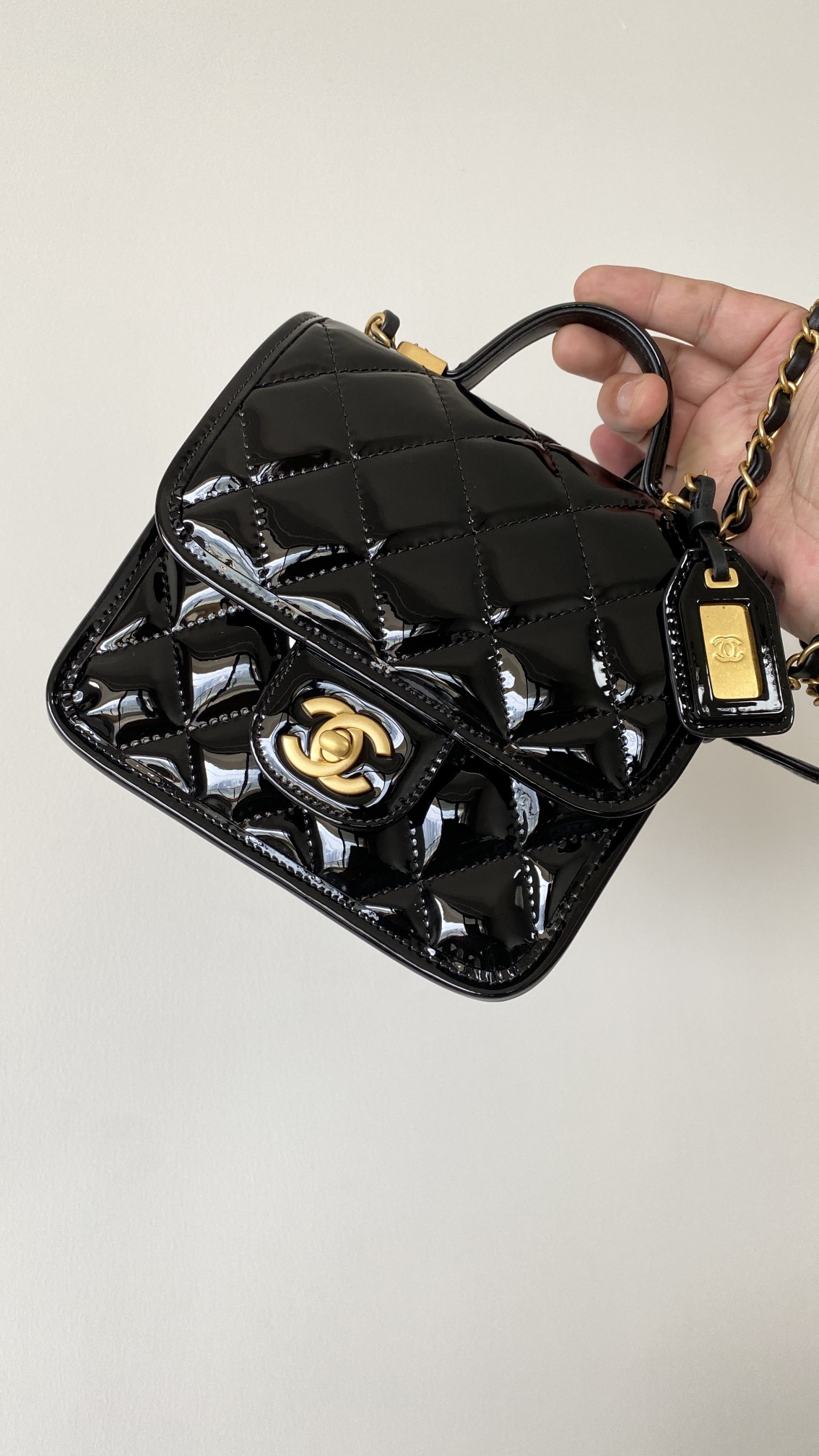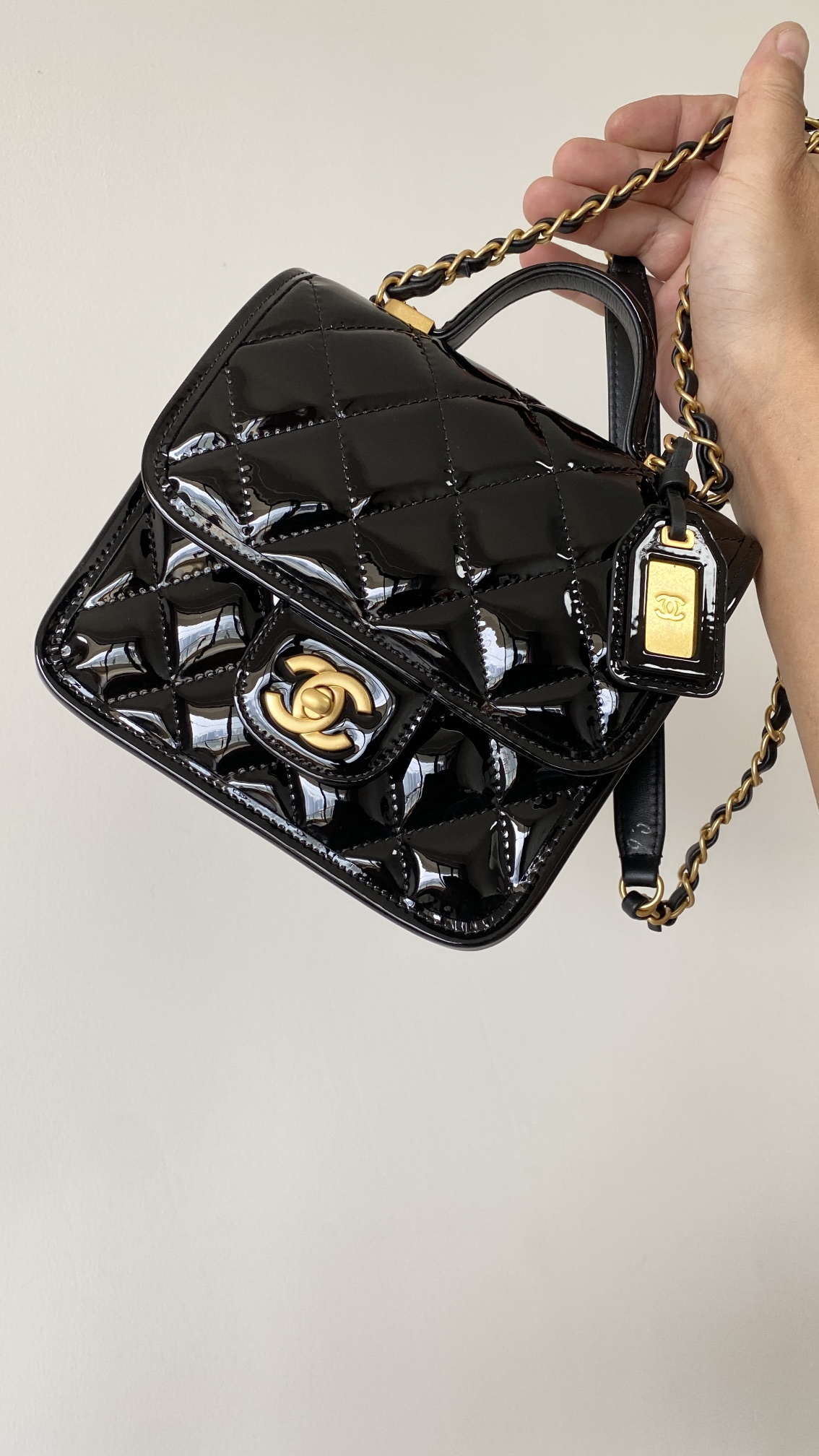 • CHANEL Patent School Memory Mini Top Handle Flap Black