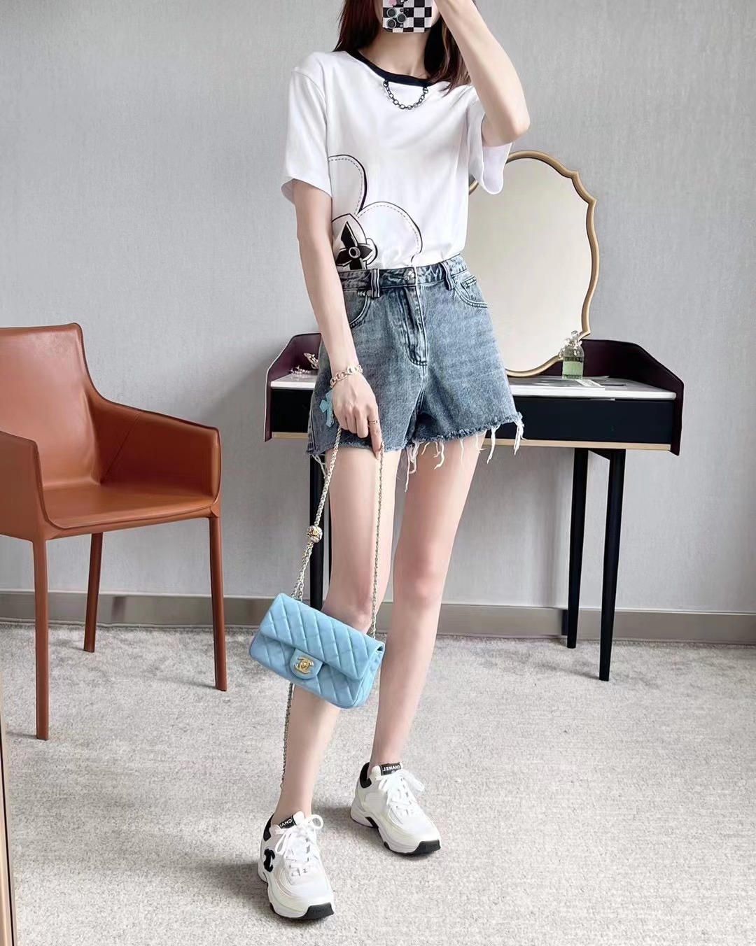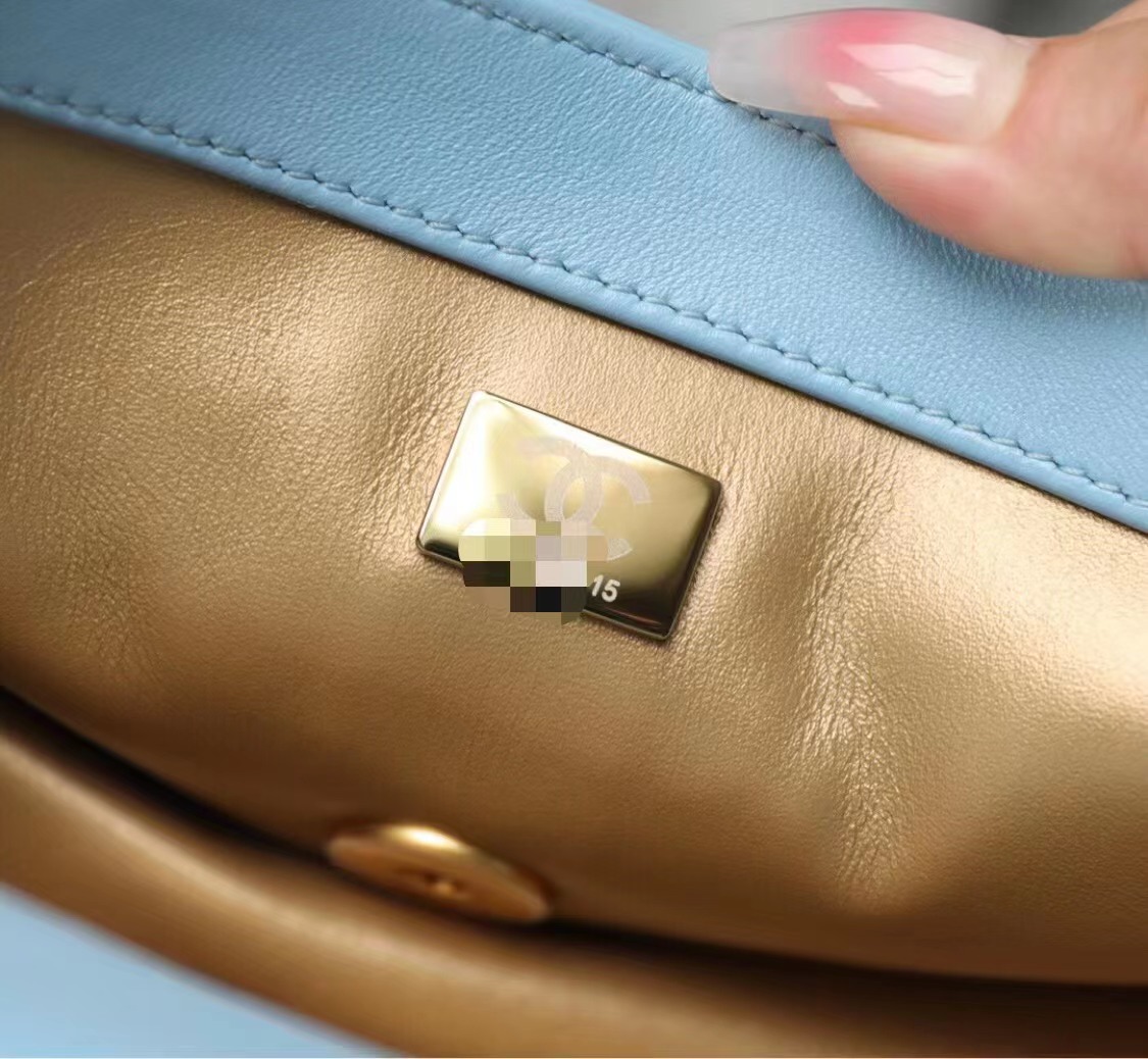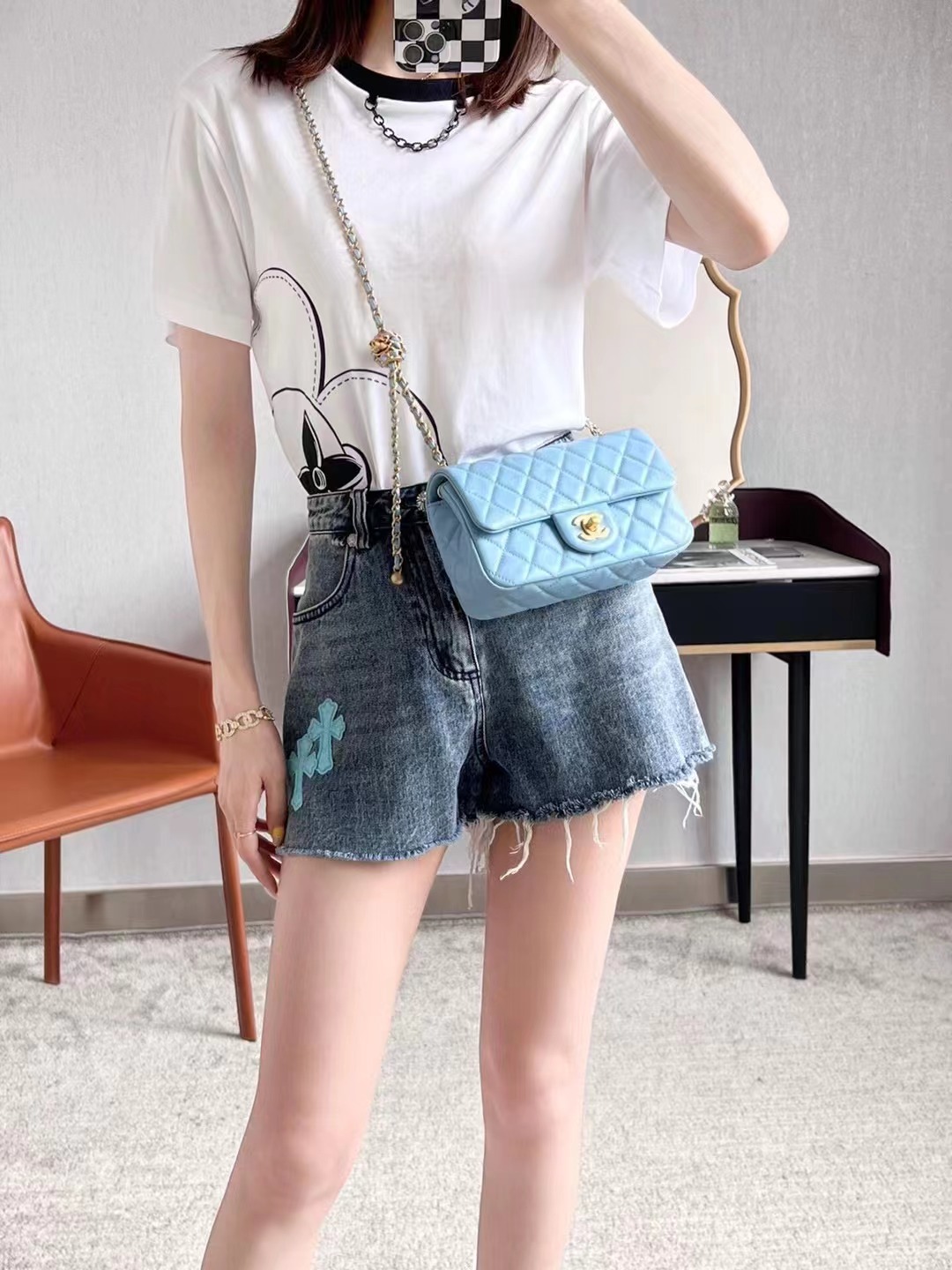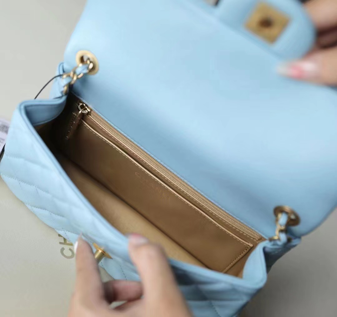 • Chanel Pearl Crush Mini Rectangular Flap Bag baby blue Lambskin Antique Gold Hardware