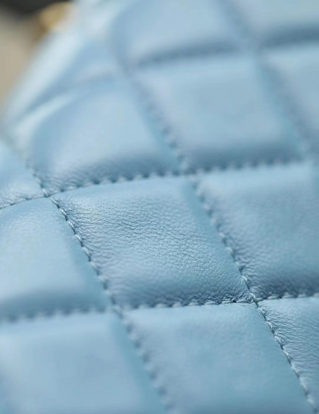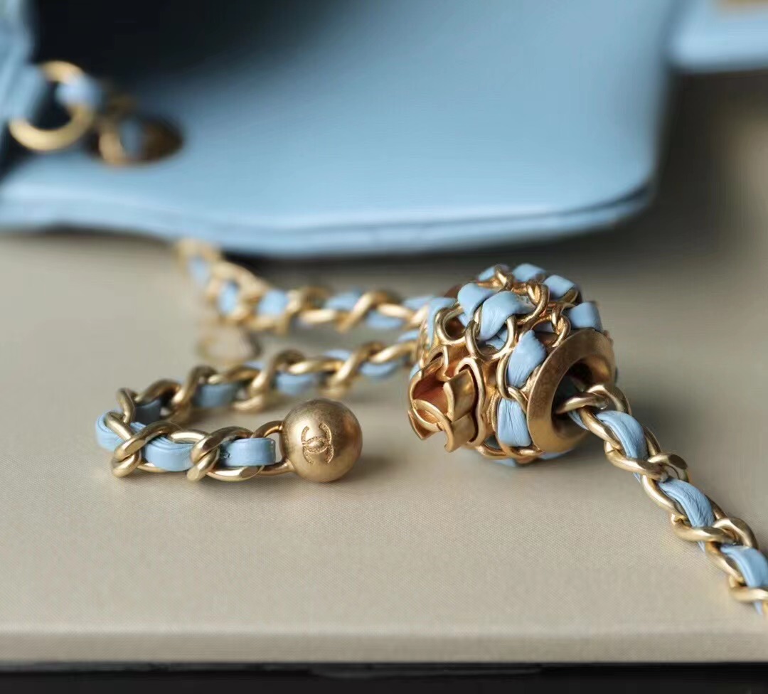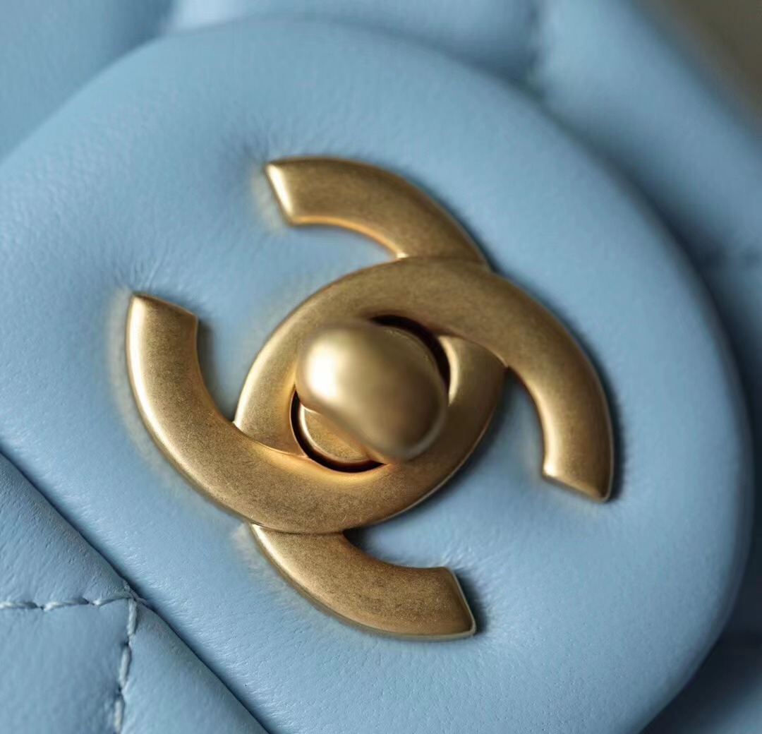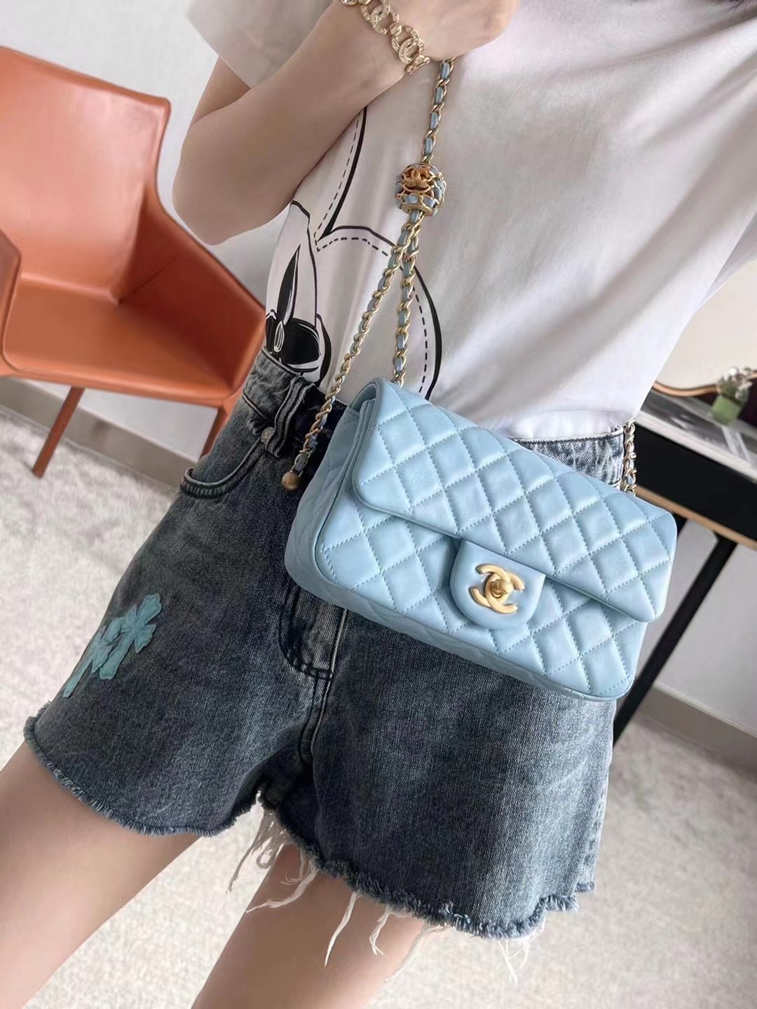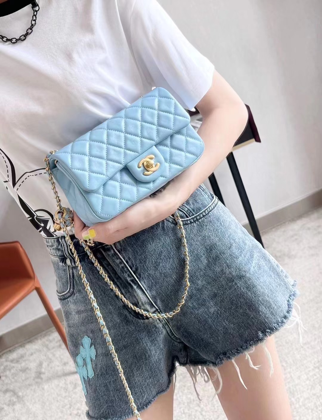 Chanel Pearl Crush Mini Rectangular Flap Bag baby blue Lambskin Antique Gold Hardware