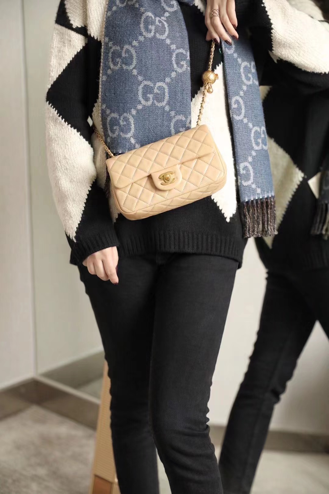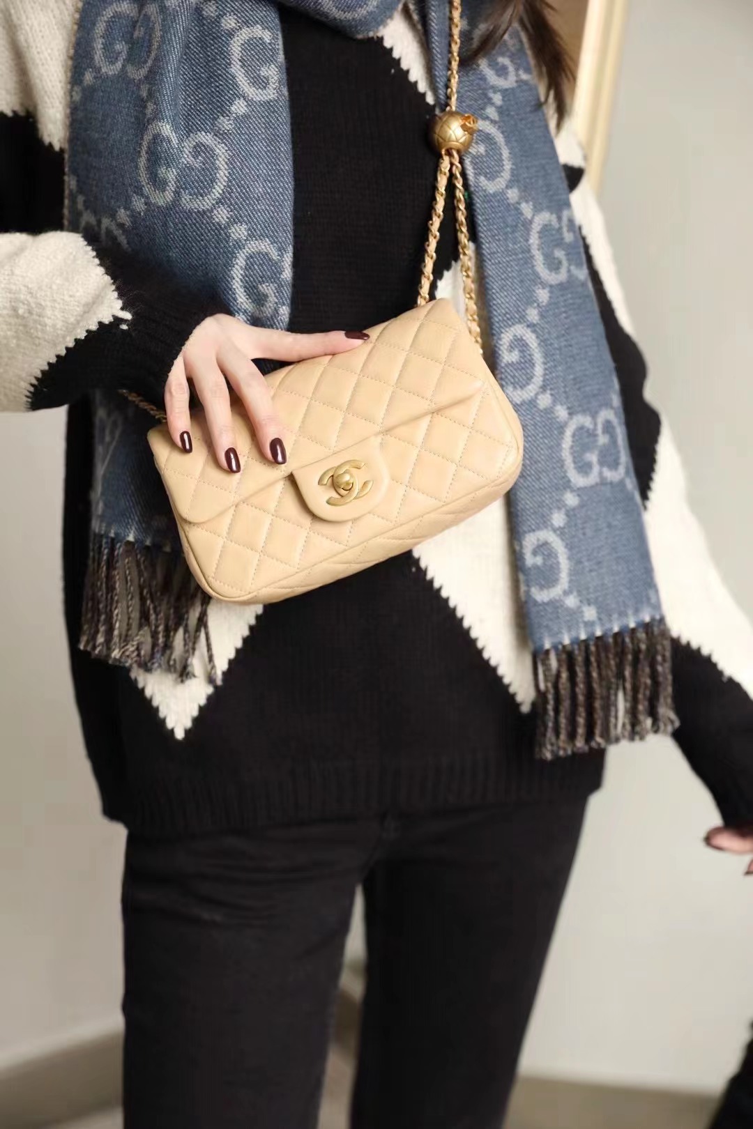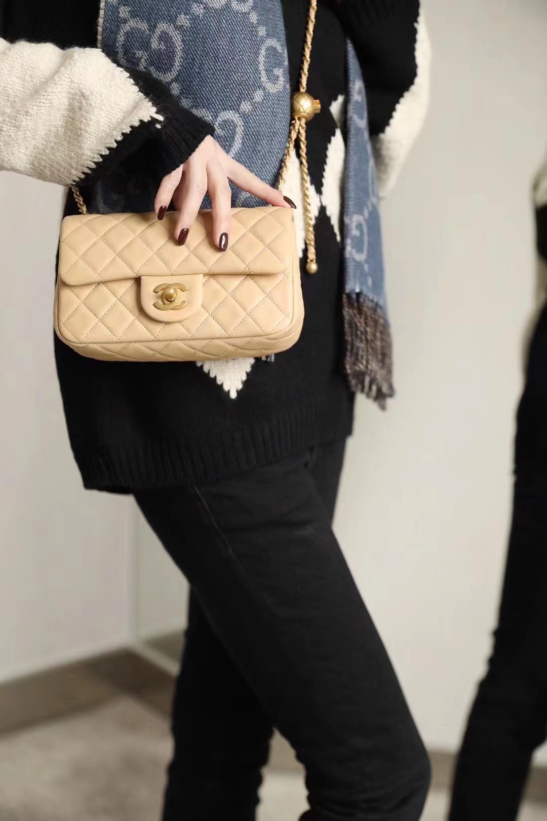 • Chanel Pearl Crush Mini Rectangular Flap Bag chai Lambskin Antique Gold Hardware