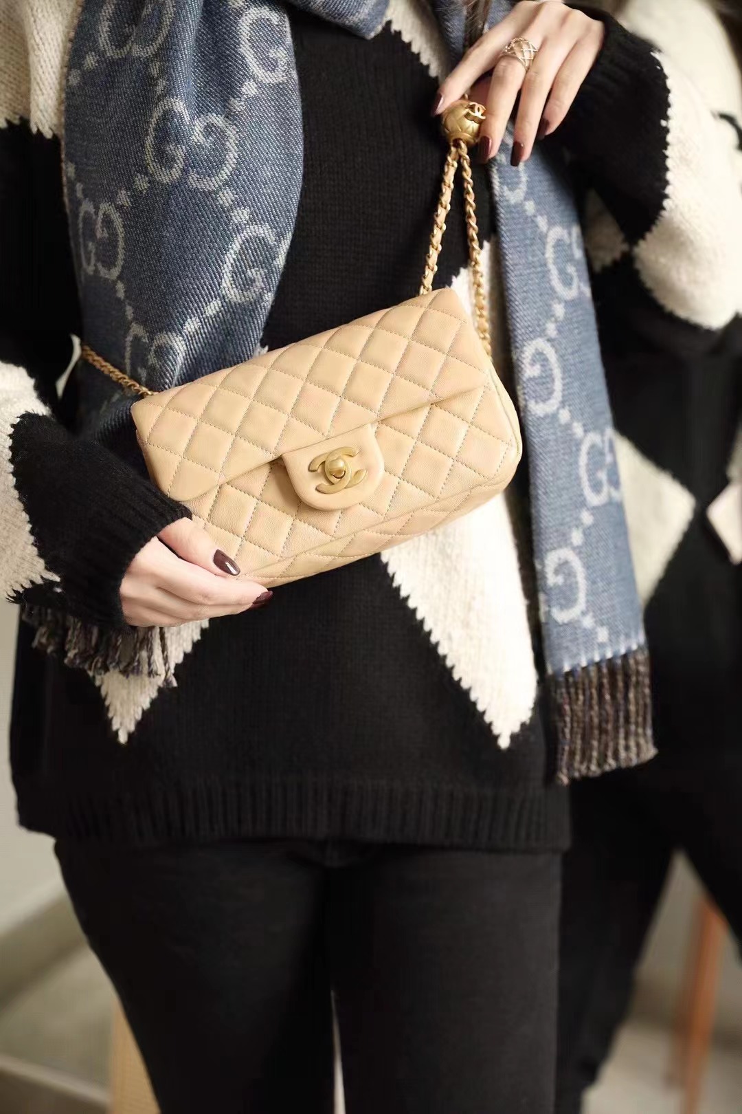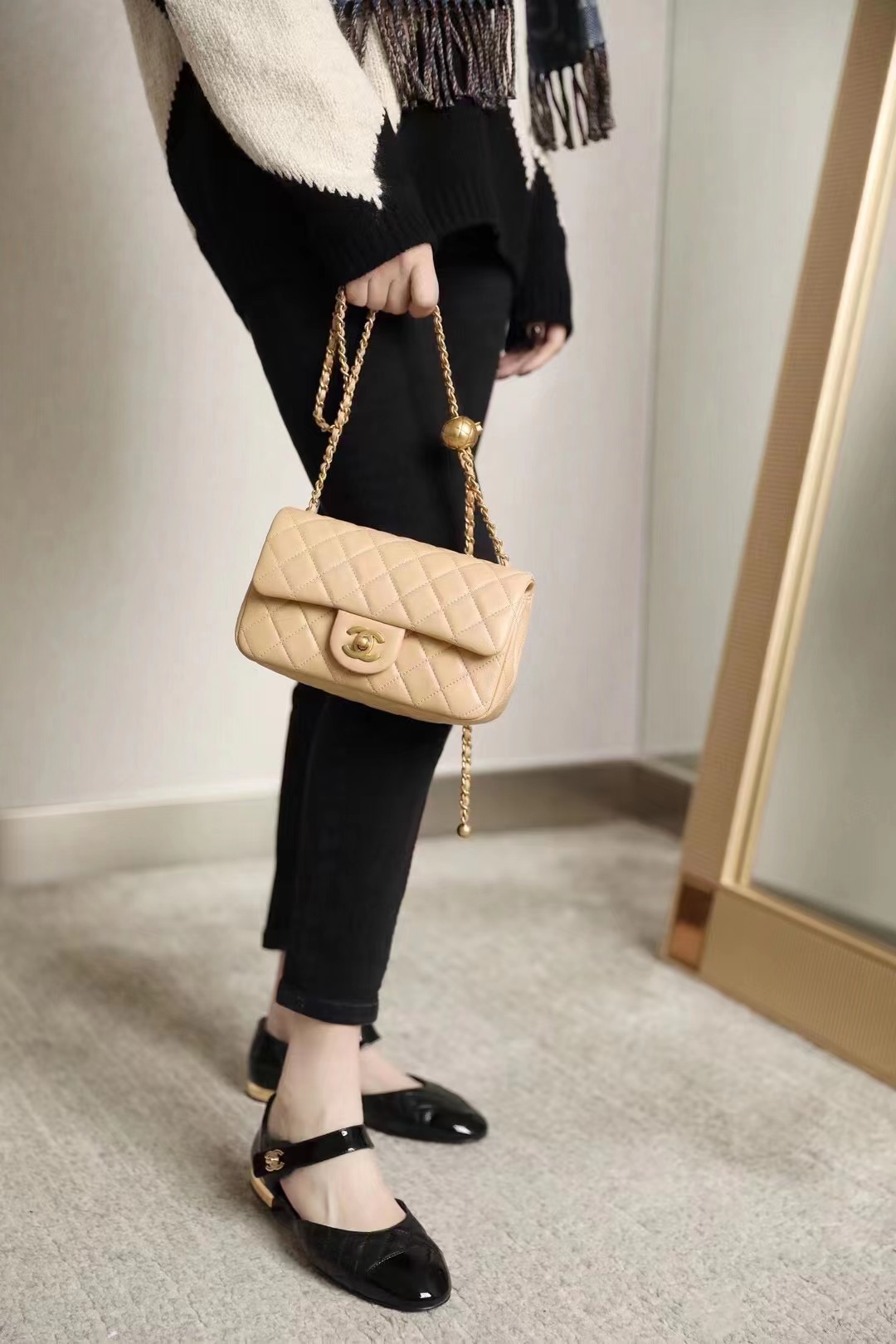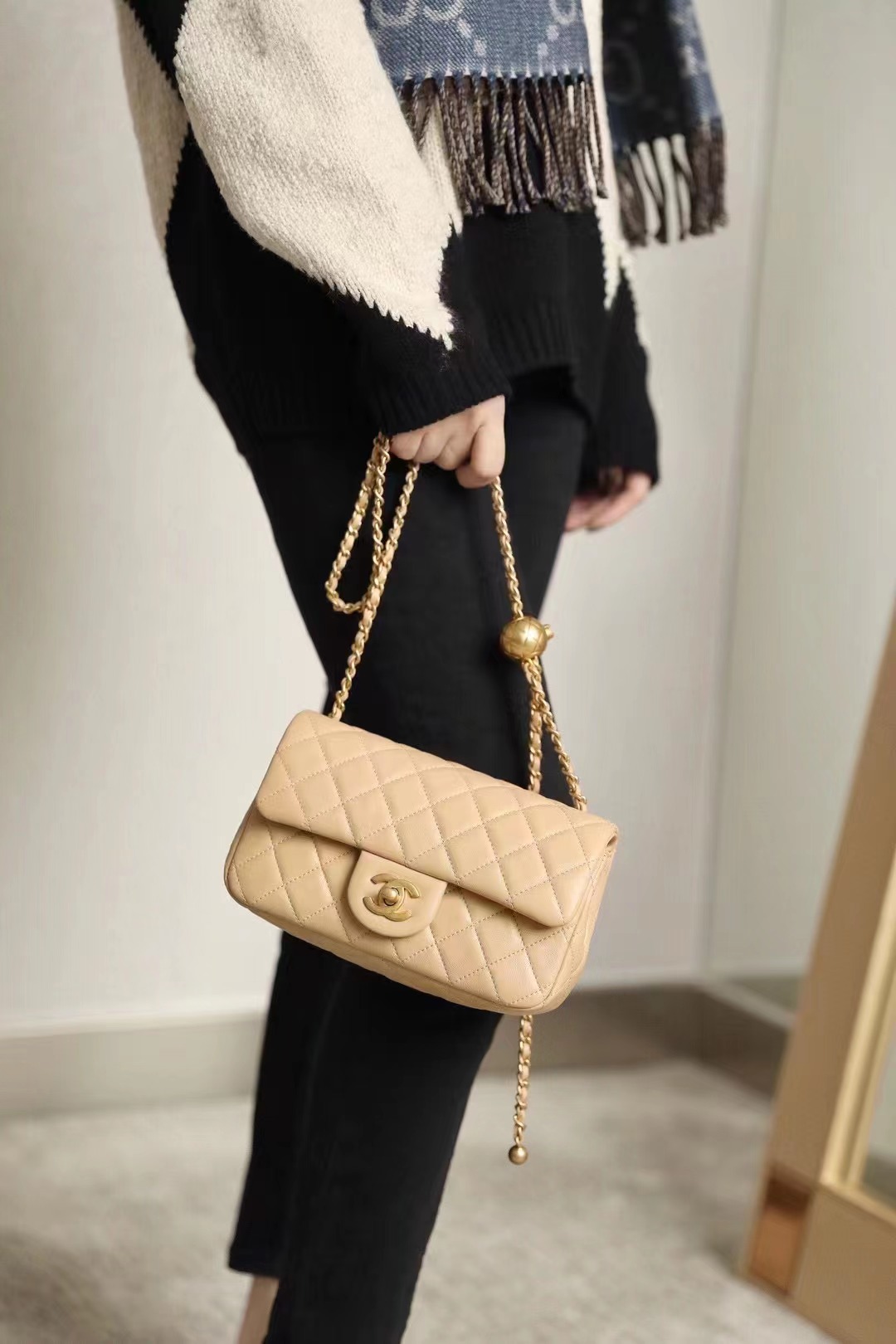 • Chanel Pearl Crush Mini Rectangular Flap Bag chai Lambskin Antique Gold Hardware