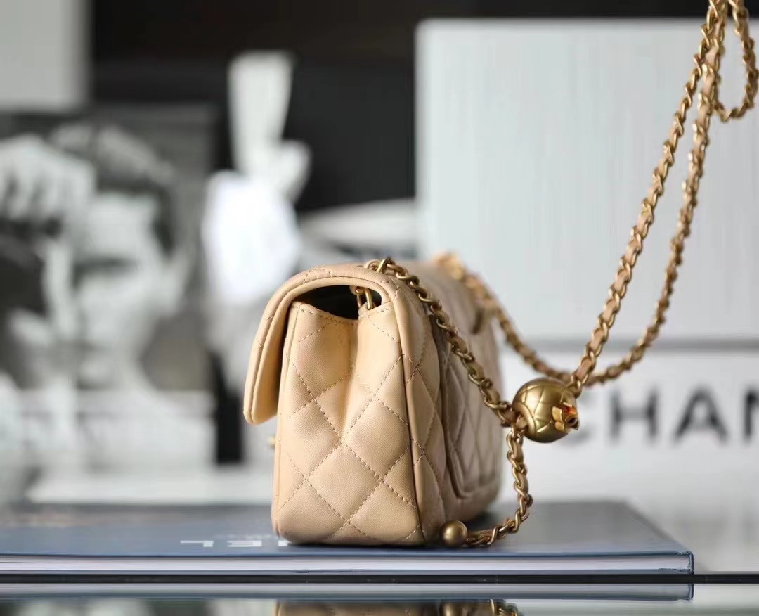 Chanel Pearl Crush Mini Rectangular Flap Bag chai Lambskin Antique Gold Hardware